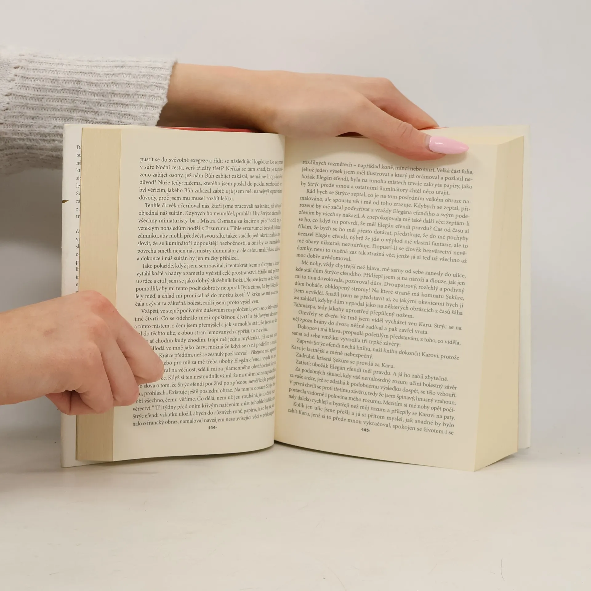 Jednoho zimního večera roku 1591 je v Istanbulu zavražděn přední iluminátor rukopisů a nyní k nám promlouvá ze studny, kam vrah hodil jeho tělo. Jeho hlas se ale ztrácí v koncertu ostatních hlasů, mezi nimiž figurují mistři sultánovy malířské dílny, knihař Kara a jeho milenka Şeküre, dohazovačka Ester, Strýc Efendi i mince, červená barva, smrt, pes nebo třeba strom. Každý z nich předkládá svůj pohled na svět a snaží se nás přesvědčit o své pravdě a je jen na čtenáři, jaký obrázek si z tohoto napínavého příběhu poskládá. Román je vrcholným dílem tohoto tureckého nositele Nobelovy ceny za literaturu (2006). Přeložil Petr Kučera