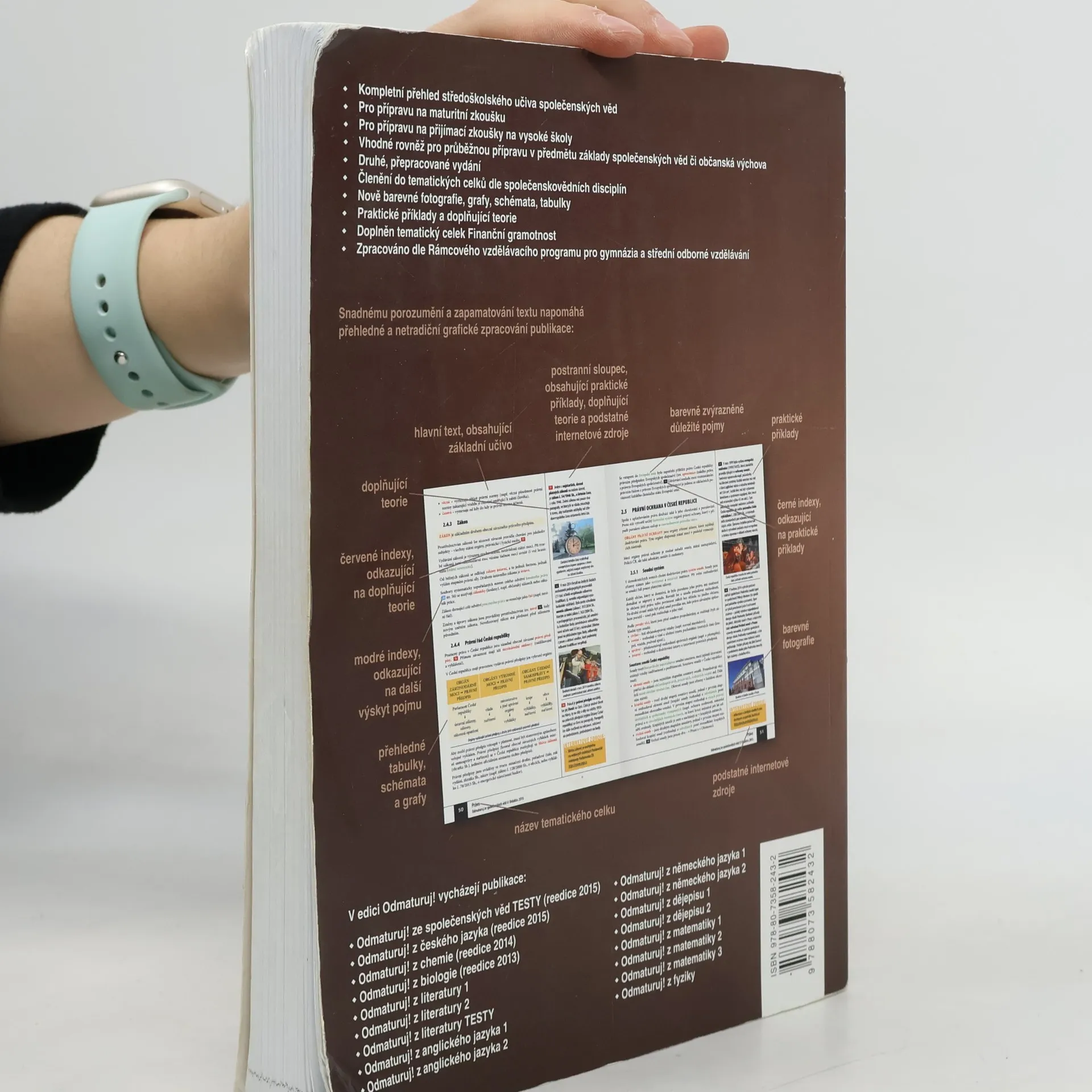 Nakladatelství DIDAKTIS připravuje nové vydání úspěšného titulu Odmaturuj! ze společenských věd z edice Odmaturuj! Edice Odmaturuj! je primárně určena na přípravu k maturitní zkoušce, a to především k maturitní zkoušce v části profilové, taktéž slouží k přípravě na přijímací zkoušky na vysoké školy s humanitním zaměřením. Titul Odmaturuj! ze společenských věd však v novém vydání doporučujeme také pro průběžnou přípravu v předmětu základy společenských věd či občanská výchova na středních školách. I když tituly z edice Odmaturuj! nejsou koncipovány jako učebnice, je do nich zařazeno z hlediska obsahové komplexnosti veškeré středoškolské učivo. Titul je zpracován dle RVP pro gymnázia a RVP pro střední odborné vzdělávání. Nové vydání bude aktualizované podle legislativy účinné k 1. 1. 2015, bude doplněno o nové teoretické poznatky v rámci jednotlivých vědních disciplín a o praktické příklady. Obsah knihy je členěn do následujících tematických celků: Politologie Právo Mezinárodní vztahy Ekonomie Sociologie Psychologie Filozofie Etika Logika a teorie vědy Religionistika Finanční gramotnost Po grafické stránce je důležitou změnou převedení titulu do barevného provedení na bílém podkladu, výklad je doplněn řadou schémat, tabulek a grafů. Nově byl přidán také odkazový aparát v rámci textu a odkazy na podstatné internetové zdroje.