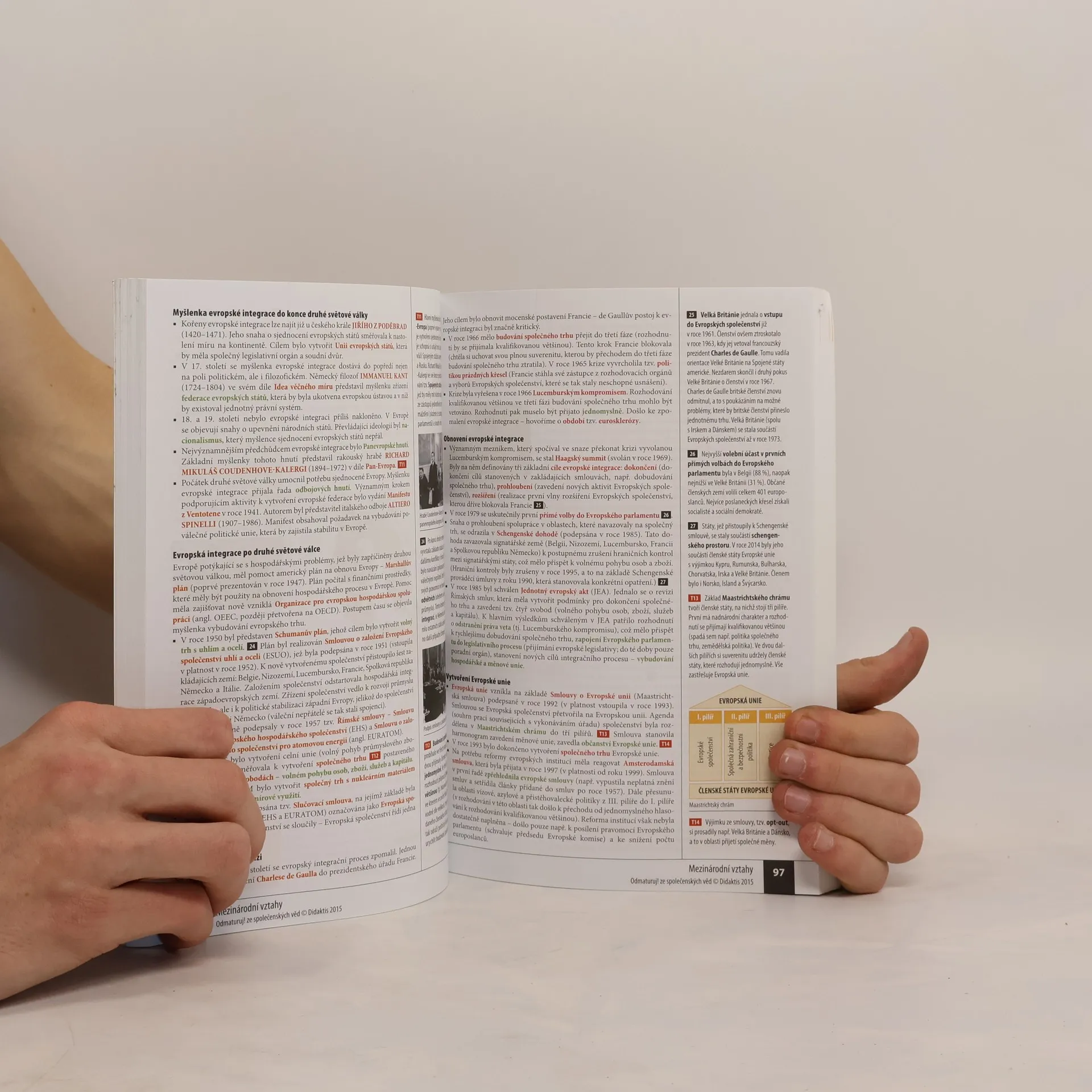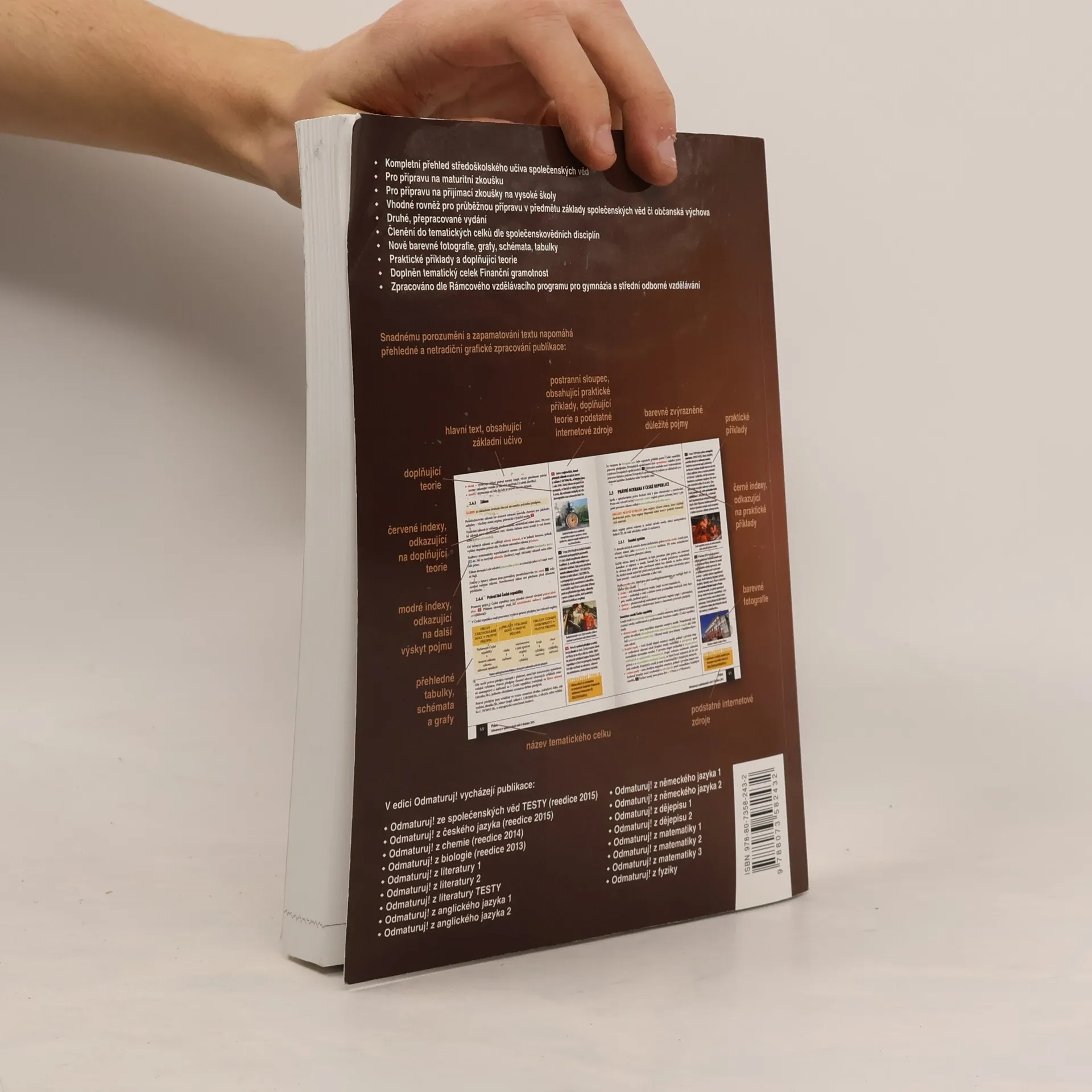 Nakladatelství DIDAKTIS připravuje nové vydání úspěšného titulu Odmaturuj! ze společenských věd z edice Odmaturuj! Edice Odmaturuj! je primárně určena na přípravu k maturitní zkoušce, a to především k maturitní zkoušce v části profilové, taktéž slouží k přípravě na přijímací zkoušky na vysoké školy s humanitním zaměřením. Titul Odmaturuj! ze společenských věd však v novém vydání doporučujeme také pro průběžnou přípravu v předmětu základy společenských věd či občanská výchova na středních školách. I když tituly z edice Odmaturuj! nejsou koncipovány jako učebnice, je do nich zařazeno z hlediska obsahové komplexnosti veškeré středoškolské učivo. Titul je zpracován dle RVP pro gymnázia a RVP pro střední odborné vzdělávání. Nové vydání bude aktualizované podle legislativy účinné k 1. 1. 2015, bude doplněno o nové teoretické poznatky v rámci jednotlivých vědních disciplín a o praktické příklady. Obsah knihy je členěn do následujících tematických celků: Politologie Právo Mezinárodní vztahy Ekonomie Sociologie Psychologie Filozofie Etika Logika a teorie vědy Religionistika Finanční gramotnost Po grafické stránce je důležitou změnou převedení titulu do barevného provedení na bílém podkladu, výklad je doplněn řadou schémat, tabulek a grafů. Nově byl přidán také odkazový aparát v rámci textu a odkazy na podstatné internetové zdroje.