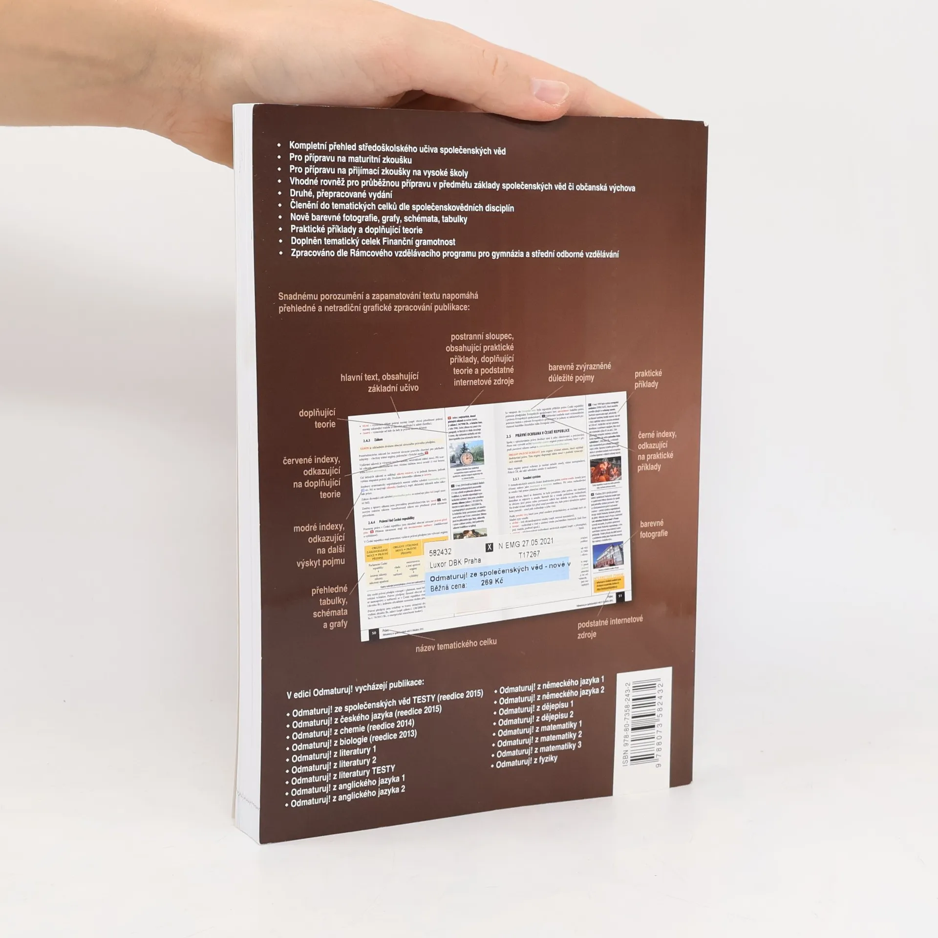 Nakladatelství DIDAKTIS připravuje nové vydání úspěšného titulu Odmaturuj! ze společenských věd z edice Odmaturuj! Edice Odmaturuj! je primárně určena na přípravu k maturitní zkoušce, a to především k maturitní zkoušce v části profilové, taktéž slouží k přípravě na přijímací zkoušky na vysoké školy s humanitním zaměřením. Titul Odmaturuj! ze společenských věd však v novém vydání doporučujeme také pro průběžnou přípravu v předmětu základy společenských věd či občanská výchova na středních školách. I když tituly z edice Odmaturuj! nejsou koncipovány jako učebnice, je do nich zařazeno z hlediska obsahové komplexnosti veškeré středoškolské učivo. Titul je zpracován dle RVP pro gymnázia a RVP pro střední odborné vzdělávání. Nové vydání bude aktualizované podle legislativy účinné k 1. 1. 2015, bude doplněno o nové teoretické poznatky v rámci jednotlivých vědních disciplín a o praktické příklady. Obsah knihy je členěn do následujících tematických celků: Politologie Právo Mezinárodní vztahy Ekonomie Sociologie Psychologie Filozofie Etika Logika a teorie vědy Religionistika Finanční gramotnost Po grafické stránce je důležitou změnou převedení titulu do barevného provedení na bílém podkladu, výklad je doplněn řadou schémat, tabulek a grafů. Nově byl přidán také odkazový aparát v rámci textu a odkazy na podstatné internetové zdroje.