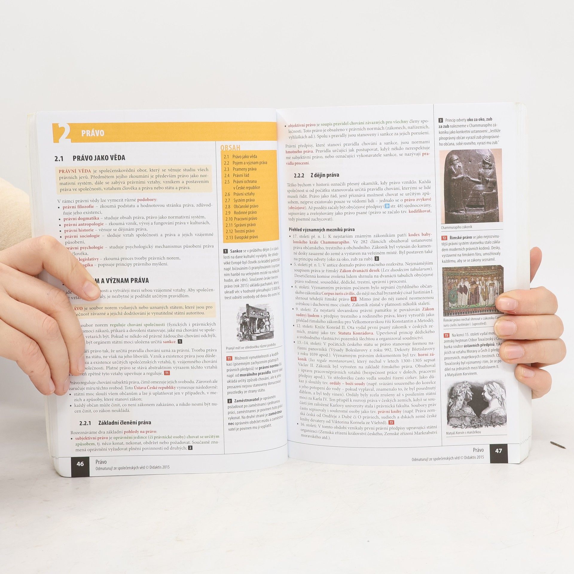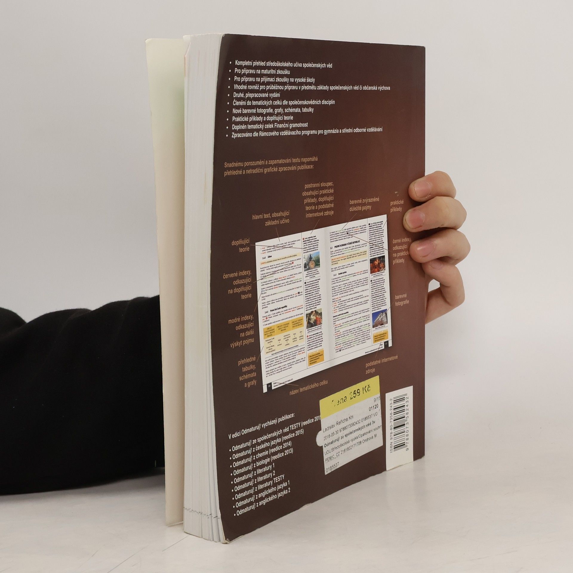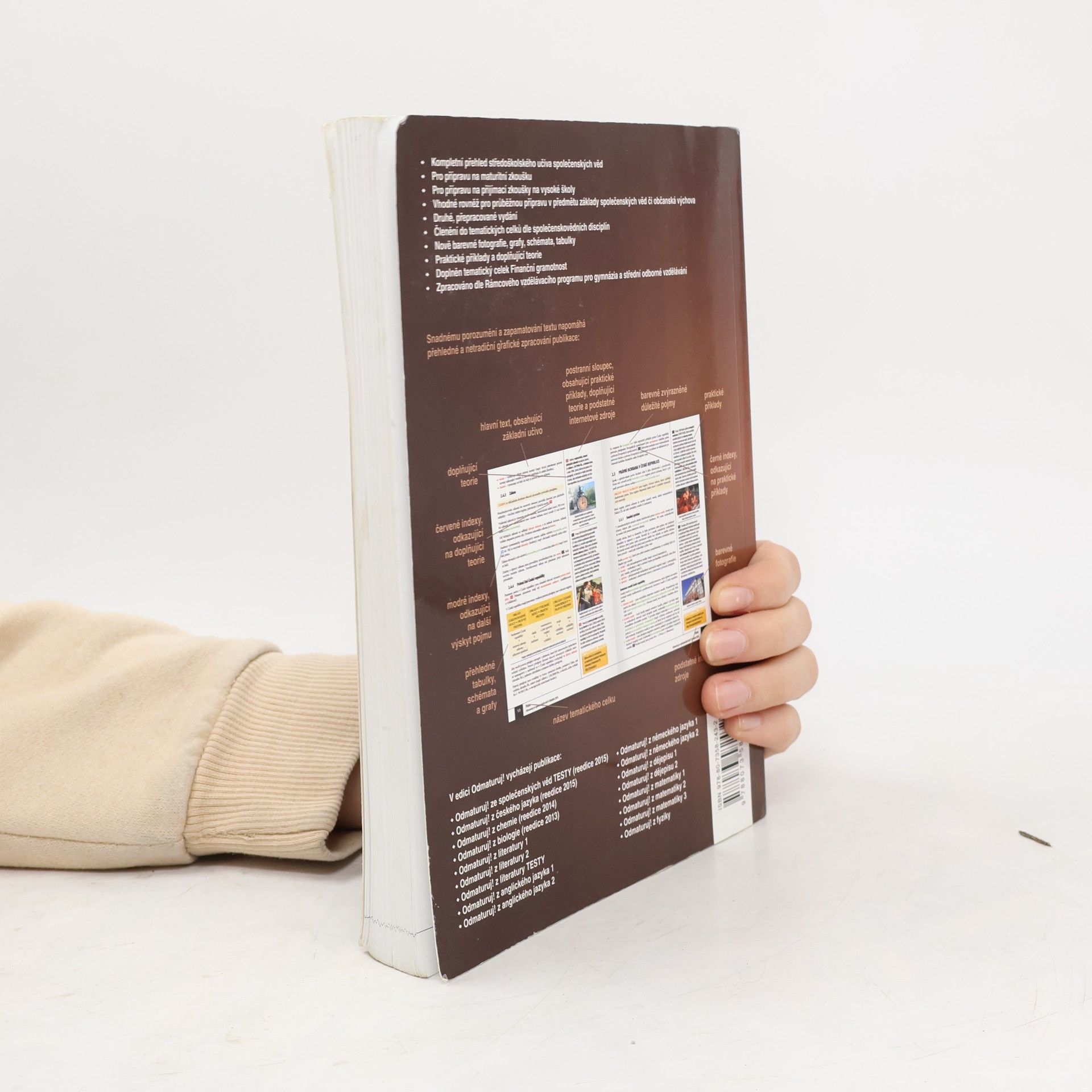 Nakladatelství DIDAKTIS připravuje nové vydání úspěšného titulu Odmaturuj! ze společenských věd z edice Odmaturuj! Edice Odmaturuj! je primárně určena na přípravu k maturitní zkoušce, a to především k maturitní zkoušce v části profilové, taktéž slouží k přípravě na přijímací zkoušky na vysoké školy s humanitním zaměřením. Titul Odmaturuj! ze společenských věd však v novém vydání doporučujeme také pro průběžnou přípravu v předmětu základy společenských věd či občanská výchova na středních školách. I když tituly z edice Odmaturuj! nejsou koncipovány jako učebnice, je do nich zařazeno z hlediska obsahové komplexnosti veškeré středoškolské učivo. Titul je zpracován dle RVP pro gymnázia a RVP pro střední odborné vzdělávání. Nové vydání bude aktualizované podle legislativy účinné k 1. 1. 2015, bude doplněno o nové teoretické poznatky v rámci jednotlivých vědních disciplín a o praktické příklady. Obsah knihy je členěn do následujících tematických celků: Politologie Právo Mezinárodní vztahy Ekonomie Sociologie Psychologie Filozofie Etika Logika a teorie vědy Religionistika Finanční gramotnost Po grafické stránce je důležitou změnou převedení titulu do barevného provedení na bílém podkladu, výklad je doplněn řadou schémat, tabulek a grafů. Nově byl přidán také odkazový aparát v rámci textu a odkazy na podstatné internetové zdroje.