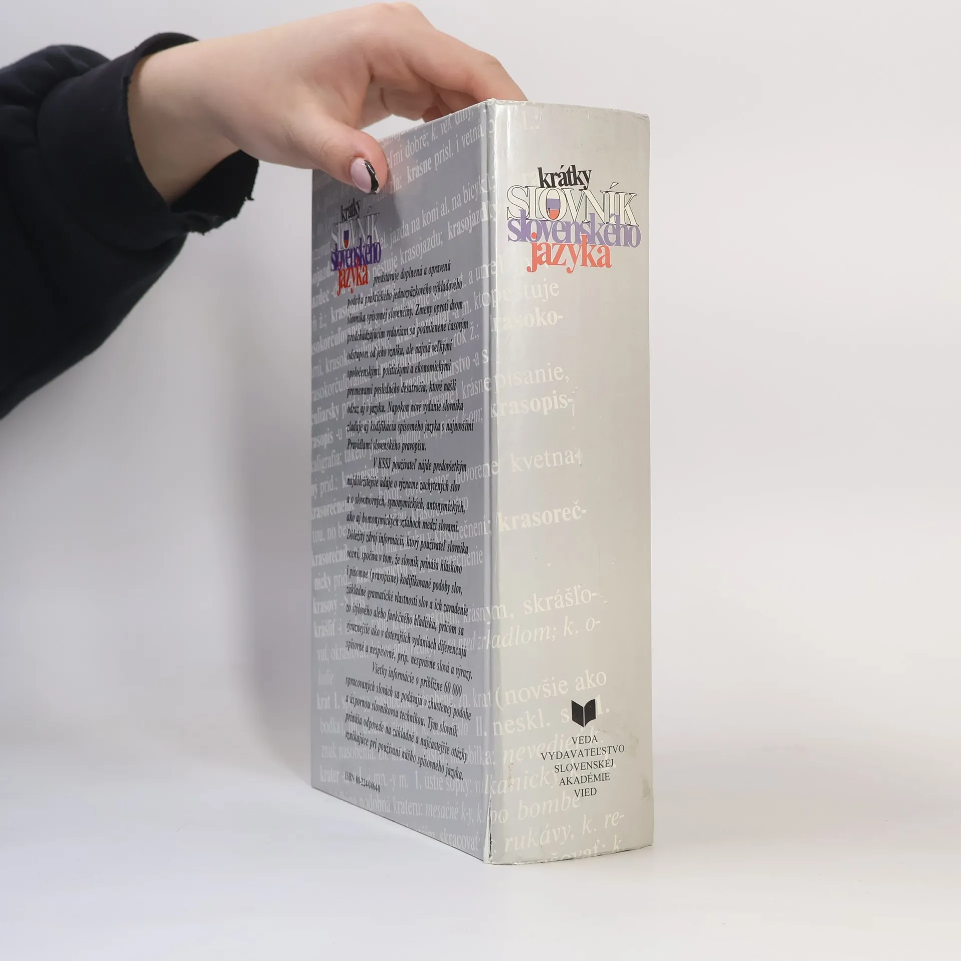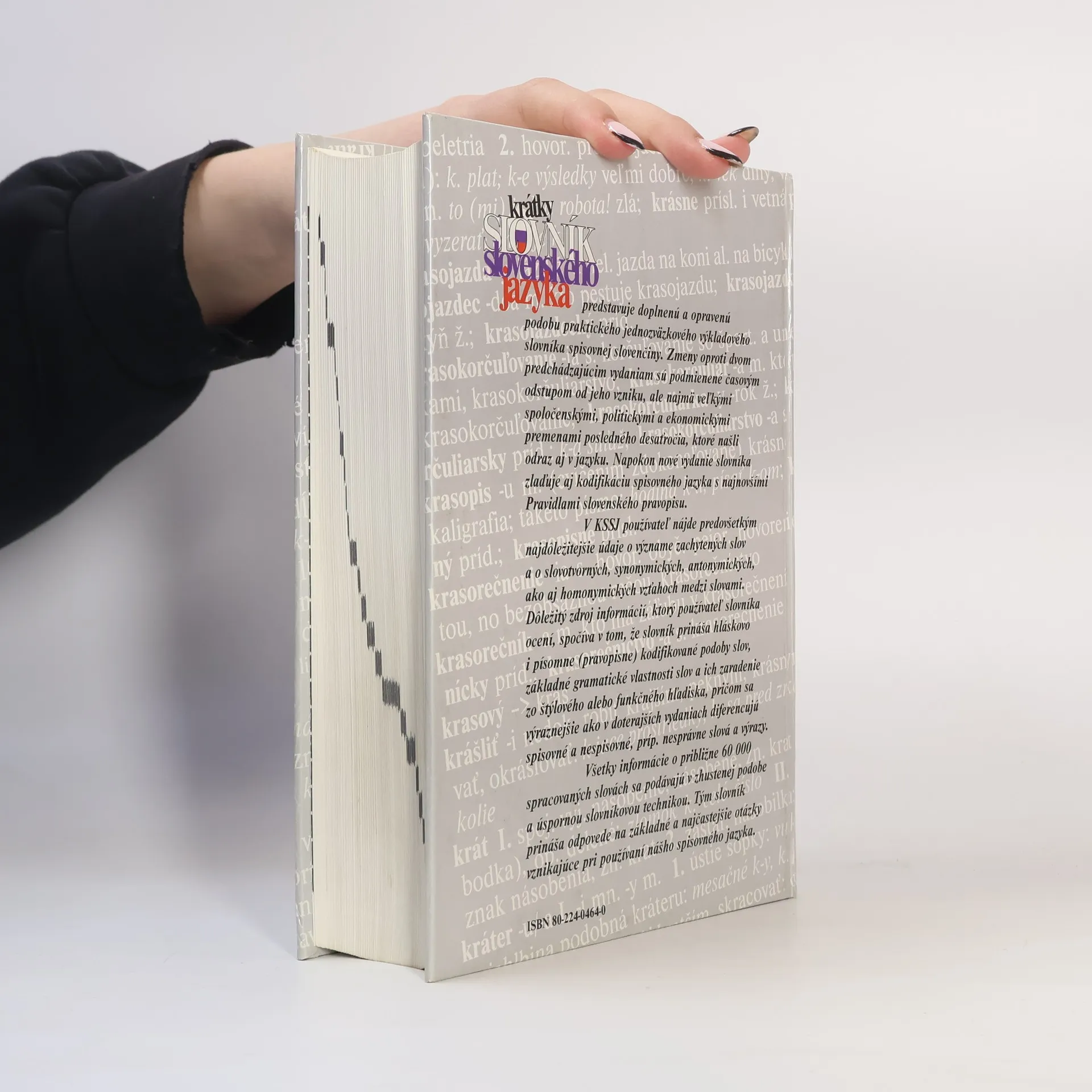 Krátky slovník slovenského jazyka, ako základná kodifikačná príručka, predstavuje doplnenú a upravenú podobu jednozväzkového výkladového slovníka spisovnej slovenčiny odrážajúceho aj zmeny v slovnej zásobe slovenčiny odzrkadľujúce spoločenské, politické a ekonomické premeny po roku 1989. V slovníku používateľ nájde najdôležitejšie údaje o význame približne 60 000 zachytených slov spolu s dokladovými spojeniami ilustrujúcimi význam slova, základné gramatické informácie o pravopisne kodifikovaných podobách slov a informácie o funkčnom zaradení jednotlivých slov.