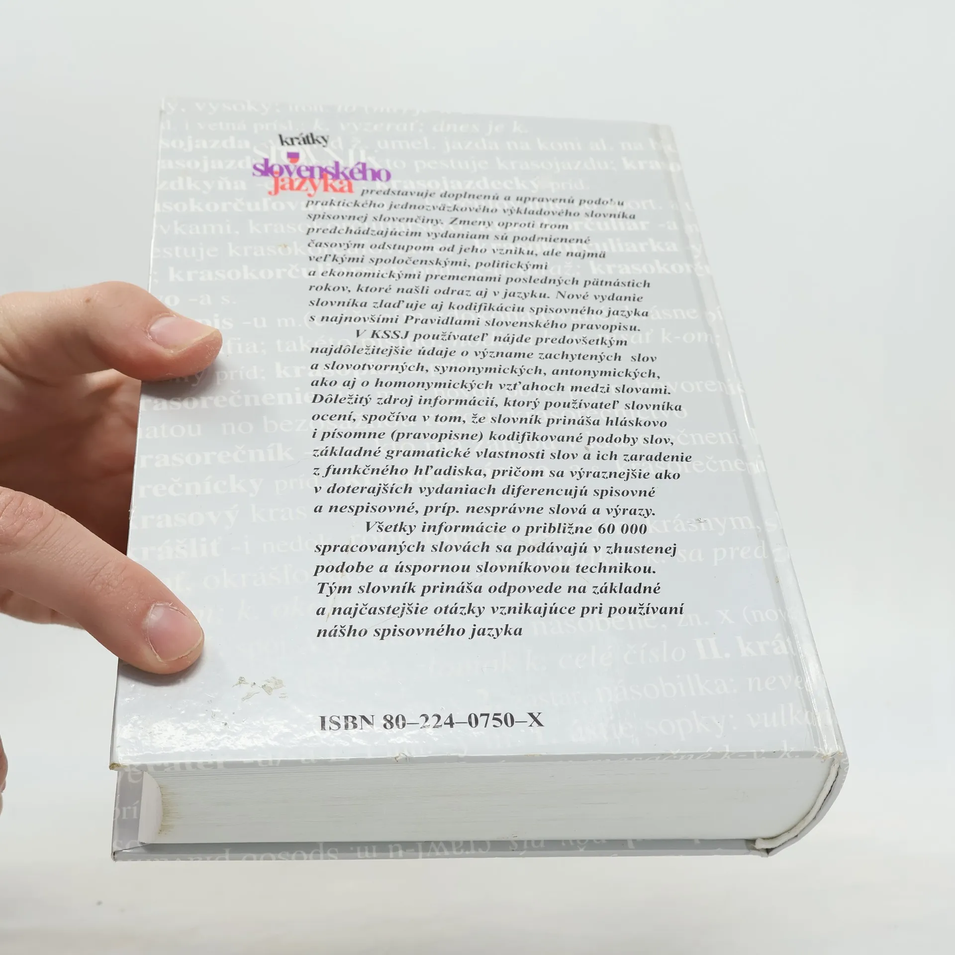Krátky slovník slovenského jazyka, ako základná kodifikačná príručka, predstavuje doplnenú a upravenú podobu jednozväzkového výkladového slovníka spisovnej slovenčiny odrážajúceho aj zmeny v slovnej zásobe slovenčiny odzrkadľujúce spoločenské, politické a ekonomické premeny po roku 1989. V slovníku používateľ nájde najdôležitejšie údaje o význame približne 60 000 zachytených slov spolu s dokladovými spojeniami ilustrujúcimi význam slova, základné gramatické informácie o pravopisne kodifikovaných podobách slov a informácie o funkčnom zaradení jednotlivých slov.