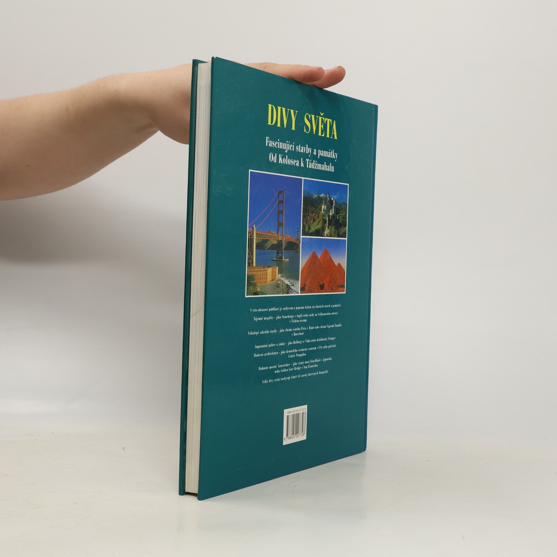 Tato obrazová publikace předvádí na stovku pozoruhodných a facsinujících staveb v rozmezí deseti tisíc let. Spektrum je široké, chrámy kostely, paláce a zámky, ale i ulice plné vody, přehrady, železnice a samozřejmě i věže a mrakodrapy našeho století. Publikace je rozdělena podle světadílů, stati udávají jednotlivé tematické okruhy jako například kostely skouží fundované historické informaci a usnadňuje přehled. Každé stabě je věnována jedna dvojstrana. Fascinující obrazy - kolem tři set dokonalých barevných fotografií - předvádějí velké divy tohoto světa.