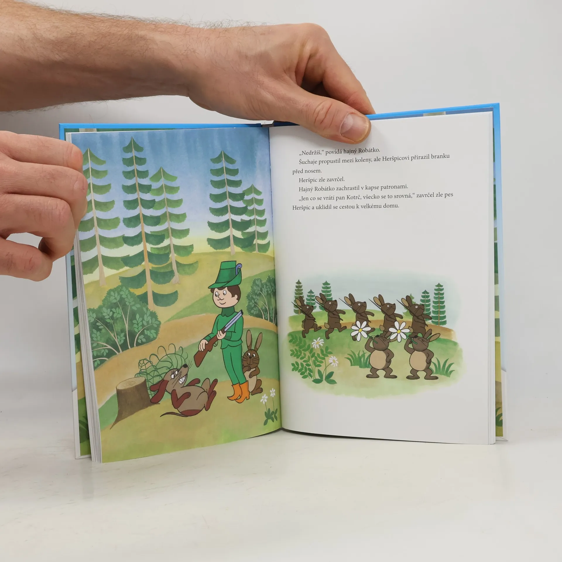 Hajný Robátko byl spravedlivý myslivec, o les i zvířata se dobře staral. A jelen Větrník mu věrně pomáhal. Komu se to však vůbec nelíbilo, byl pan Kotrč. A tak Robátkovi znepříjemňoval život, jak mohl nejdřív na něj poslal medvěda Hromburáce, pak krtky, aby mu rozryli les, a jednou dokonce sám zasedl hajnému hájovnu. A co bylo dál? To už si přečtete v pěkné knížce plné lesa a zvířátek.