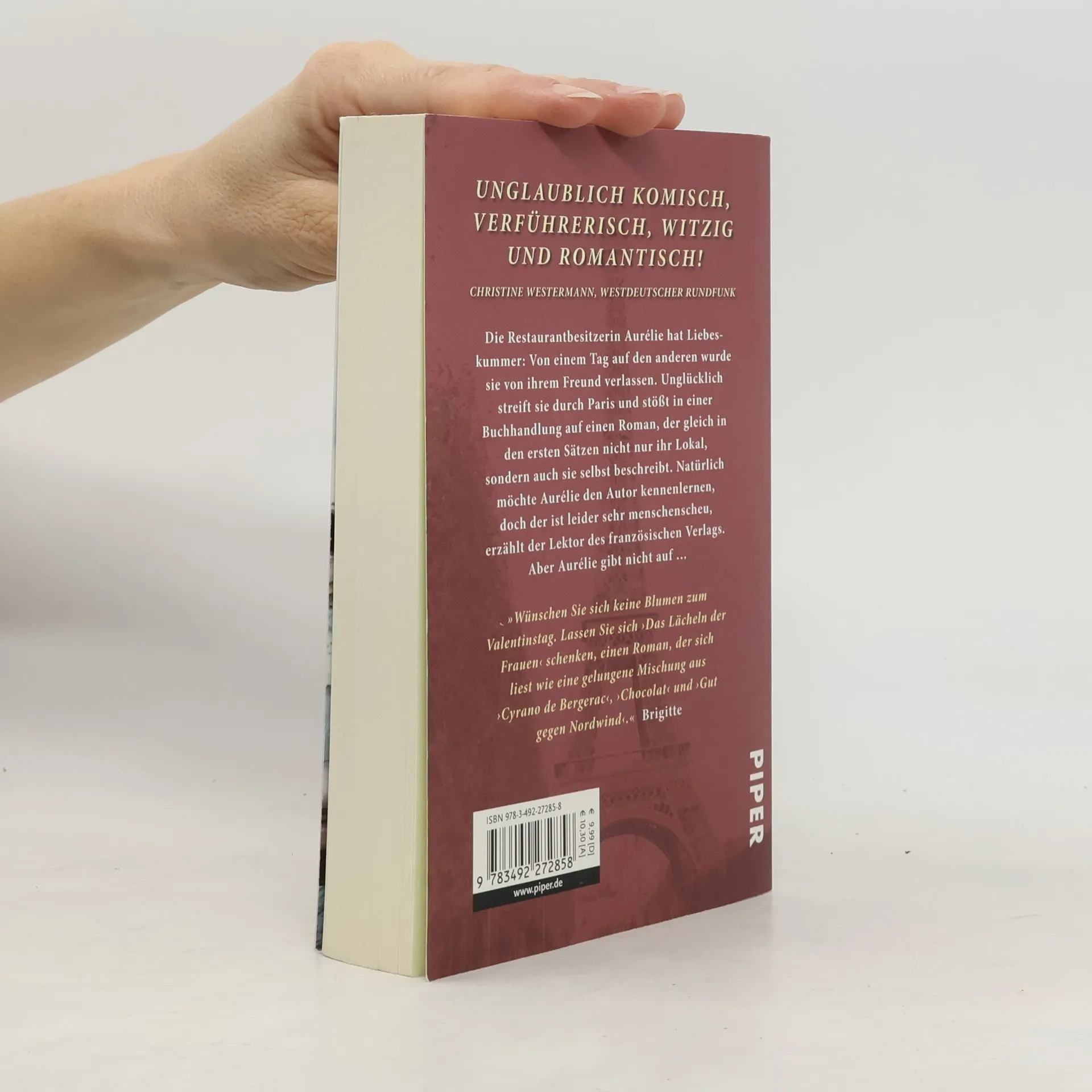 Die junge Restaurantbesitzerin Aurélie hat Liebeskummer: Von einem Tag auf den anderen wurde sie von ihrem Freund verlassen. Unglücklich streift sie durch Paris und stößt in einer kleinen Buchhandlung auf einen Roman, der gleich in den ersten Sätzen nicht nur ihr Lokal, sondern auch sie selbst beschreibt. Begeistert von der Lektüre, möchte Aurélie den Autor des Buchs kennenlernen, doch der ist leider sehr menschenscheu, erfährt sie vom Lektor des französischen Verlags. Aber Aurélie gibt nicht auf …