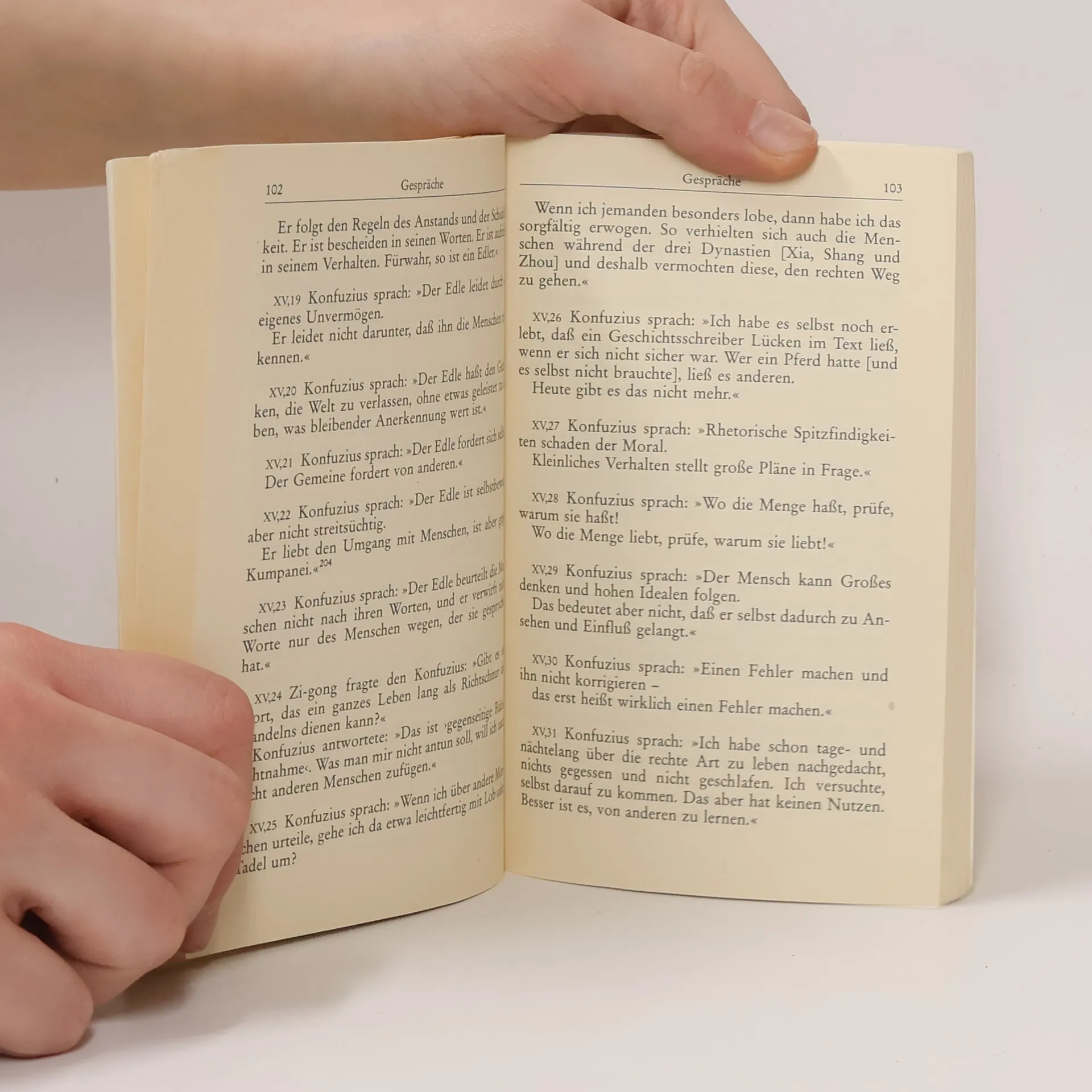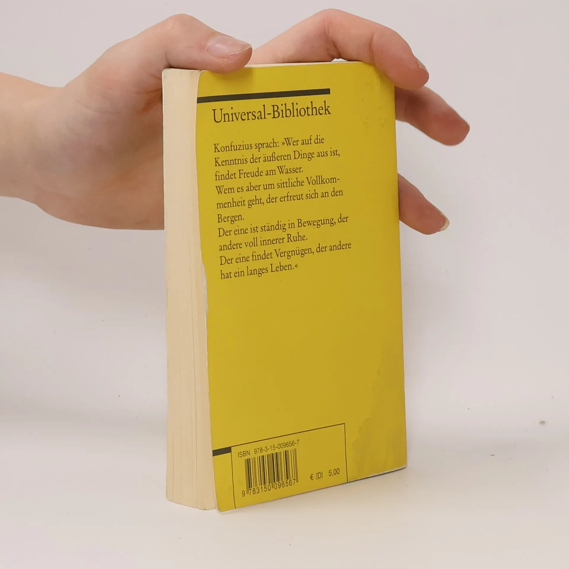 Konfuzius, der ein halbes Jahrhundert v. Chr. lebte und wirkte, war einer der herausragenden Denker Chinas. Wie Sokrates hat Konfuzius keine Zeile hinterlassen, aber in den nach seinem Tod aufgezeichneten "Gesprächen" ist seine Lehre klar und deutlich überliefert. Im Gegensatz zum Daoismus, der Weltflucht empfiehlt, propagiert der Konfuzianismus Lebensbejahung. Nur wer sich selbst bescheidet, erlangt menschliche Würde. Erst wenn die Guten herrschen, kehrt (wieder) Ordnung auf der Welt ein. Ethik und Politik bestimmen besonders stark das Denken des Konfuzius, dessen Wirkung auf das Leben in China bis heute anhält.
