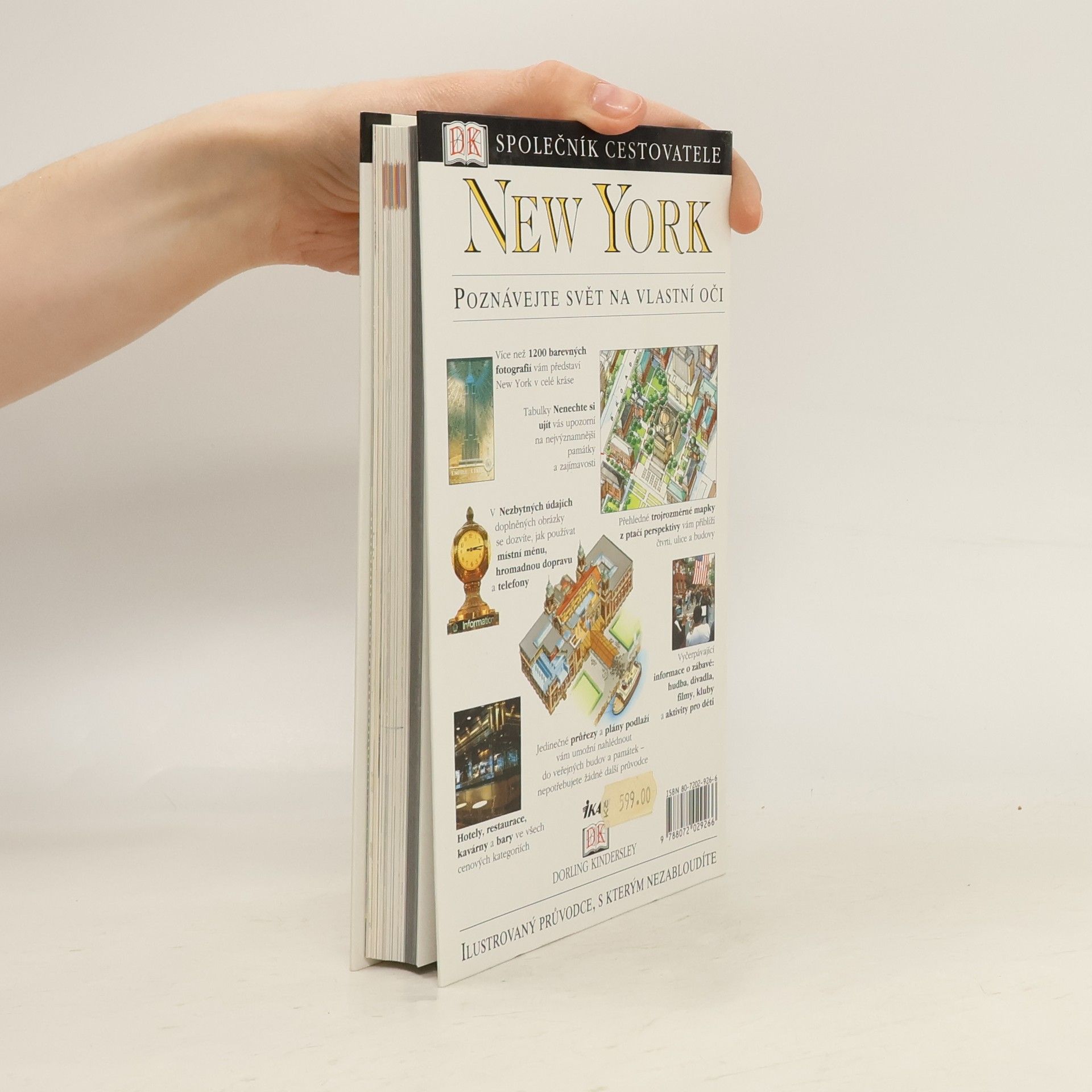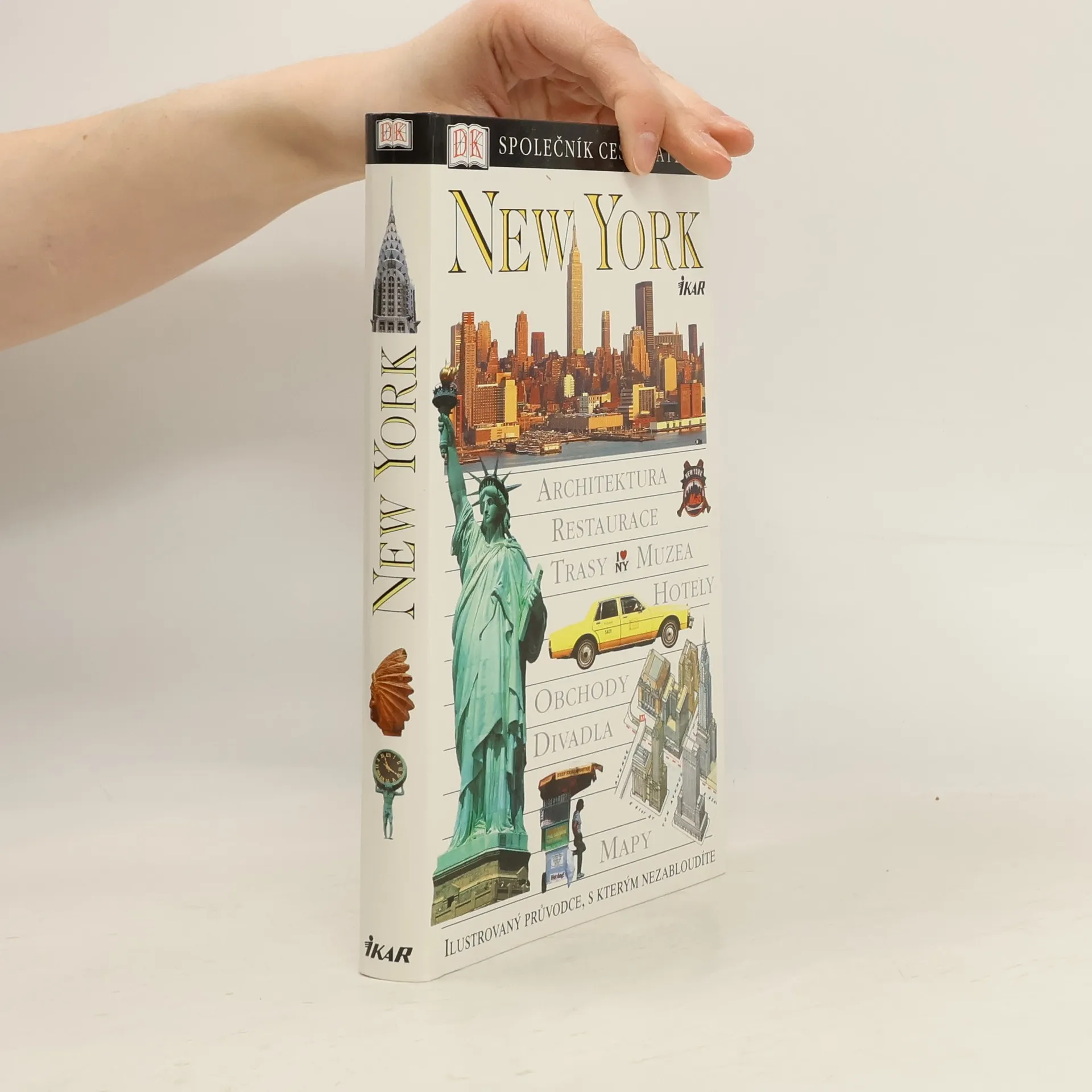 New York - ilustrovaný průvodce, s kterým nezabloudíte. Edice anglického nakladatelství Dorling Kindersley představuje v oboru průvodcovské literatury svojí názorností a grafickým pojetím s důrazem na množství fotografií, plánků a půdorysů zcela výjimečný vydavatelský počin. Aktuální svazek představuje detailně jedno z nejobdivovanějších a zároveň nejnenáviděnějších světových velkoměst - New York. Úroveň zpracování se odráží i ve vysoké prodejní ceně. Hlavní spolupracovník: Eleanor Bermanová. Spolupracovníci: Lester Brooks, Patricia Brooks, Susan Farewell. Fotografie: Max Alexander, Dave King, Michael Morgan. Ilustrace: Richard Draper, Robbie Polley, Hamish Simpson. Z anglického originálu „New York“ (Dorling Kindersley Limited, London 1997) přeložili Lenka Svobodová a Jozef Koval. Redigoval Pavel Kejř. Tato kniha vznikla za asistence Websters International Publishers. Vydání první.