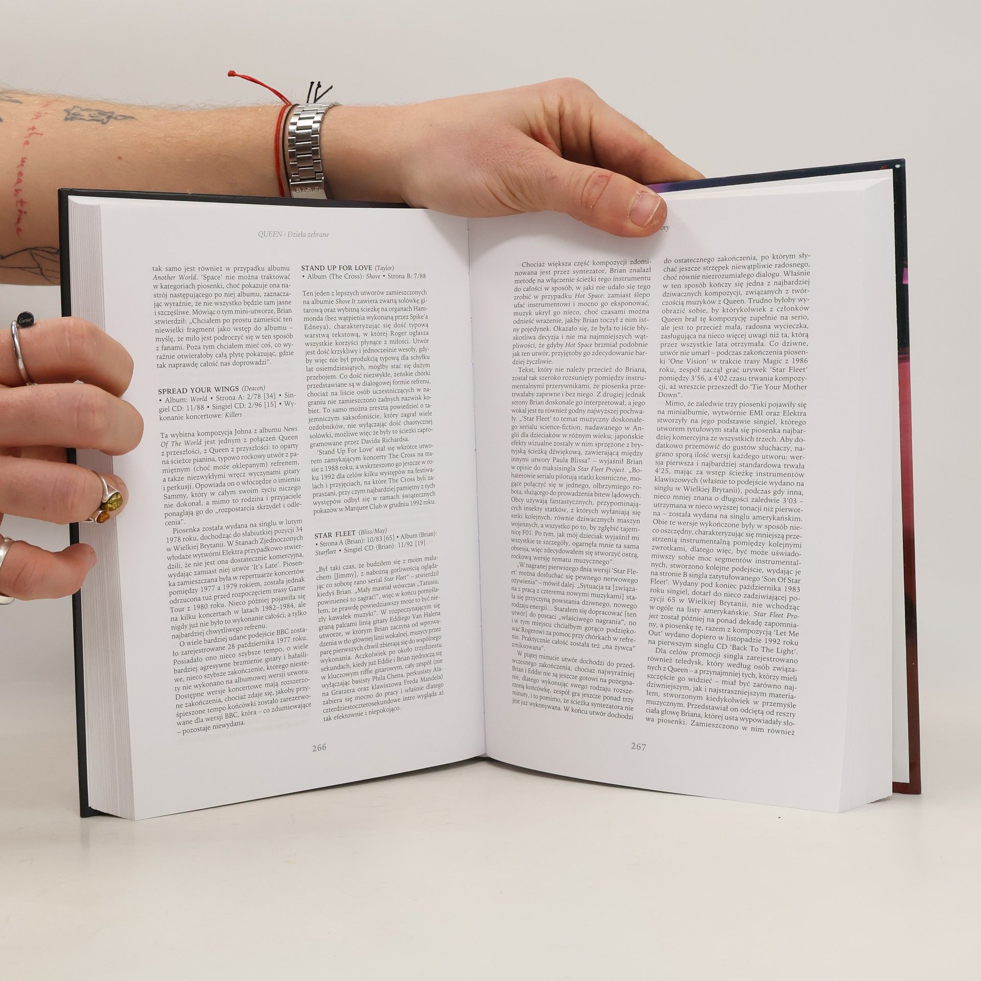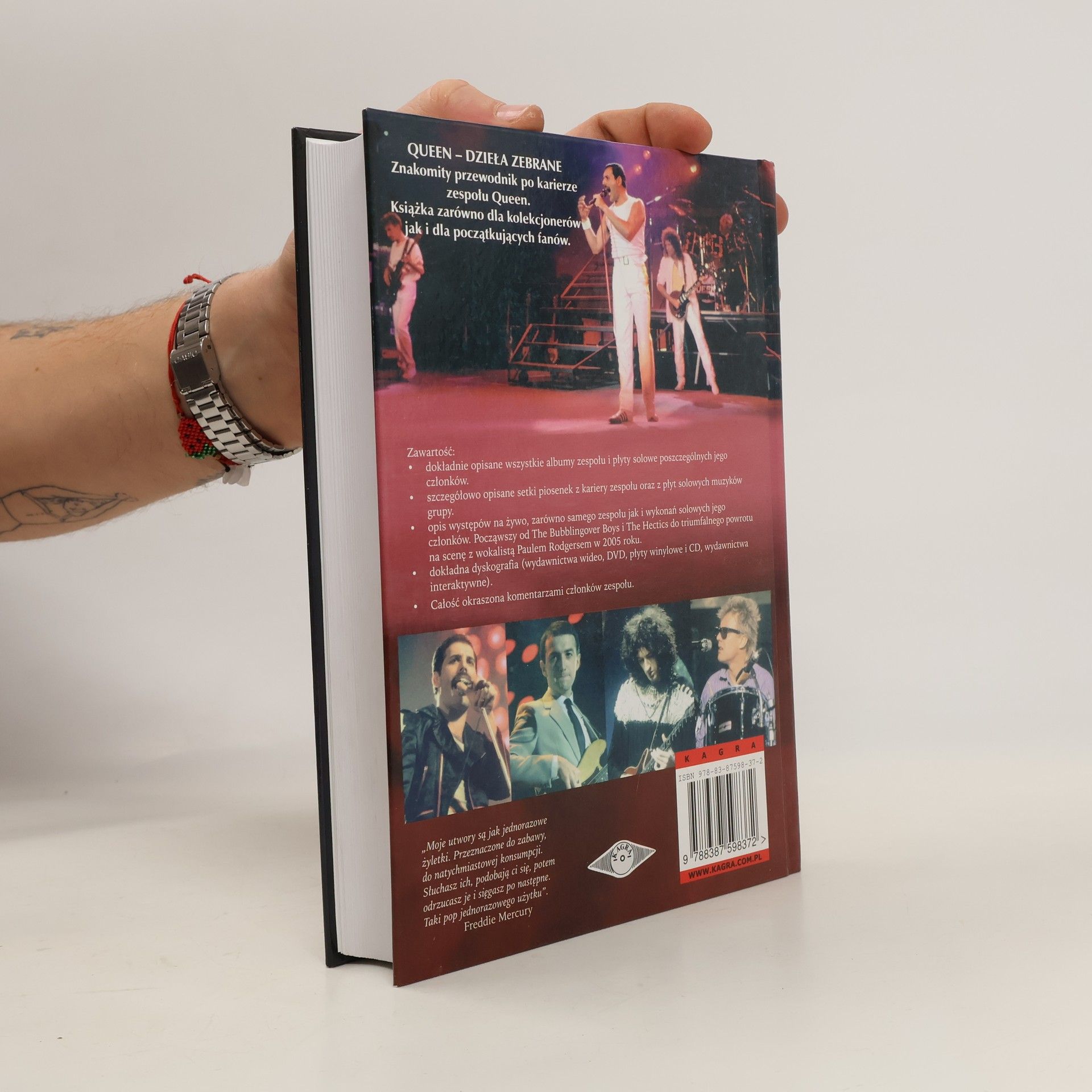 QUEEN - DZIEŁA ZEBRANE Znakomity przewodnik po karierze zespołu Queen. Książka zarówno dla kolekcjonerów jak i dla początkujących fanów. Zawartość: - dokładnie opisane wszystkie albumy zespołu i płyty solowe poszczególnych jego członków. - szczegółowo opisane setki piosenek z kariery zespołu oraz z płyt solowych muzyków grupy. - opis występów na żywo, zarówno samego zespołu jak i wykonań solowych jego członków. Począwszy od The Bubblingover Boys i The Hectics do triumfalnego powrotu na scenę z wokalistą Paulem Rodgersem w 2005 roku. - dokładna dyskografia (wydawnictwa wideo, DVD, płyty winylowe i CD, wydawnictwa interaktywne). - Całość okraszona komentarzami członków zespołu. "Moje utwory są jak jednorazowe żyletki. Przeznaczone do zabawy, do natychmiastowej konsumpcji. Słuchasz ich, podobają ci się, potem odrzucasz je i sięgasz po następne. Taki pop jednorazowego użytku". Freddie Mercury