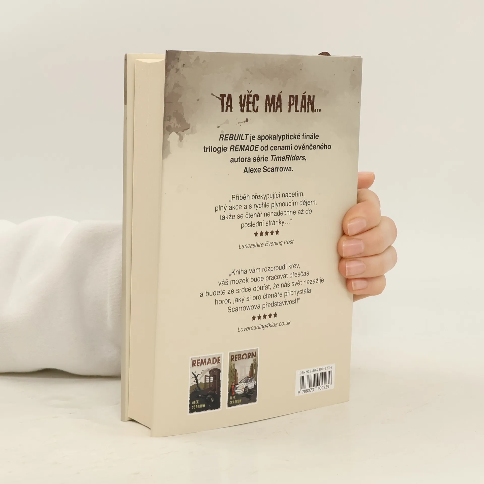 Ta věc má plán... V momentě nástupu na loď, která je má odvézt do Spojených států, jsou Leon a Freya rozděleni. Grace, u níž je zjištěna nákaza, je odeslána do výzkumného ústavu na Novém Zélandu. Virus, který už vyhubil téměř celé lidstvo a neustále se vyvíjí, získává schopnost komunikovat. Jeho cíl je následující: přimět poslední lidské přeživší, mezi nimiž jsou i Leon a Freya, aby se podrobili... Jaká bude jejich poslední volba? Rebuilt je apokalyptické finále trilogie Remade od cenami ověnčeného autora série TimeRiders, Alexe Scarrowa.
