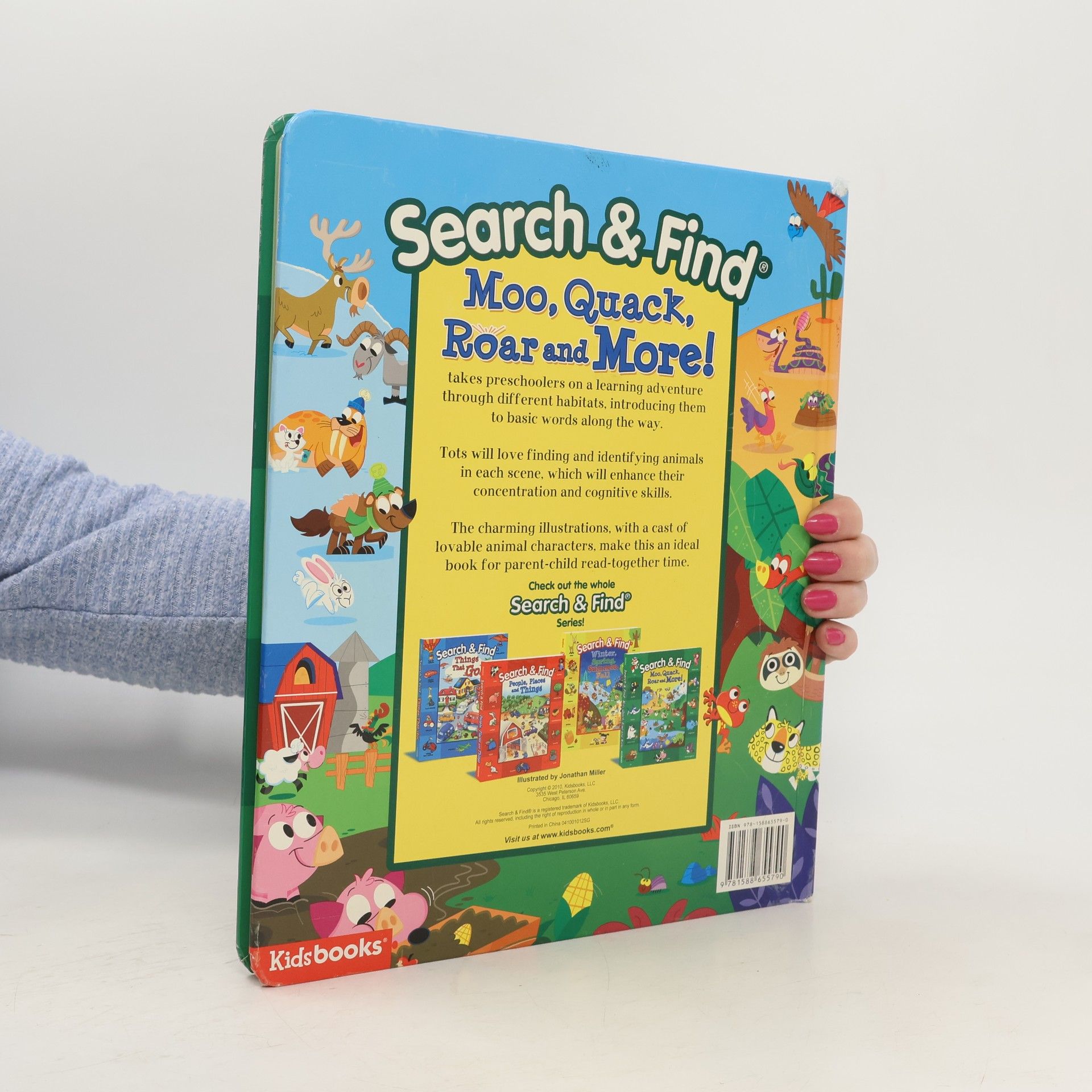 Search & Find®: Moo, Quack, Roar and More! takes preschoolers on a learning adventure through different habitats, introducing them to basic words along the way. Tots will love finding and identifying animals in each scene, which will enhance their concentration and cognitive skills. The charming illustrations, with a cast of lovable animal characters, make this an ideal book for parent-child read-together time.