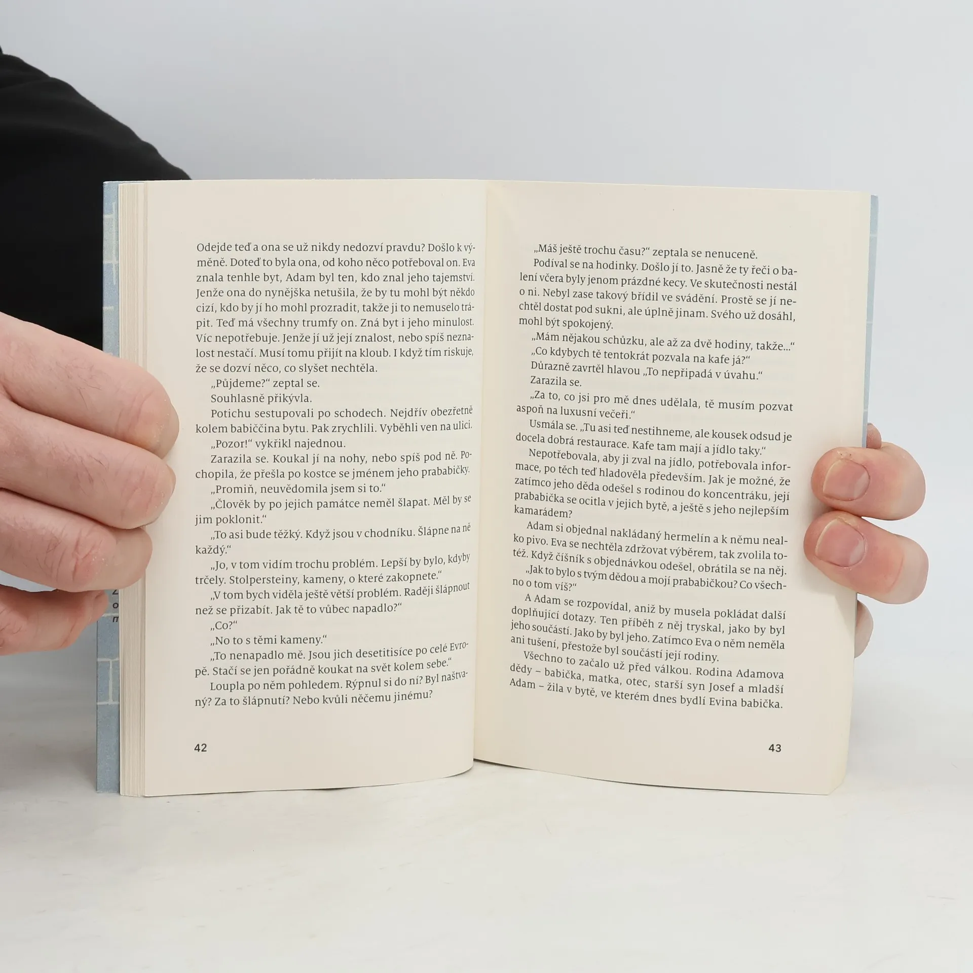 Pohnutý příběh dvou mladých lidí, kteří odhalují pravdu o své rodinné historii Když Adam přijde do bytu Eviny babičky s tvrzením, že kdysi patřil jeho rodině, ani jeden ještě netuší, jak hluboko jsou jejich osudy propletené. Mezi starými zdmi začne ožívat pravda o lásce mezi jejich prarodiči, které rozdělila válka. Nově objevené skutečnosti otřesou nejen Eviným světem, ale i Adamovou vírou v dědečka, který jako jediný z rodiny přežil koncentrační tábor. Kolotoč křivd se znovu roztáčí. Obrátí se Adamův hněv proti Evě, nebo dokážou čelit stínům minulosti společně? Naďa Reviláková vypráví příběh dvou mladých lidí, do jejichž životů se propisují historické i osobní zkušenosti jejich předků.