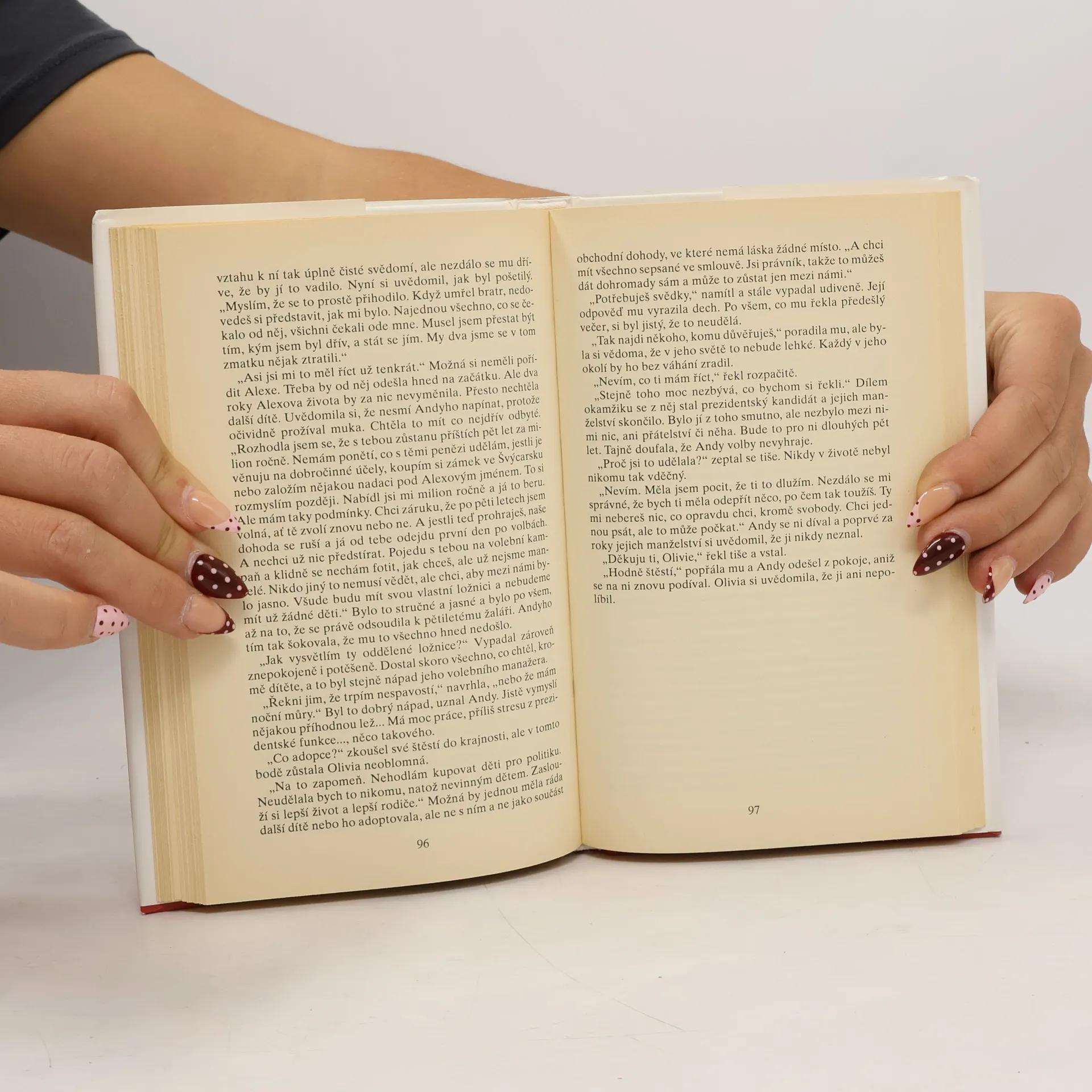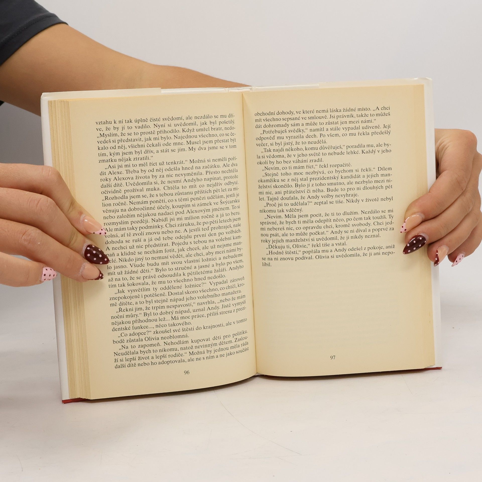 Peter Haskell je pohledný, úspěšný muž. Jeho kariéra až dosud strmě stoupala, manželství s dcerou majitele farmaceutického koncernu se zdá být bez mráčku. Ale je všechno skutečně takové, jak to na první pohled vypadá? K osudovému setkání s krásnou, nešťastnou Olivií dojde právě ve chvíli, kdy ho nečekané problémy, spojené s vývojem léku proti rakovině, zdrží na několik dní v Paříži. Prožili spolu jen pár hodin, ty však ovlivnily celou jejich budoucnost. Klapky, které měl Peter léta na očích, náhle mizí a on odhaluje smutnou skutečnost - pro svou ženu Kate i tchána je a vždycky byl jen hračkou, kterou si pořídili a s níž manipulují, jak se jim zachce. Situace kolem dosud neschváleného léku se mezitím zhoršuje. Dokáže Peter konečně prosadit vlastní názor a zachovat si tak čest a vnitřní svobodu, i když přitom zřejmě ztratí všechny jistoty, na nichž dosud lpěl? A dokáže se Olivie vymanit z vlivu svého sobeckého manžela a z tísnivého prostředí vysoké politiky? Najdou oba nakonec to, po čem touží?