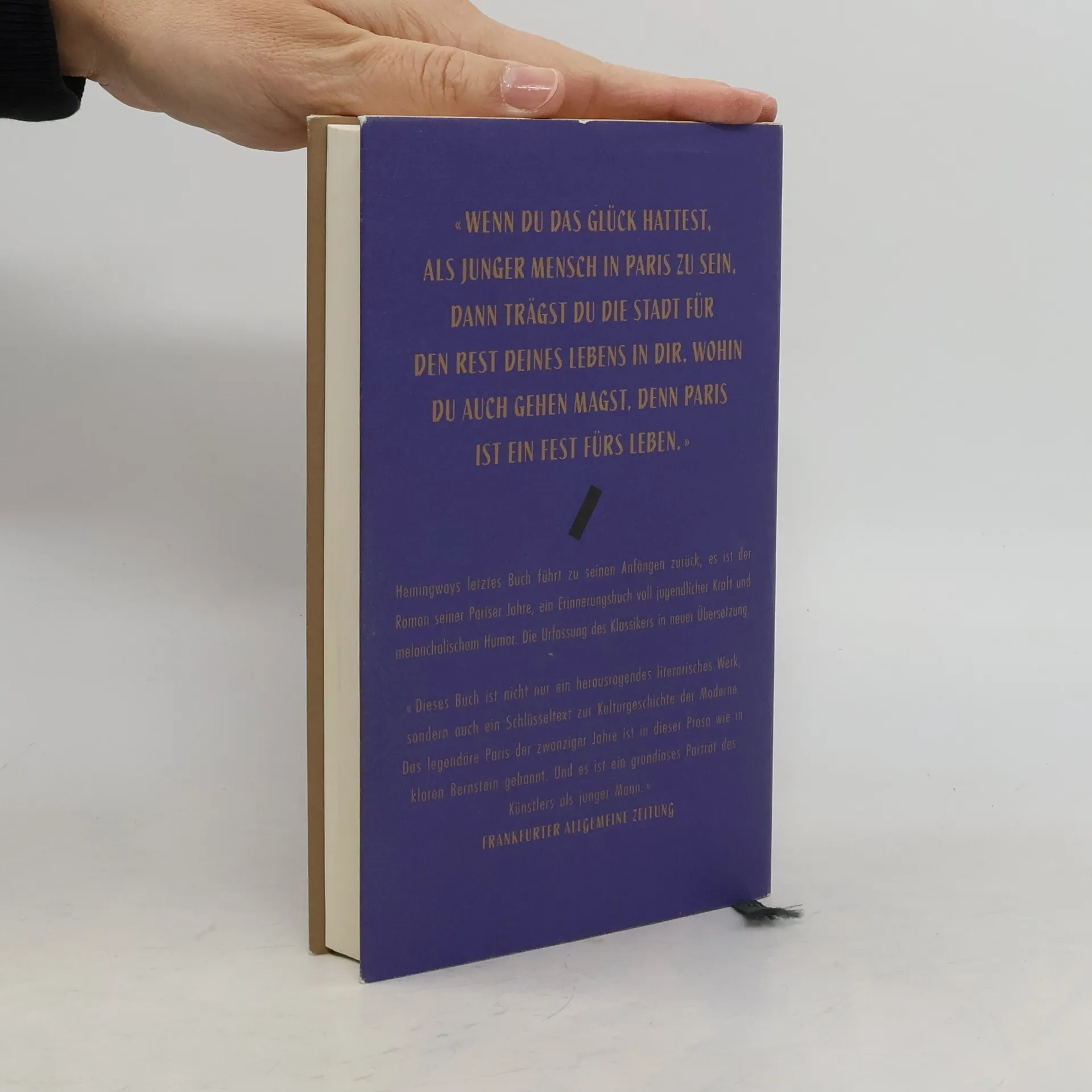 «WENN DU DAS GLÜCK HATTEST, ALS JUNGER MENSCH IN PARIS ZU SEIN, DANN TRÄGST DU DIE STADT FÜR DEN REST DEINES LEBENS IN DIR, WOHIN DU AUCH GEHEN MAGST, DENN PARIS IST EIN FEST FÜRS LEBEN.» «Das ist bester Hemingway; niemand hat das Paris der 20er Jahre eindrucksvoller beschrieben als er.» (The New York Times) «Vom Glück, vom reinen, kindlichen Glück handelt dieses Buch, und es teilt sich jedem Leser mit, der mit dem jungen Autor in einem noch nicht fashionablen Viertel aufwacht, wenn die Sonne die nassen Fassaden der Häuser trocknet.» (Willi Winkler, Süddeutsche Zeitung) «Dieses Buch ist nicht nur ein herausragendes literarisches Werk, sondern auch ein Schlüsseltext zur Kulturgeschichte der Moderne. Das legendäre Paris der zwanziger Jahre ist in dieser Prosa wie in klaren Bernstein gebannt. Und es ist ein grandioses Porträt des Künstlers als junger Mann.» (Frankfurter Allgemeine Zeitung)