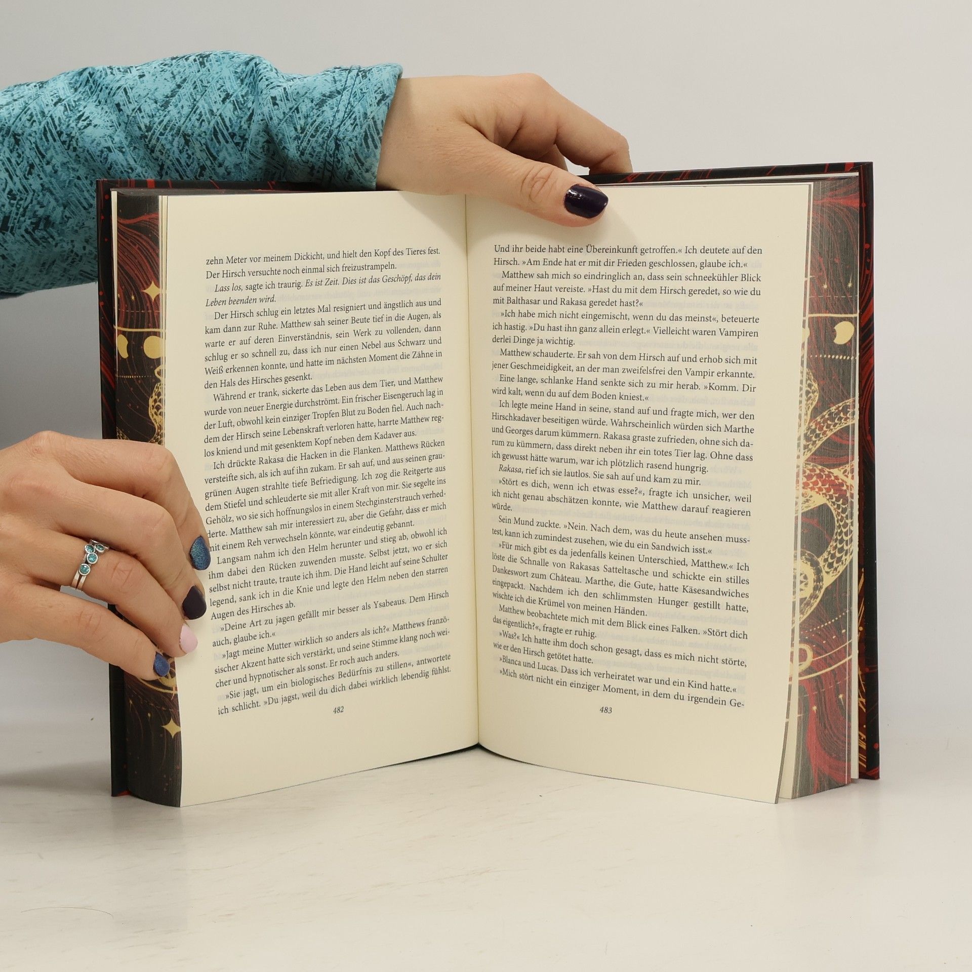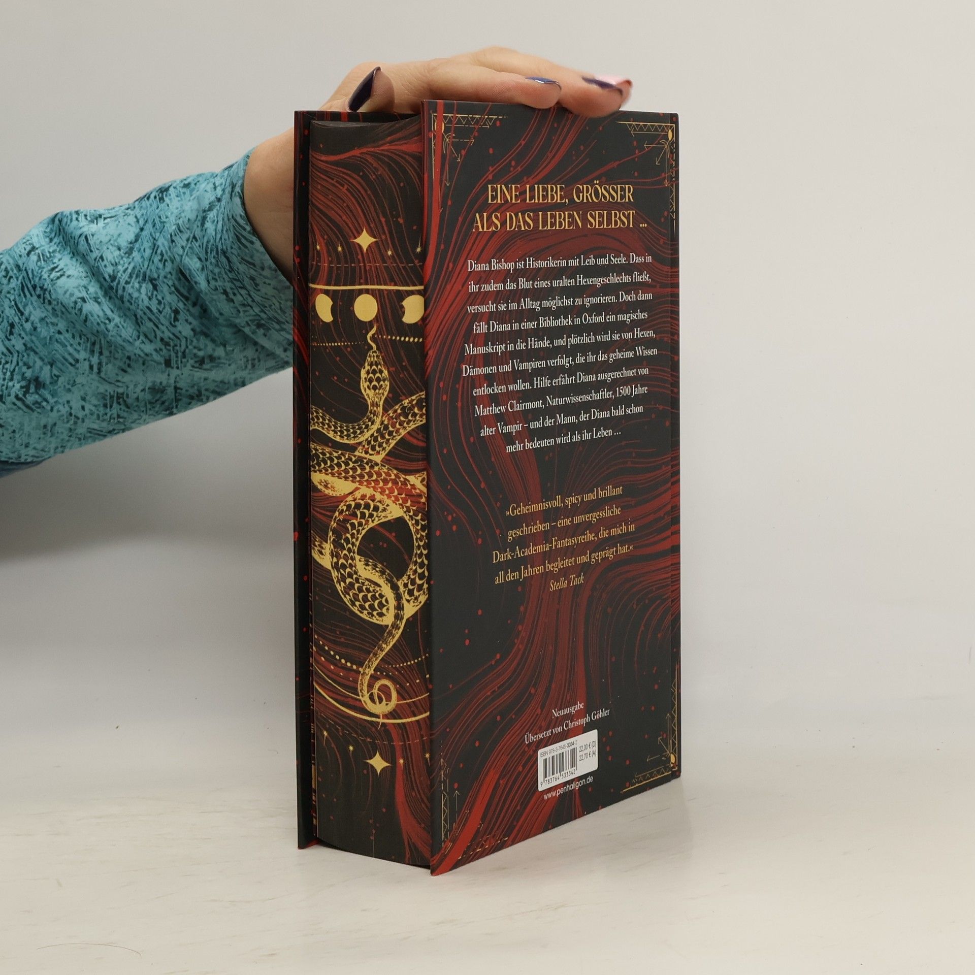 Eine Hexe wider Willen und ein jahrhundertealter Vampir – eine Liebe, die nicht sein darf, und doch so stark ist, dass sie alles überwindet. ***Der gestaltete Buchschnitt ist auf eine limitierte Auflage begrenzt.*** Diana Bishop ist Historikerin mit Leib und Seele. Dass in ihr zudem das Blut eines uralten Hexengeschlechts fließt, versucht sie im Alltag möglichst zu ignorieren. Doch dann fällt Diana in einer Bibliothek in Oxford ein magisches Manuskript in die Hände, und plötzlich wird sie von Hexen, Dämonen und Vampiren verfolgt, die ihr das geheime Wissen über das Schriftstück entlocken wollen. Hilfe erfährt Diana ausgerechnet von Matthew Clairmont, Naturwissenschaftler, 1500 Jahre alter Vampir – und der Mann, der Diana bald schon mehr bedeuten wird als ihr Leben … Dieses Buch gibt es in zwei Versionen: mit und ohne Farbschnitt. Es wird je nach Verfügbarkeit geliefert. Band 1 der opulenten Saga um die epische verbotene Liebe zwischen einer Hexe und einem Vampir. Alle Bände der Reihe: A Discovery of Witches – Die Seelen der Nacht Shadow of Night – Wo die Nacht beginnt The Book of Life – Das Buch der Nacht Time’s Convert – Bis ans Ende der Ewigkeit Dieses Buch gibt es in zwei Versionen: mit und ohne Farbschnitt. Es wird je nach Verfügbarkeit geliefert.