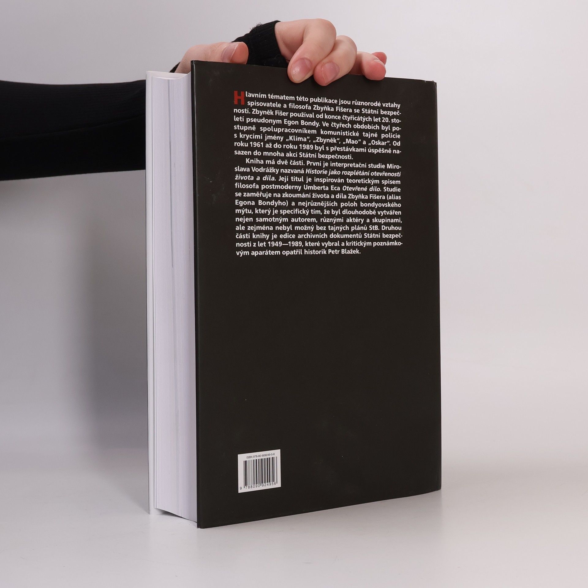 Hlavním tématem této publikace jsou různorodé vztahy spisovatele a filosofa Zbyňka Fišera se Státní bezpečností. Zbyněk Fišer používal od konce čtyřicátých let 20. století pseudonym Egon Bondy. Ve čtyřech obdobích byl postupně spolupracovníkem komunistické tajné policie s krycími jmény„Klíma“, „Zbyněk“, „Mao“ a „Oskar“. Od roku 1961 až do roku 1989 byl s přestávka mi úspěšně nasazen do mnoha akcí Státní bezpečnosti. Kniha má dvě části. První je interpretační studie Miroslava Vodrážky nazvaná Historie jako rozplétání otevřenosti života a díla. Její titul je inspirován teoretickým spisem filosofa postmoderny Umberta Eca Otevřené dílo. Studie se zaměřuje na zkoumání života a díla Zbyňka Fišera (alias Egona Bondyho) a nejrůznějších poloh bondyovského mýtu, který je specifický tím, že byl dlouhodobě vytvářen nejen samotným autorem, různými aktéry a skupinami, ale zejména nebyl možný bez tajných plánů StB. Druhou částí knihy je edice archivních dokumentů Státní bezpečnosti z let 1949–1989, které vybral a kritickým poznámkovým aparátem opatřil historik Petr Blažek.