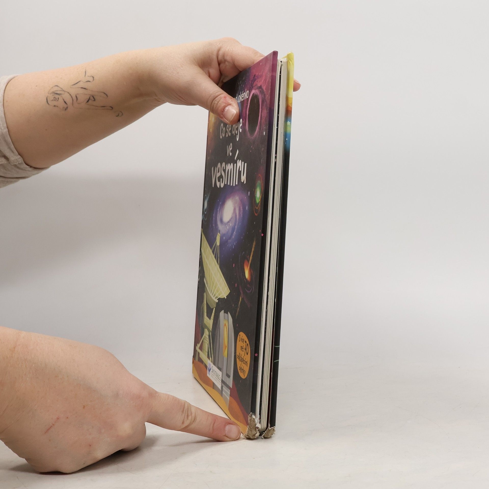 Kniha přináší základní informace o tom, co je vesmír, z čeho je všechno složeno, jak to všechno začalo a jak vesmír jednou skončí, jak vědci pozorují vesmír; obsahuje i stručné shrnutí dějin astronomie. Pod 70 otevíracími okénky se skrývají další obrázky a informace.
