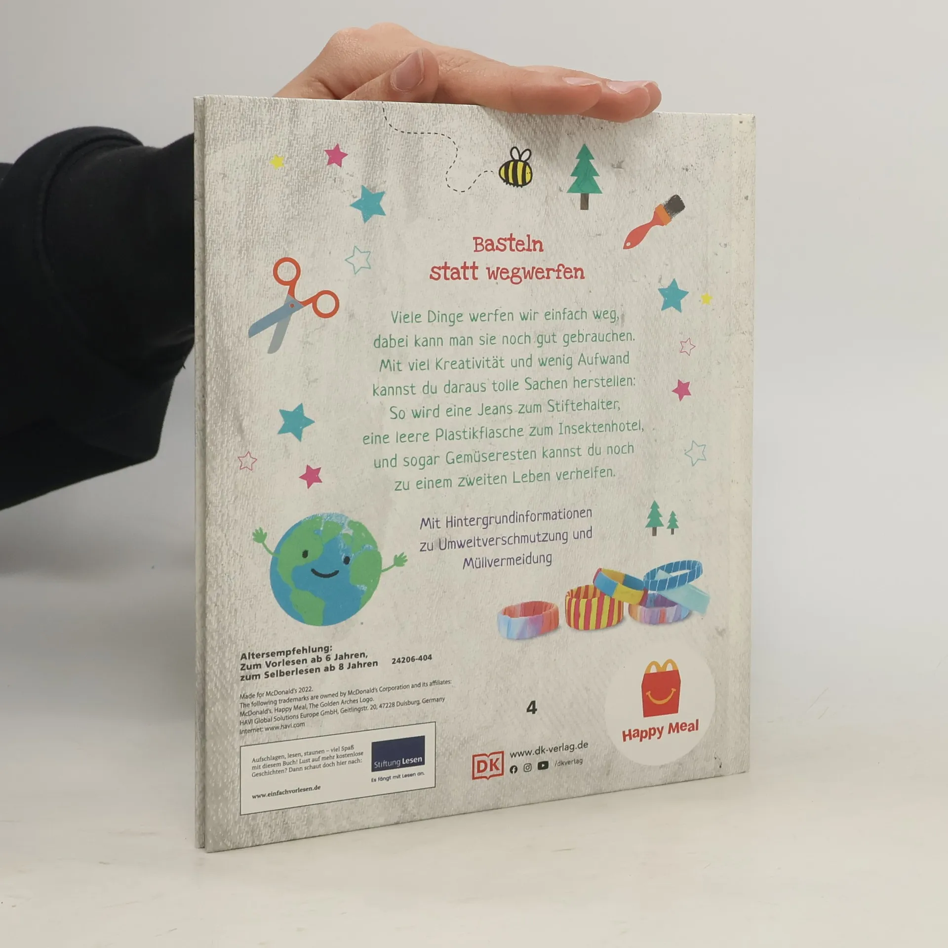 Basteln mit Kindern und gleichzeitig die Umwelt schützen! Nicht wegwerfen – das kann man noch gebrauchen! Dieses clevere Bastelbuch ist die perfekte Kombi aus Kreativität & Nachhaltigkeit. Es zeigt umweltbewussten Kids, wie sie aus Müll nützliche Dinge und schöne Geschenke herstellen. So entstehen aus alten T-Shirts stylische Taschen oder aus Plastikflaschen individuelle Blumentöpfe. Dazu gibt es hilfreiche Umwelttipps von der „kleinen Erde“, die die fantasievollen Bastelprojekte mit wichtigen Umweltthemen verknüpft. Kreatives Kinderbuch zum Umweltschutz: Recyceln mal anders! Ob Plastikvermeidung, Klimawandel oder unser Konsumverhalten – die Menschheit macht der Erde ganz schön zu schaffen. Kein Wunder, dass sich besonders Kinder immer mehr den Kopf über die Zukunft unseres Planeten zerbrechen. Dieses originelle Upcycling-Buch nimmt sich den wichtigsten Umweltthemen an. Mit kreativen Bastelideen und Tipps zeigt es jungen Umweltschützern, wie sie im Alltag ihren Teil zum Erhalt unserer Erde beitragen können. Originelle Upcycling-Bastelideen für die ganze Familie: • Wichtige Umweltthemen. • Über 15 fantasievolle Upcycling-Ideen. • Kinderleichte Umsetzung. • Interessante Fakten und clevere Umwelttipps. Mit einfallsreichen Zero-Waste-Ideen die Erde ein bisschen besser machen – der perfekte Begleiter für alle Nachwuchs-Umweltschützer! Buch ist bei Antolin. de verfügbar.