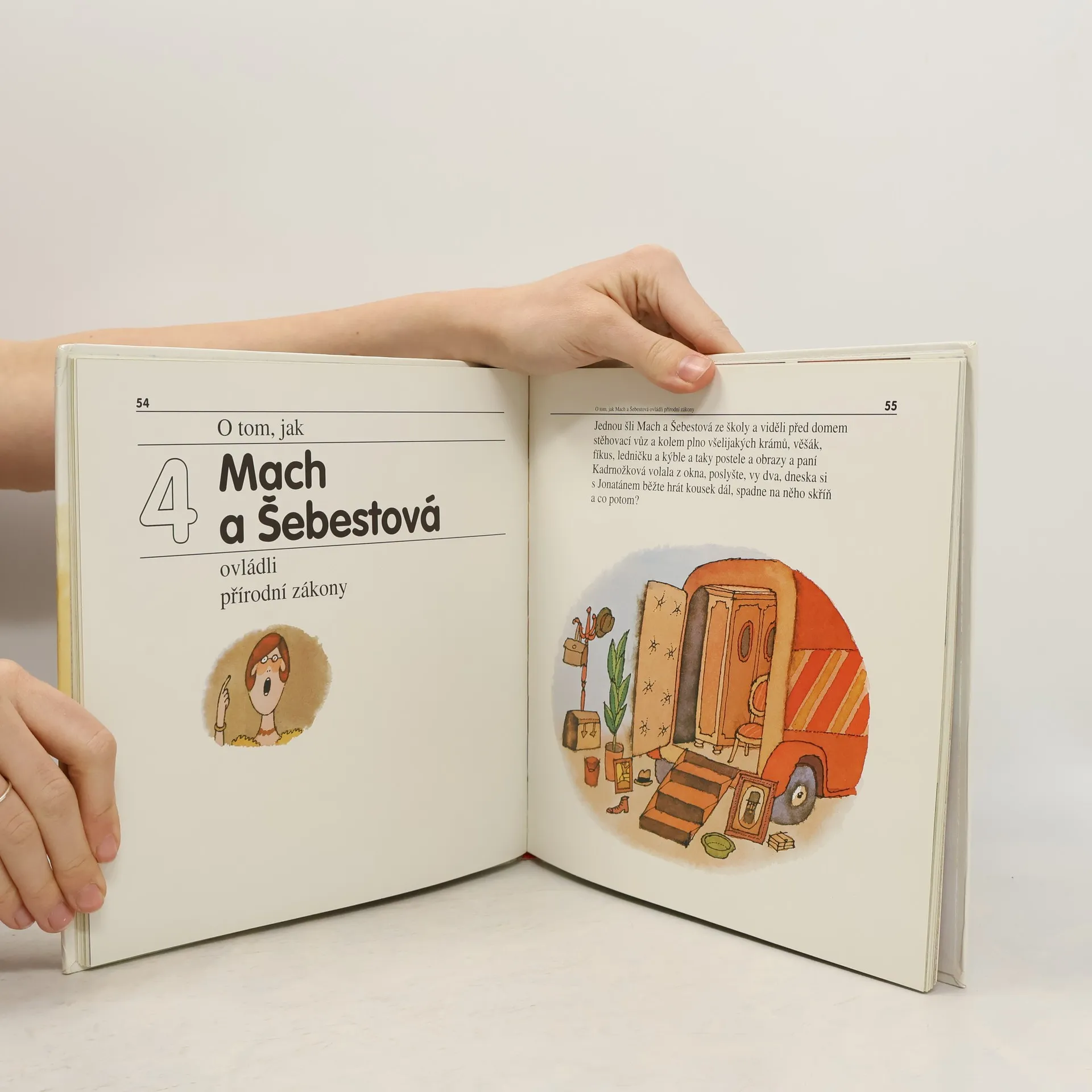 Příběhy dvou školáků, žáků 3.B, kteří získali kouzelné telefonní sluchátko. Knížka navazuje na výbor Mach a Šebestová ve škole. Mach a Šebestová naučí Jonatána a Micku vzornému chování, vysvobodí Jonatána z otroctví, ovládnou přírodní zákony, pomohou vypátrat zloděje vzácných želv, uletí jim malý Petříček, zachrání sluchátko a s ním i celou školu před Horáčkem a Pažoutem a vyrvou pana Balouna ze spárů únosců.