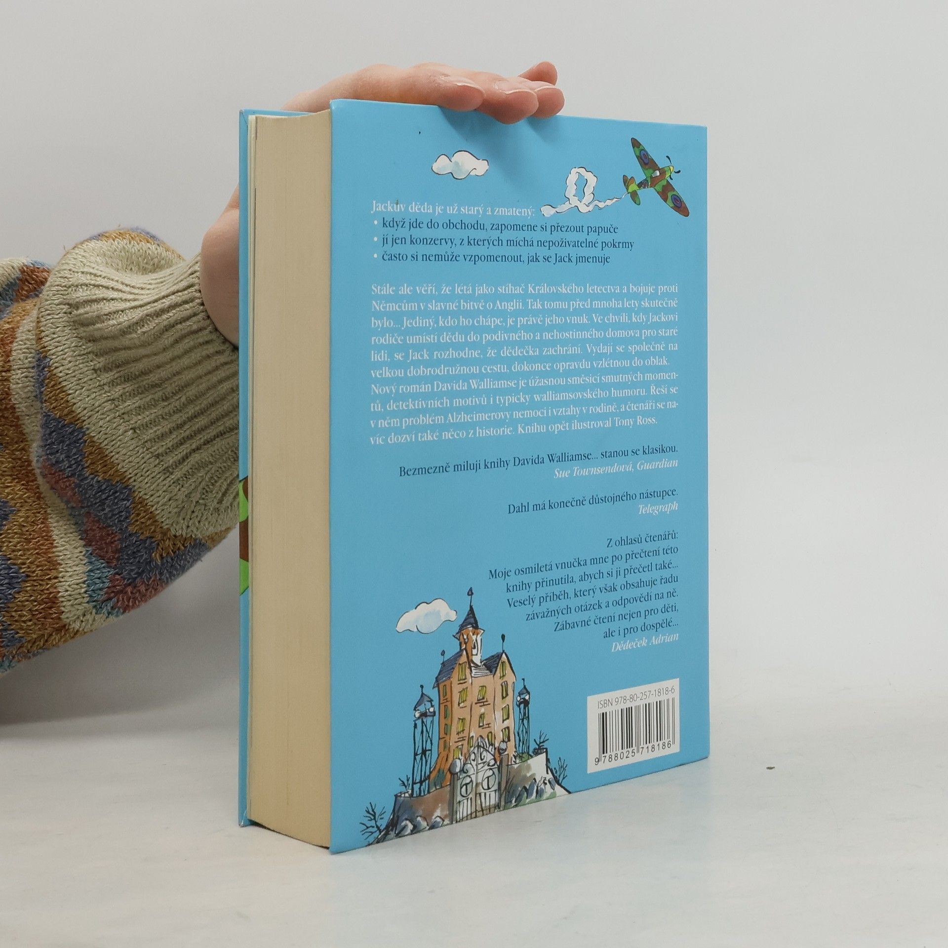 Jackův děda je už starý a zmatený: Když jde do obchodu, zapomene si přezout papuče. Jí jen konzervy, z kterých vytváří nepoživatelné míchanice. Často si nemůže vzpomenout, jak se Jack jmenuje. Stále ale věří, že létá jako stíhač Královského letectva a bojuje proti Němcům v slavné bitvě o Anglii. Tak tomu před mnoha lety skutečně bylo… Jediný, kdo ho chápe, je právě jeho vnuk. Ve chvíli, kdy Jackovi rodiče umístí dědu do podivného a nehostinného domova pro staré lidi, se Jack rozhodne, že dědečka zachrání. Vydají se společně na velkou dobrodružnou cestu, dokonce opravdu vzlétnou do oblak. Nový román Davida Walliamse je úžasnou směsicí smutných momentů, detektivních motivů i typicky walliamsovského humoru. Řeší se v něm problém Alzheimerovy nemoci, vztahy v rodině a čtenáři se navíc dozví i něco z historie. Knihu opět ilustroval Tony Ross.