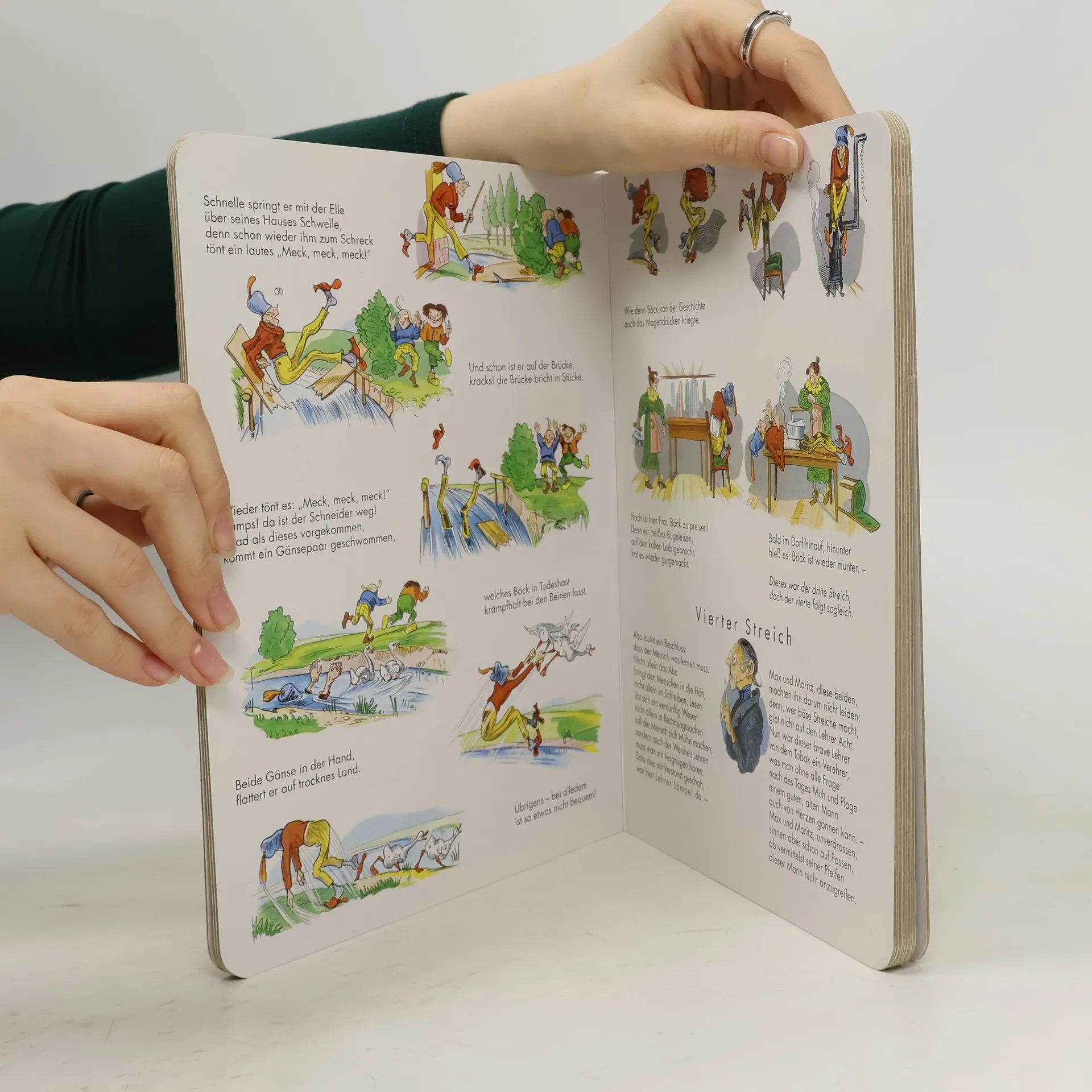 »Vierzig Übersetzungen in 28 verschiedene Sprachen und Dialekte, viele Nachahmungen, Parodien, Vertonungen und Bearbeitungen des Max-und-Moritz-Stoffes stempeln die sieben Streiche zu dem mit Abstand populärsten Kinderbuch der Welt, und es gibt einige moderne Kinderbuchautoren, unter ihnen Tomi Ungerer und Maurice Sendak, die freudig bekennen, daß sie von Busch viel gelernt haben.«