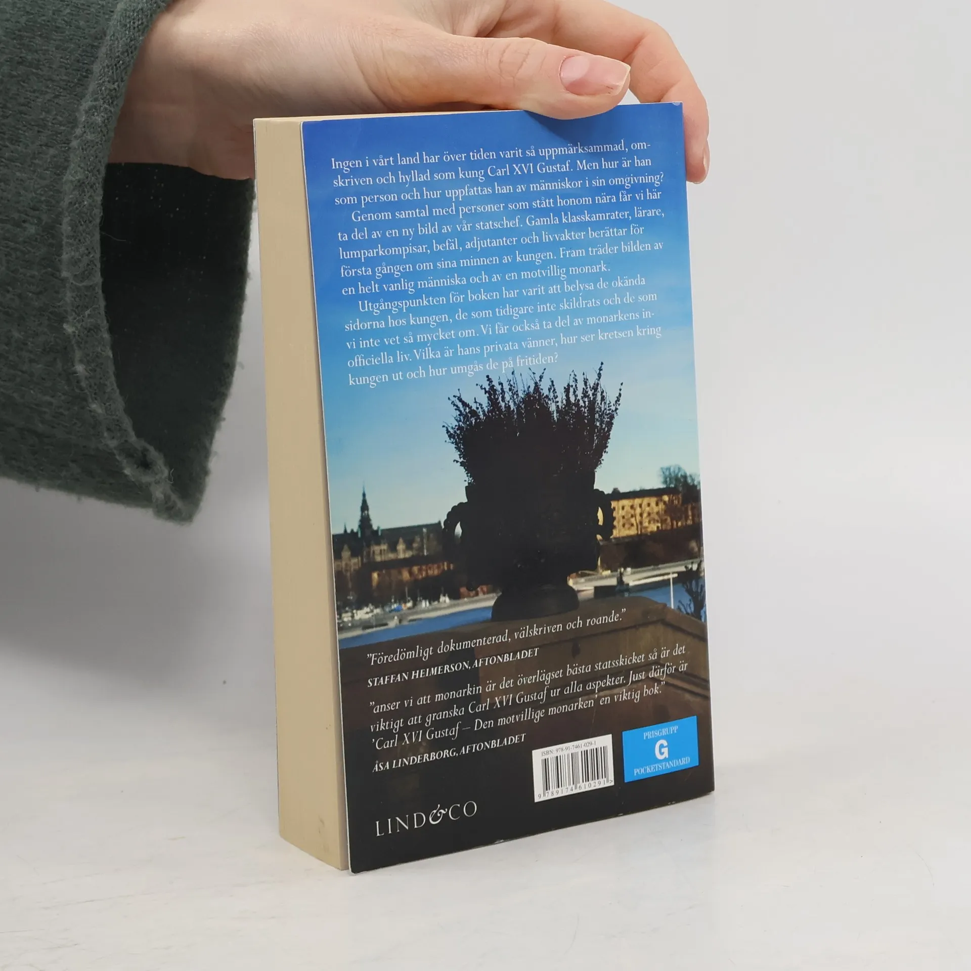 Ingen i vårt land har över tiden varit så uppmärksammad, omskriven och hyllad som kung Carl XVI Gustaf. Men hur är han som person och hur uppfattas han av människor i sin omgivning? // Genom samtal med personer som stått honom nära får vi här ta del av en ny bild av vår statschef. Gamla klasskamrater, lärare, lumparkompisar, befäl, adjutanter och livvakter berättar för första gången om sina minnen av kungen. Fram träder bilden av en helt vanlig människa och av en motvillig monark. // Utgångspunkten för boken har varit att belysa de okända sidorna hos kungen, de som tidigare inte skildrats och de som vi inte vet så mycket om. Vi får också ta del av monarkens inofficiella liv. Vilka är hans privata vänner, hur ser kretsen kring kungen ut och hur umgås de på fritiden?