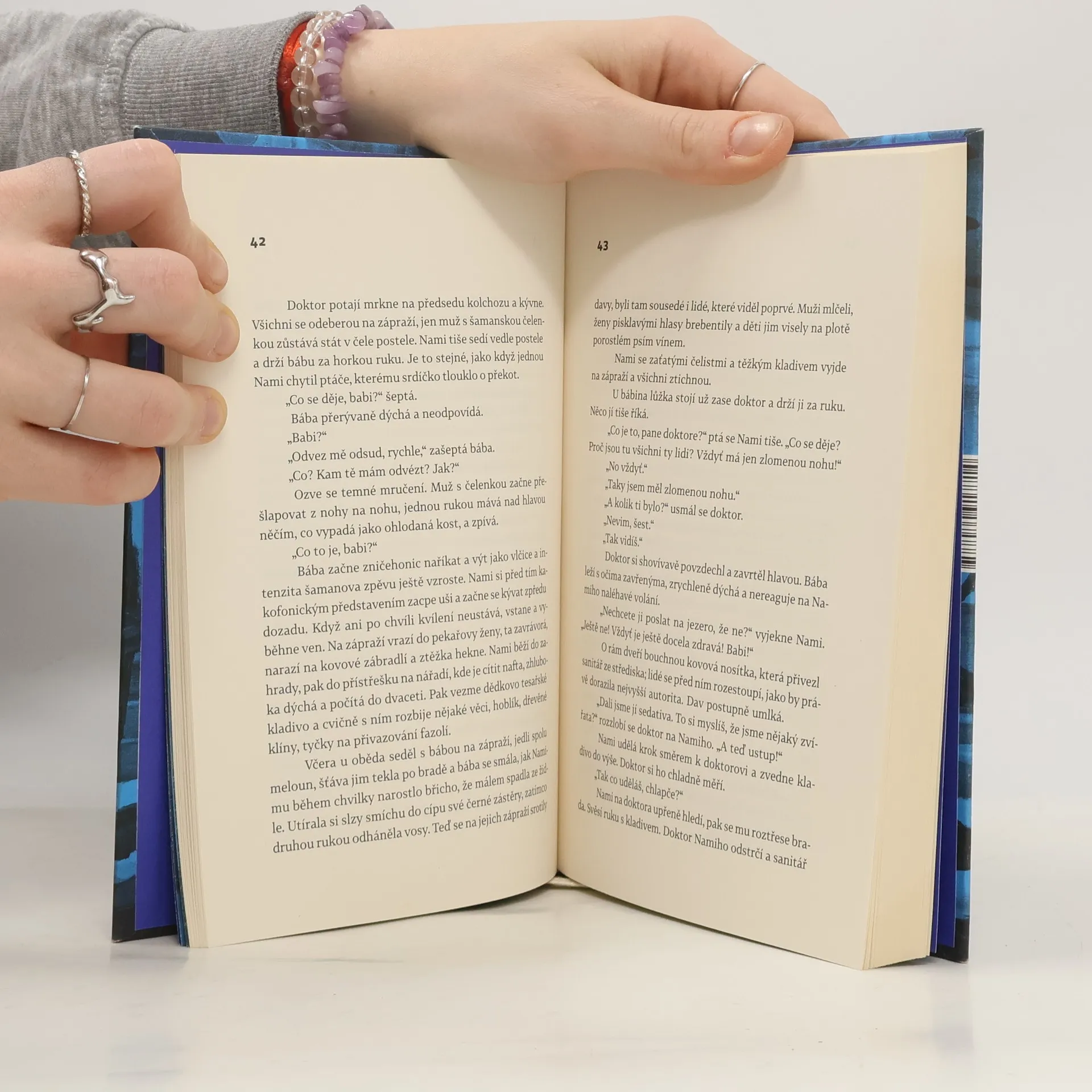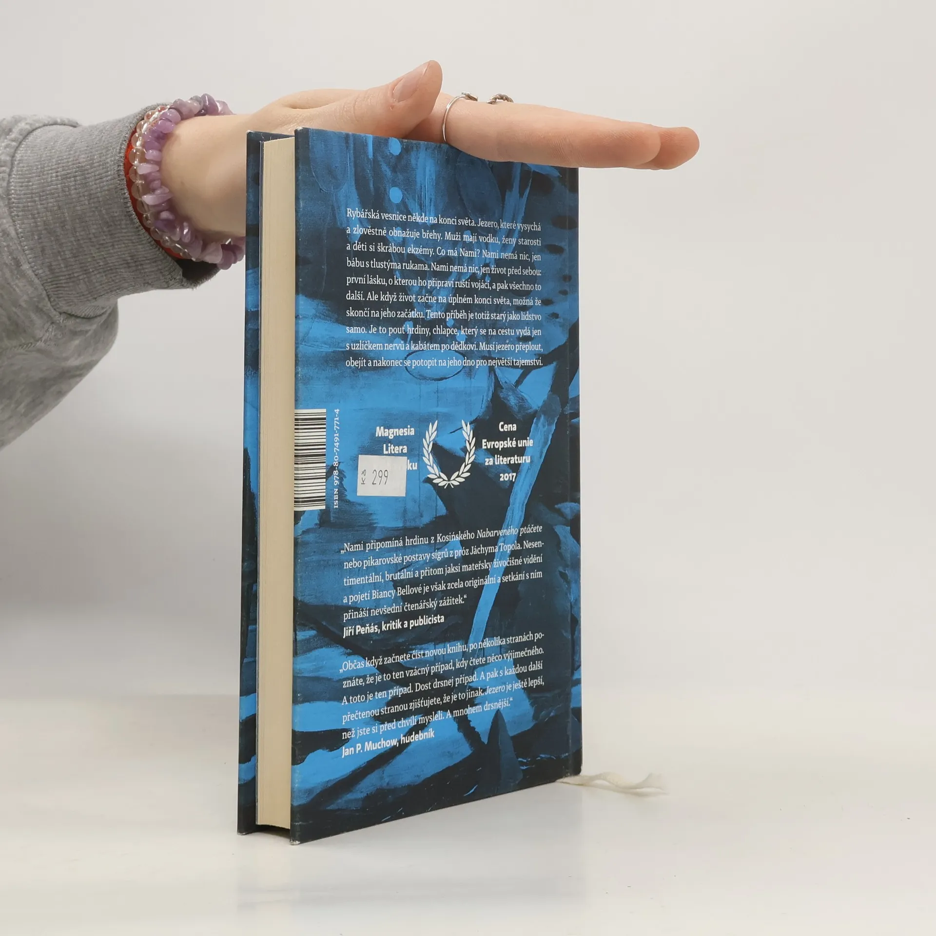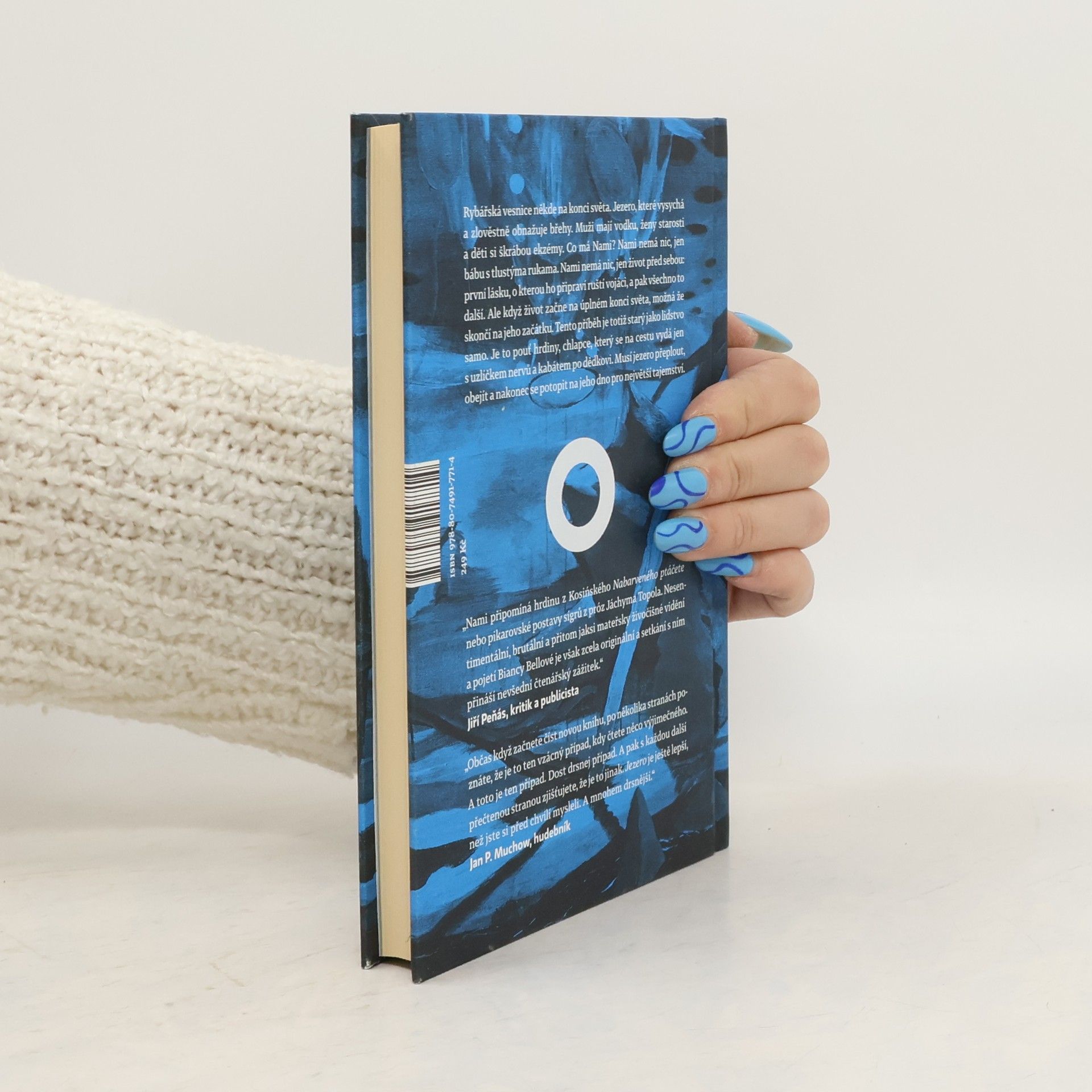 Příběh ze současnosti starý jako lidstvo samo. Rybářská vesnice někde na konci světa, u jezera, které vysychá a zlověstně vyhrnuje břehy. Muži mají vodku, ženy starosti a děti si škrábou ekzémy. Co má Nami? Nami nemá nic — jen bábu s tlustýma rukama. Nami nemá nic, jen život před sebou: první lásku, o kterou ho připraví ruští vojáci, a pak to všechno další. Raději na to nemyslet. Ale když život začne na úplném konci světa, možná že skončí na jeho začátku. Tenhle příběh je totiž starý jako lidstvo samo. Je to pouť hrdiny, chlapce, který na cestu vyráží jen s uzlíčkem nervů a kabátem po dědkovi. Musí do světa, aby hledal, a vrátit se domů, aby našel. Musí jezero přeplout, obkroužit a nakonec se potopit na jeho dno pro největší tajemství. Bianca Bellová napsala brilantní novelu, která se podobá i nepodobá jejím předchozím knihám. Zůstává syrovost vidění, přesný a úsečný jazyk. Ale tentokrát se ocitáme v úplně jiném světě, hutnějším, hlubším, osudovějším. Teprve zde jako by do sebe vše zapadlo. Jezero svými ledovými vodami svírá útroby.