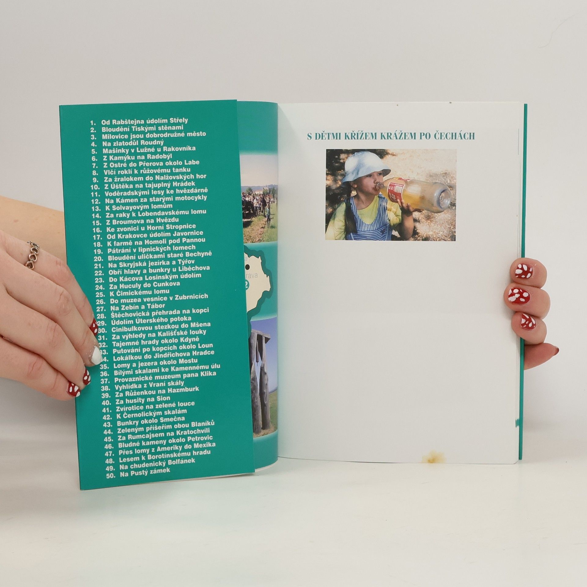 Tato knížka vám kromě tipů na padesát míst v Čechách, kde se dá zažít něco zajímavého a kde jste zatím asi ještě nebyli, nabídne i vysvětlení, proč se děti při nedělních výletech obvykle tváří tak znuděně, ... Dotisk v r. 2007 (ISBN 978-80-7200-710-3)