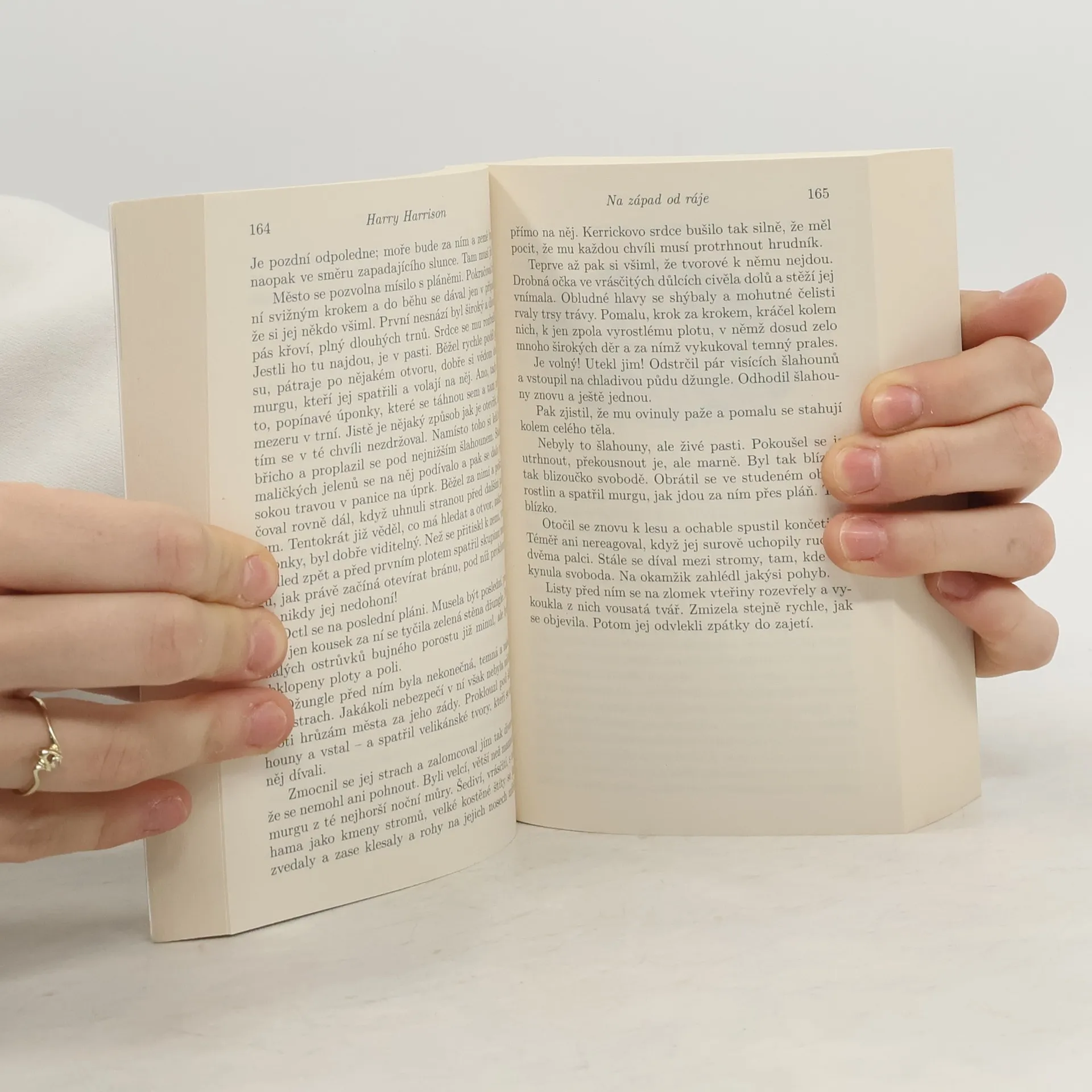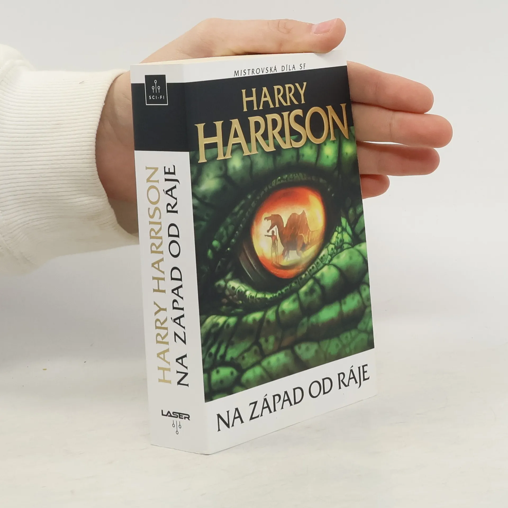 3. vydání. „Když dinosauři vládli Zemi…“ V tomto díle, vysoce hodnoceném čtenáři i kritikou, jí stále ještě vládnou. Vesmírná katastrofa, která před 65 miliony let ukončila éru praještěrů, se ve světě tohoto románu nikdy nestala. Vývoj obřích plazů pokračoval dál a vyvrcholil Yilané, nejinteligentnější a nejvyspělejší rasou na Zemi. Když jsou však její příslušníci příchodem doby ledové přinuceni překročit oceán, aby prozkoumali a kolonizovali rozsáhlý a neznámý kontinent, dojde k prudkému střetu s novým a divokým savčím plemenem, s nímž se dosud nikdy nesetkali. Tito savci chodí vzpřímeně, loví a používají primitivní kamenné nástroje – a zbraně… Na západ od ráje je jedním z nejlepších výtvorů Harryho Harrisona. Příběh titánského střetu dvou zcela odlišných kultur vtáhne čtenáře do vzrušujícího děje jako vír maelstromu.
