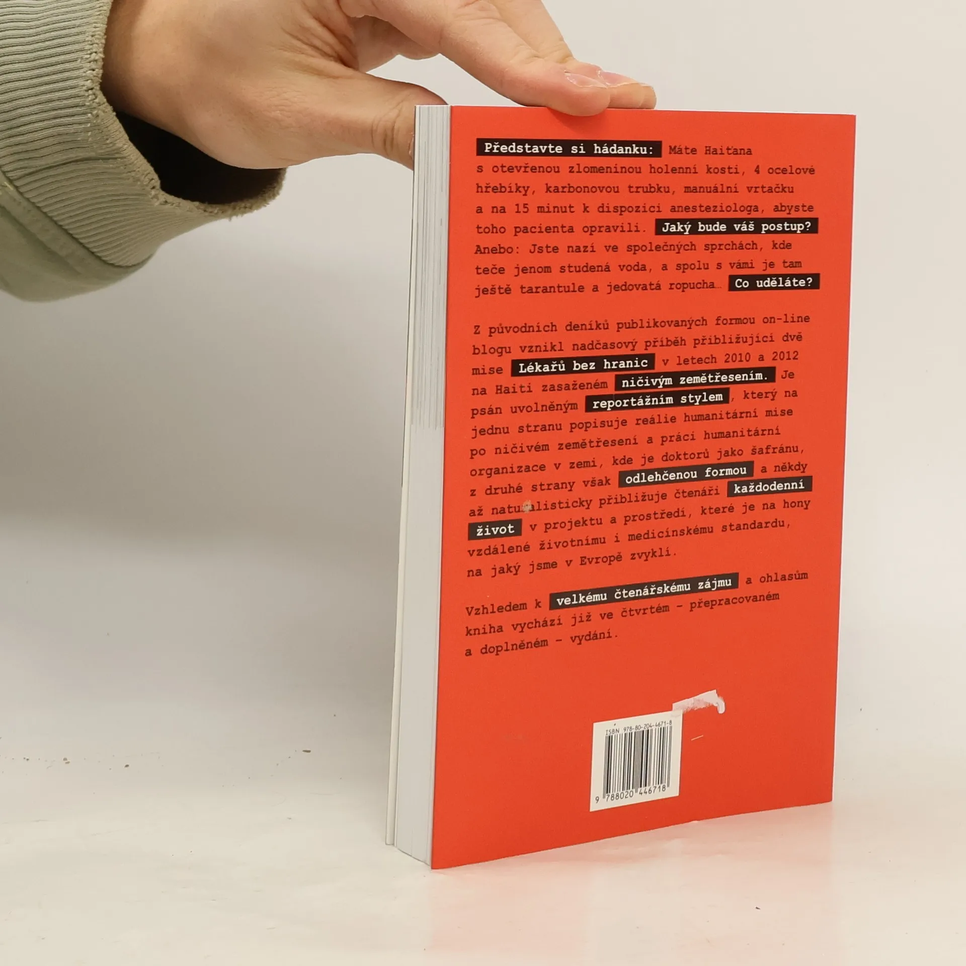 Pět měsíců českého chirurga s Lékaři bez hranic. V lednu 2010 zasáhlo Haiti ničivé zemětřesení, které připravilo o život statisíce lidí a postihlo celkově miliony obyvatel této nádherné karibské země. Mezinárodní humanitární organizace Lékaři bez hranic zasahovala na místě již od prvních hodin a během pěti měsíců po katastrofě ošetřila téměř 200 tisíc pacientů a provedla více než 11 tisíc operací. Při vší úctě k této organizaci a vážnosti situace není tento příběh výčtem suchých a většinou tragických faktů. Není ani oficiálním stanoviskem Lékařů bez hranic. Je to osobní příběh českého chirurga, který se k Lékařům bez hranic připojil a prožil s nimi své první měsíce spolupráce na Haiti v roce 2010 a 2012. Formou původně blogových příspěvků, které vznikaly bezprostředně každý den přímo na misi, reportážním způsobem s prvky černého humoru, naturalismu, nadsázky a také určité míry vulgarity autor popisuje svá pracovní i volnočasová pozorování. Vzhledem k velkému zájmu nyní kniha vychází ve čtvrtém a přepracovaném vydání.