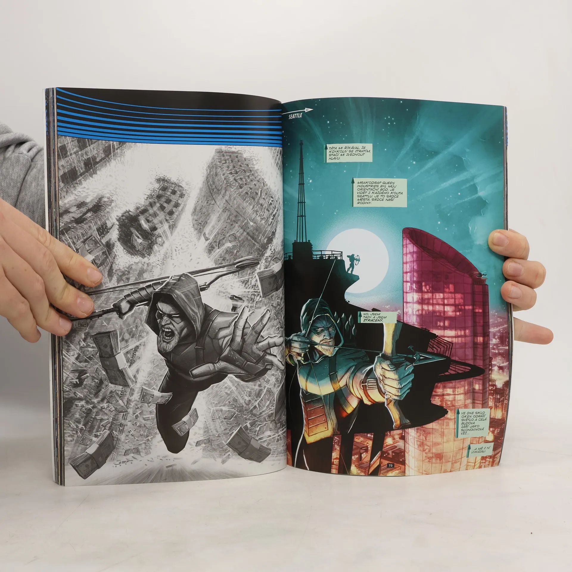 Jak můžete bojovat s elitou, když k ní sami patříte? Právě tuhle otázku obdrží Oliver po jiskrami nabitém setkání s Black Canary, z nějž je láska na první pohled. Rocková superhrdinka ho nutí pochybovat o všem, co ví o chránění nevinných. A jako by to nestačilo, zlovolná organizace s vazbami na jeho nejbližší se připravuje, že strhne Queenovo finanční impérium, zničí jeho rodinné dědictví a jeho samotného připraví o život. Může Green Arrow bez peněz i bez přátel porazit tuhle strašlivou alianci zrádců? Nebo Olivera Queena konečně dožene smrt? Šokující odpovědi vám přináší GREEN ARROW 1: SMRT A ŽIVOT OLIVERA QUEENA, řízný thriller ze scenáristického pera BENJAMINA PERCYHO (TEEN TITANS) a s nádhernými ilustracemi od OTTO SCHMIDTA (KORVAC SAGA) a JUANA FERREYRY (NEW SUICIDE SQUAD), který navazuje na velké ZNOVUZROZENÍ HRDINŮ DC! Obsahuje sešity GREEN ARROW: REBIRTH č. 1 a GREEN ARROW č. 1–5.
