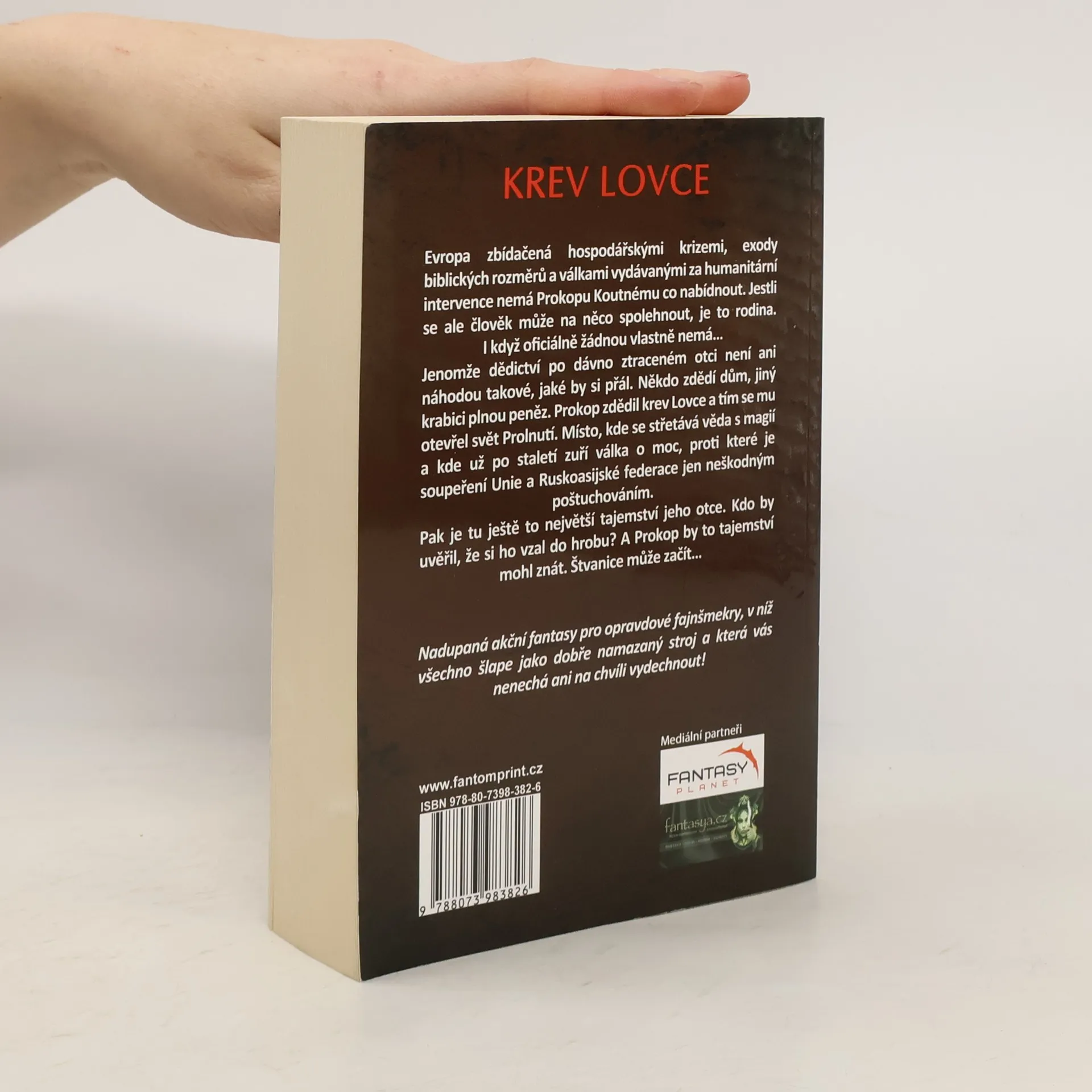 Evropa zbídačená hospodářskými krizemi, exody biblických rozměrů a válkami vydávanými za humanitární intervence nemá Prokopu Koutnému co nabídnout. Jestli se ale člověk může na něco spolehnout, je to rodina. Dokonce, i když oficiálně žádnou nemá. Jenomže dědictví po dávno zapomenutém otci není ani náhodou takové, jaké by si přál. Někdo zdědí dům, jiný krabici plnou peněz. Prokop zdědil krev Lovce a otevřel se mu tak svět Prolnutí, místo, kde se střetává svět vědy se světem magie a kde už po staletí zuří válka o moc, proti které je soupeření Unie a Ruskoasijské federace jen neškodným poštuchováním. Pak je tu ještě to největší tajemství jeho otce. Kdo by uvěřil, že si ho vzal do hrobu? A Prokop by to tajemství mohl znát. Štvanice může začít…
