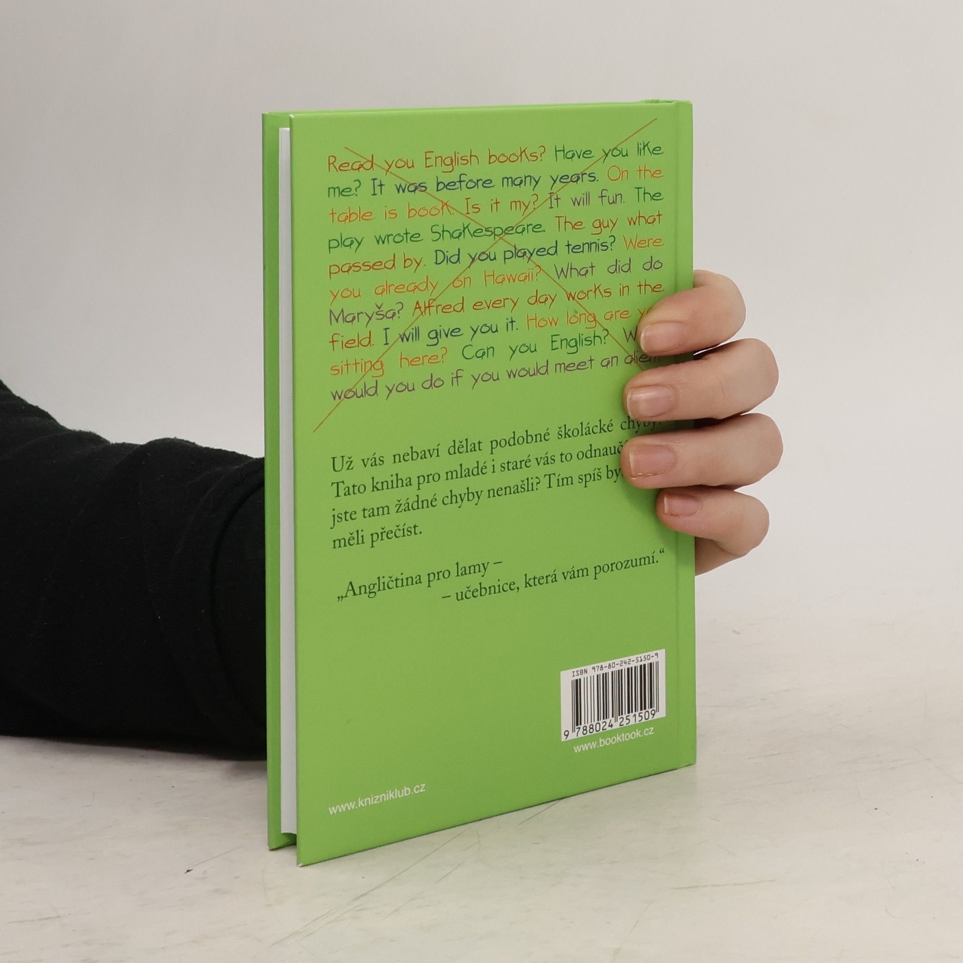 Angličtinář mnohaletou praxí napsal knížku o anglickém jazyce, která je vtipná, a přitom poučná. Oslovit může nejen věčné začátečníky, ale i studenty, kteří mají potíže s tradičními učebnicemi nebo si prostě chtějí něco ujasnit. V krátkých kapitolkách je formou vyprávění a příběhů s mnoha příklady podán ucelený přehled gramatických jevů od úrovně A1 po B2 s důrazem na obvyklé chyby českých studentů. Pro čtenáře od 12 let.