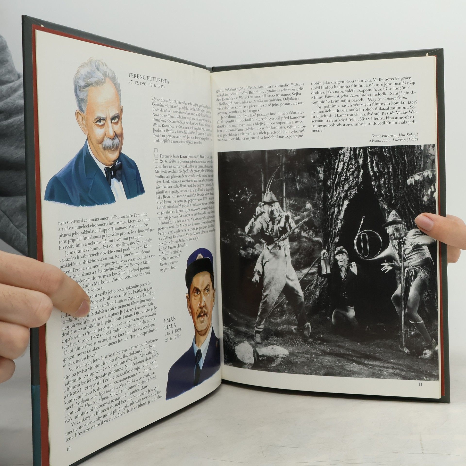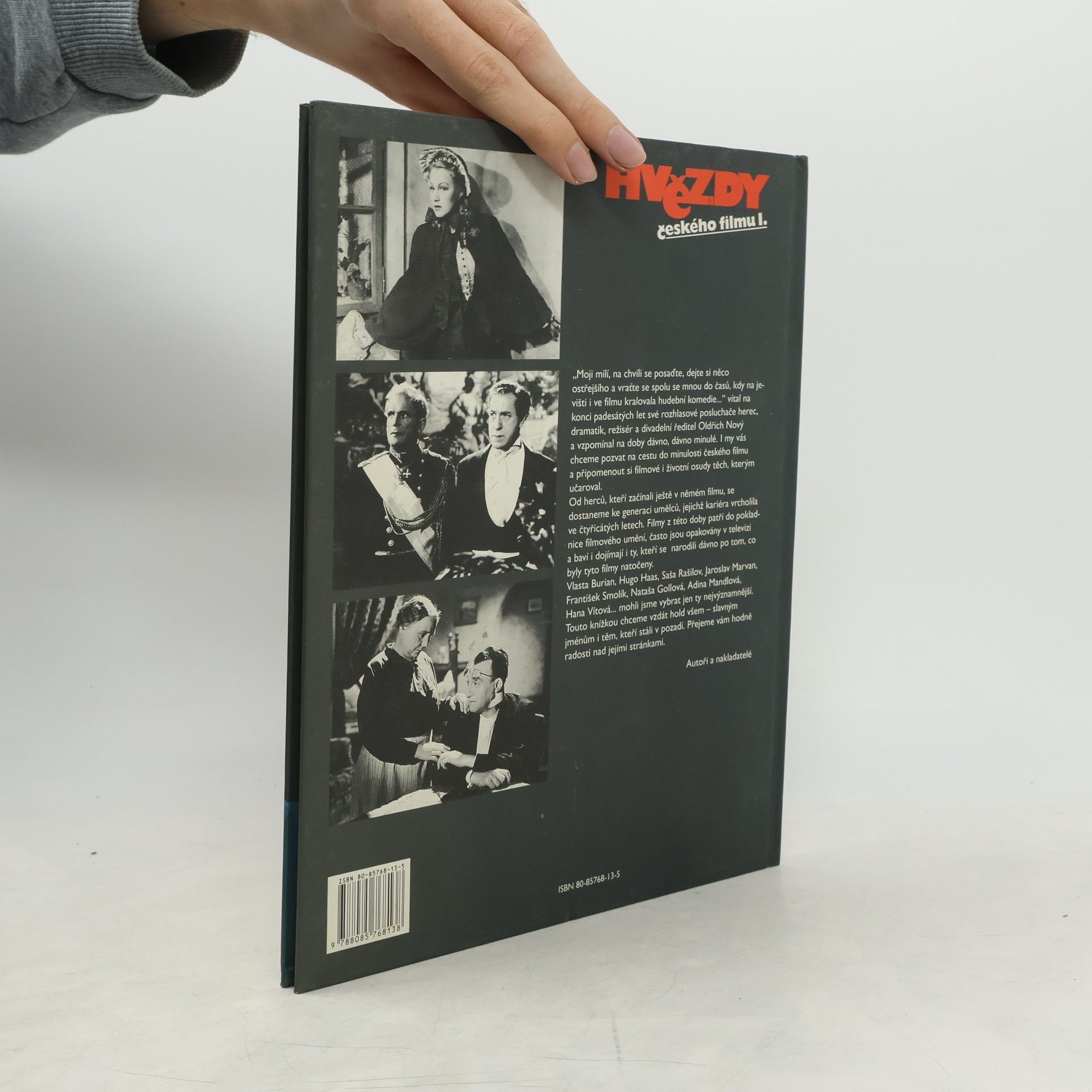 První díl edice přibližuje počátky českého filmu na osudech jeho nejslavnějších hereckých představitelů. Najdeme tu všechny herecké hvězdy předválečného filmu počínaje Josefem Švábem Malostranským, Ferencem Futuristou či Emanem Fialou, představuje se tu legendární "král komiků" Vlasta Burian či slavná herecká dvojice Voskovec - Werich. Zasvěcený a poutavý text autorské dvojice Václav Merhaut - Karel Čáslavský je doplněn malovanými portréty, kromě toho je v knize mnoho fotografií z nejznámějších filmů.