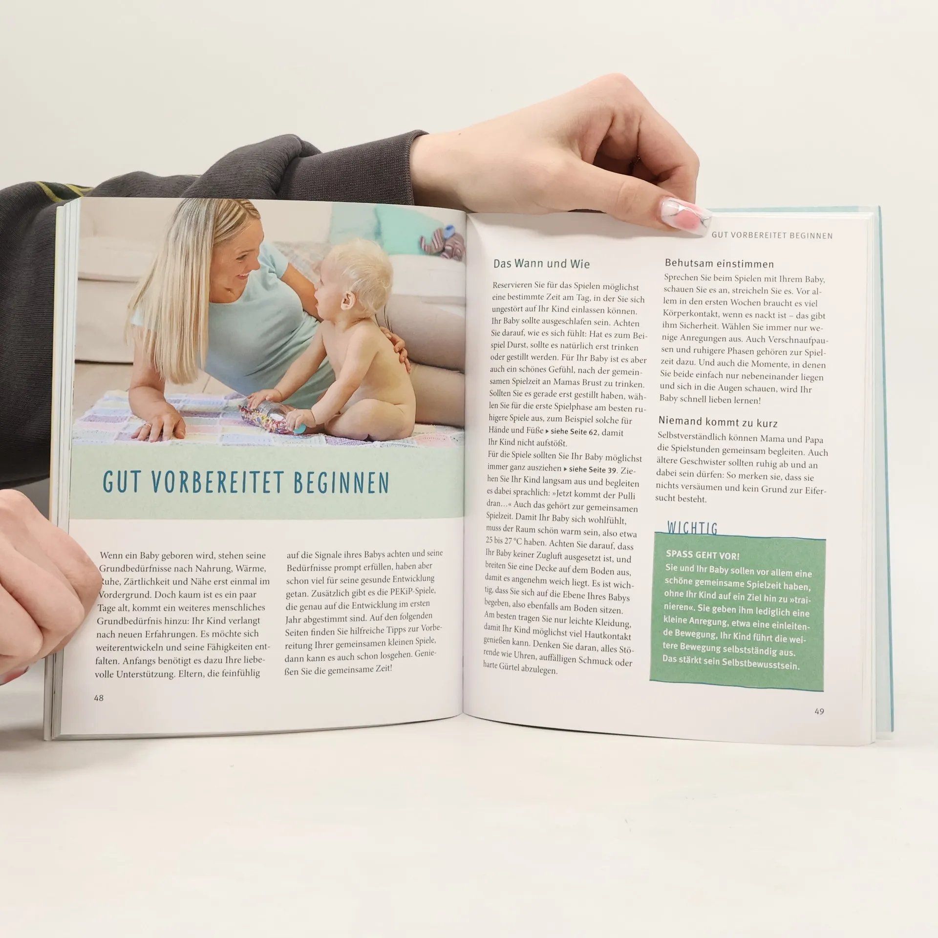 Nie wieder entwickelt sich ein Kind so rasant wie im ersten Lebensjahr! Mit PEKiP, dem Prager-Eltern-Kind-Programm, können Eltern diese Entwicklung ihres Babys optimal unterstützen und eine gute und sichere Bindung aufbauen. Die über 100 PEKiP-Spiele und -anregungen sind immer nach Altersgruppen geordnet, klar beschrieben und mit zahlreichen Fotos anschaulich illustriert: So können Sie mit Ihrem Baby auch zu Hause eine wunderschöne gemeinsame Spielzeit genießen und gleichzeitig seine Entwicklung gezielt fördern. Zahlreiche Anleitungen für sinnvolles Spielzeug zum Selbstbasteln runden das Buch ab.