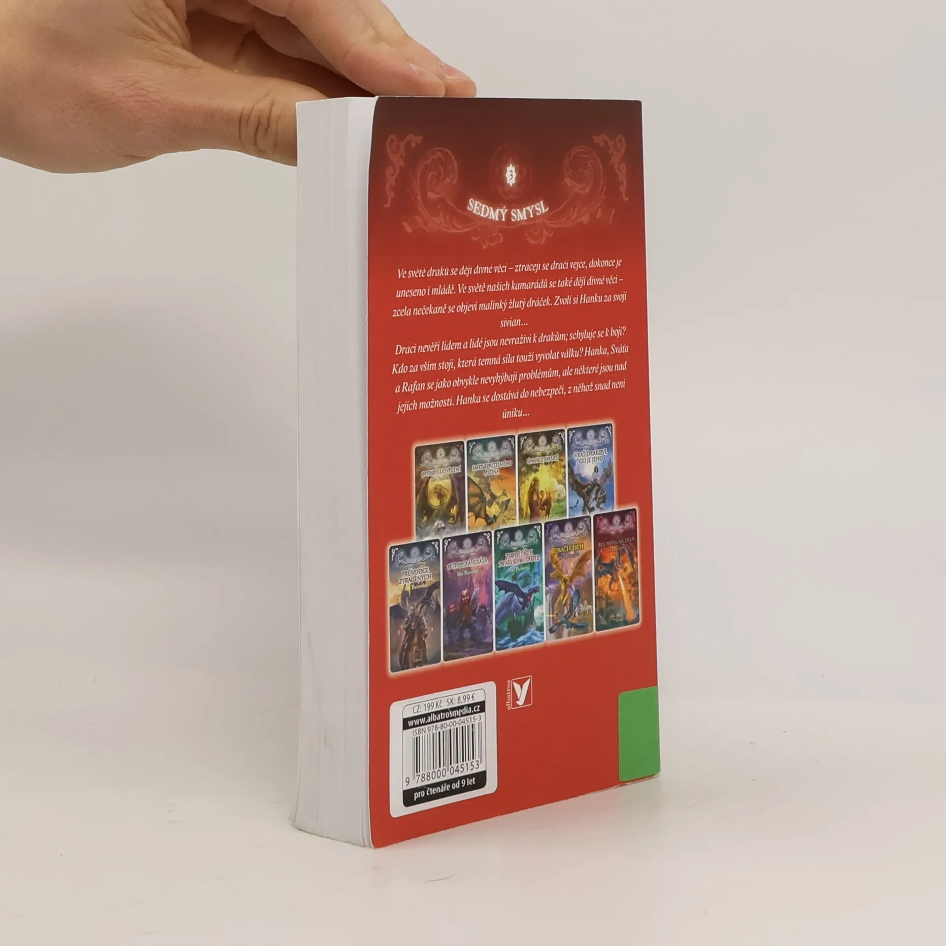 Třetí kniha série Sedmý smysl. Ve světě draků se dějí divné věci - ztrácejí se dračí vejce, dokonce je uneseno i dračí mládě. Ve světě našich kamarádů se také dějí divné věci - zcela nečekaně se objeví malinký žlutý dráček, o němž nikdo neví, odkud pochází. Zvolí si Hanku za svoji sivian... Draci nevěří lidem a lidé jsou nevraživí k drakům; schyluje se k boji? Kdo za vším stojí, která temná síla touží vyvolat válku? Hanka, Sváťa a Rafan se jako obvykle nevyhýbají problémům, ale některé jsou nad jejich možnosti. Hanka se dostává do nebezpečí, z něhož snad není úniku... Naštěstí jsou s nimi i tentokrát nejen chápaví a mocní dospělí z rodu lidí, ale také vnímaví přátelé jednorožci, na scéně se opět zjevuje jejich věrný džin. Pomohou zklidnit situaci? Co se stane s Hankou?