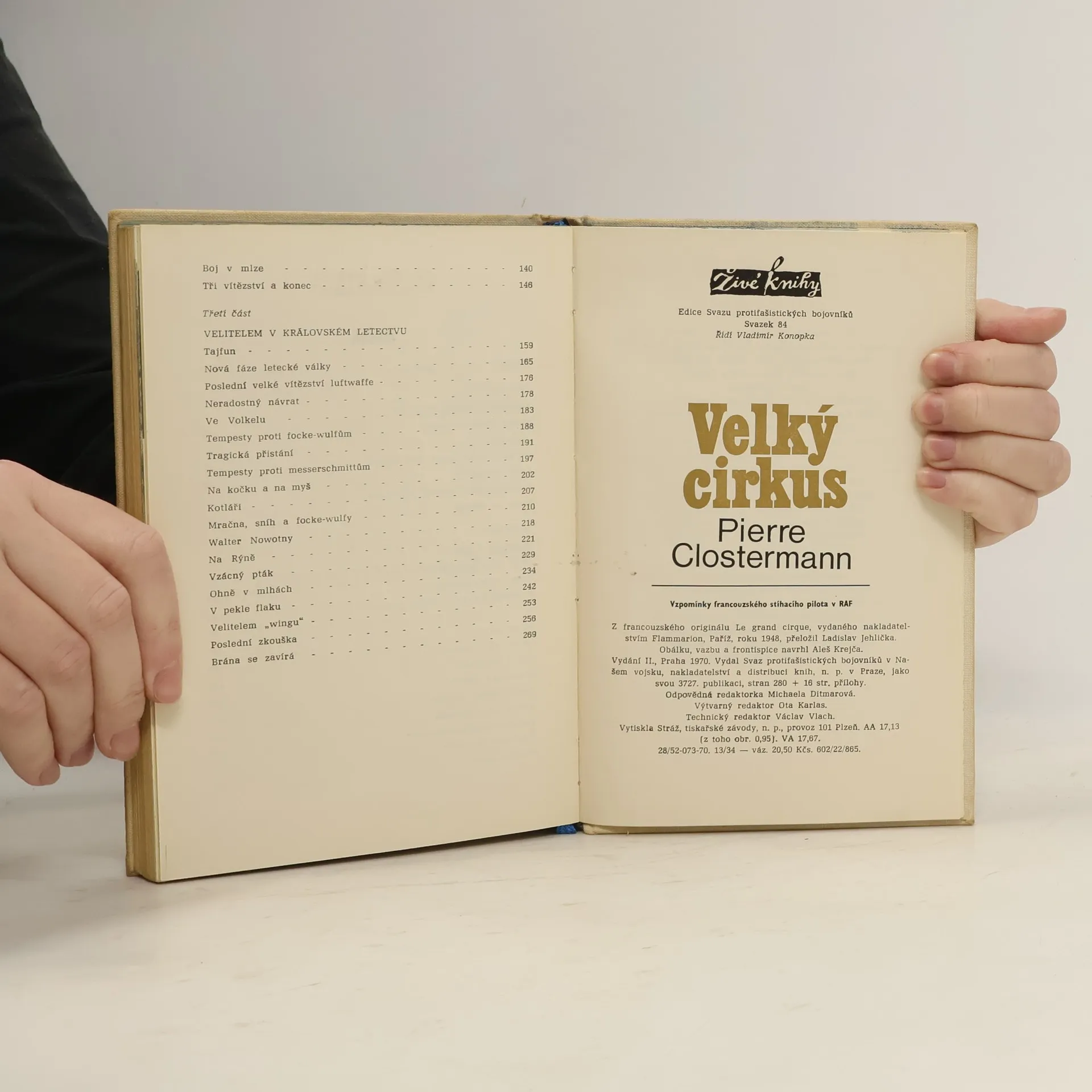 Pierre Clostermann byl jedním z těch, kteří hned na první výzvu generála de Gaulla přišli do Anglie, aby po ztracené bitvě vyhráli válku, nebo přinejmenším zachránili čest. Ve čtyřiadvaceti letech byl nejúspěšnějším francouzským stíhačem druhé světové války. Ve své knize vzpomínek vypráví dramatickou historii oněch let, kdy život každou chvíli visel na vlásku. Čtenáře zaujmou strhující popisy bojových akcí, kdy na duševní síle i technické dovednosti v jediné vteřině závisí všechno, a kamarádství mužů, kteří se dovedou jeden pro druhého obětovat bez jediného zbytečného slova.