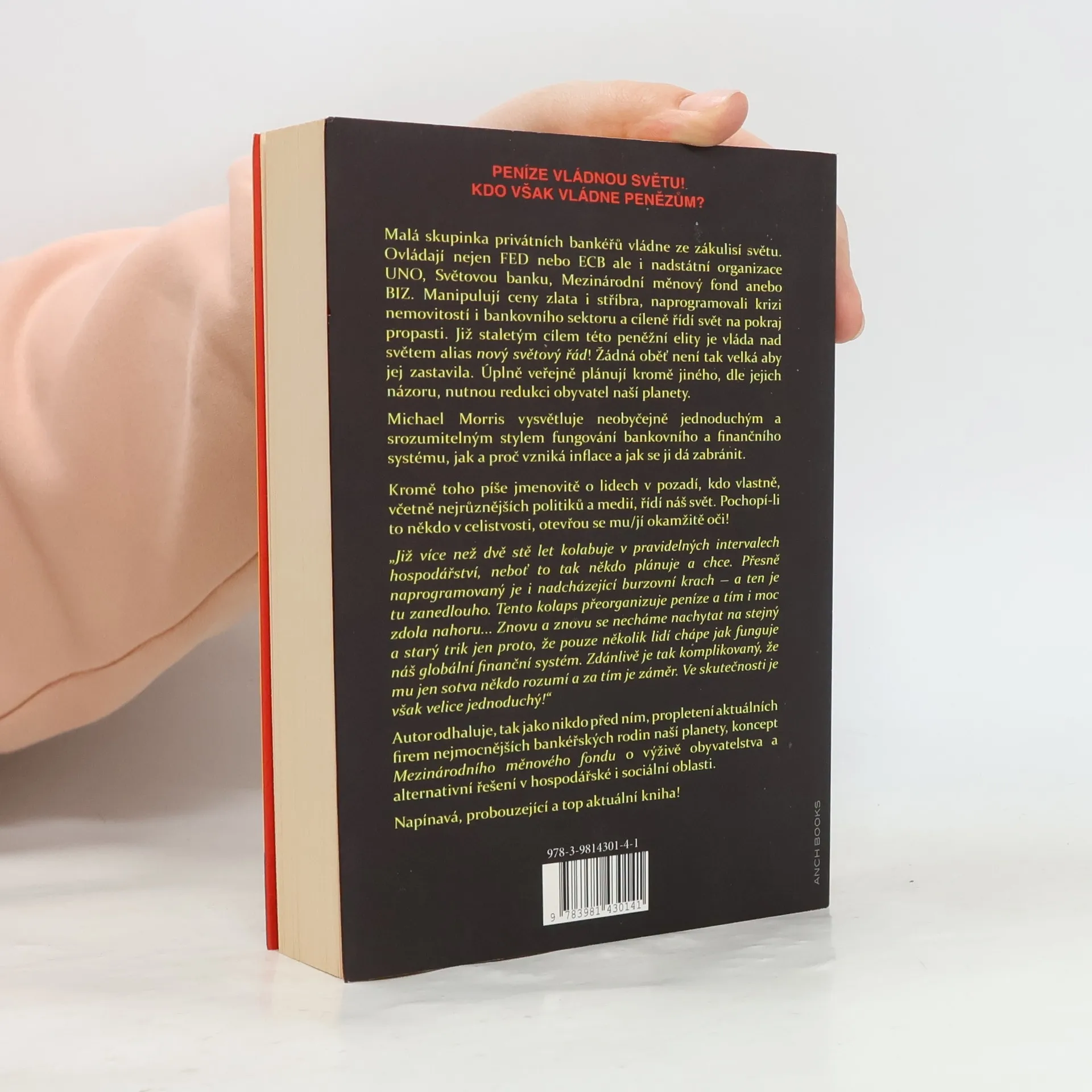 Peníze vládnou světu! Kdo však vládne penězům? Malá skupinka privátních bankéřů vládne ze zákulisí světu. Ovládají nejen FED nebo ECB ale i nadstátní organizace UNO, Světovou banku, Mezinárodní měnový fond anebo BIZ. Manipulují ceny zlata i stříbra, naprogramovali krizi nemovitostí i bankovního sektoru a cíleně řídí svět na pokraj propasti. Již staletým cílem této peněžní elity je vláda nad světem alias nový světový řád! Žádná oběť není tak velká aby jej zastavila. Úplně veřejně plánují kromě jiného, dle jejich názoru, nutnou redukci obyvatel naší planety.
