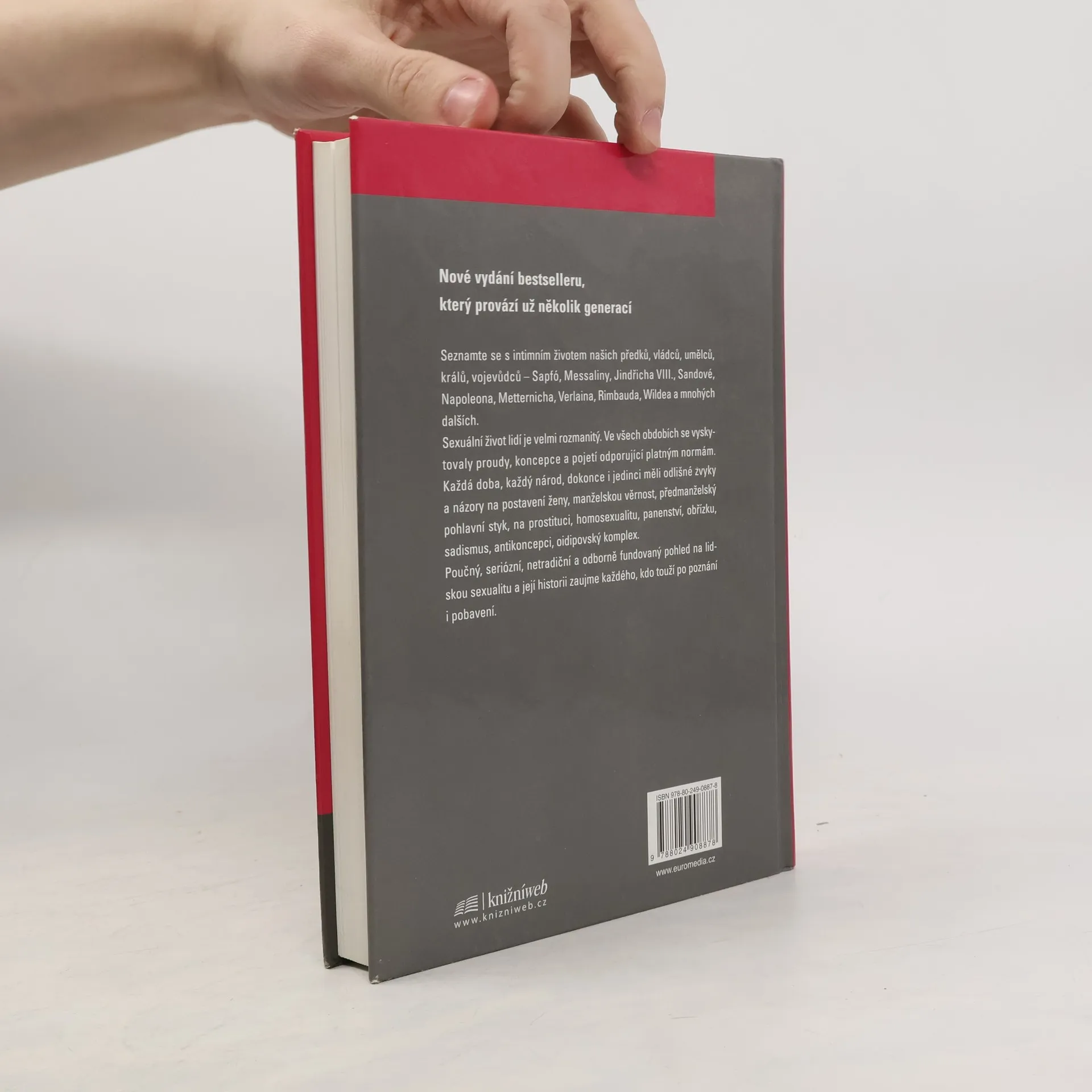 Nové vydání bestselleru, který seznamuje čtenáře s intimním životem našich předků, vládců, umělců, králů, vojevůdců - Sapfó, Messaliny, Jindřicha VIII., Sandové, Napoleona, Metternicha, Verlaina, Rimbauda, Wildea a mnohých dalších. Sexuální život lidí je velmi rozmanitý. Ve všech obdobích se vyskytovaly proudy, koncepce a pojetí odporující platným normám. Každá doba, každý národ, dokonce i jedinci měli odlišné zvyky a názory na postavení ženy, manželskou věrnost, předmanželský pohlavní styk, na prostituci, homosexualitu, panenství, obřízku, sadismus, antikoncepci, oidipovský komplex. Poučný, seriózní, netradiční a odborně fundovaný pohled na lidskou sexualitu a její historii zaujme každého, kdo touží po poznání i pobavení.