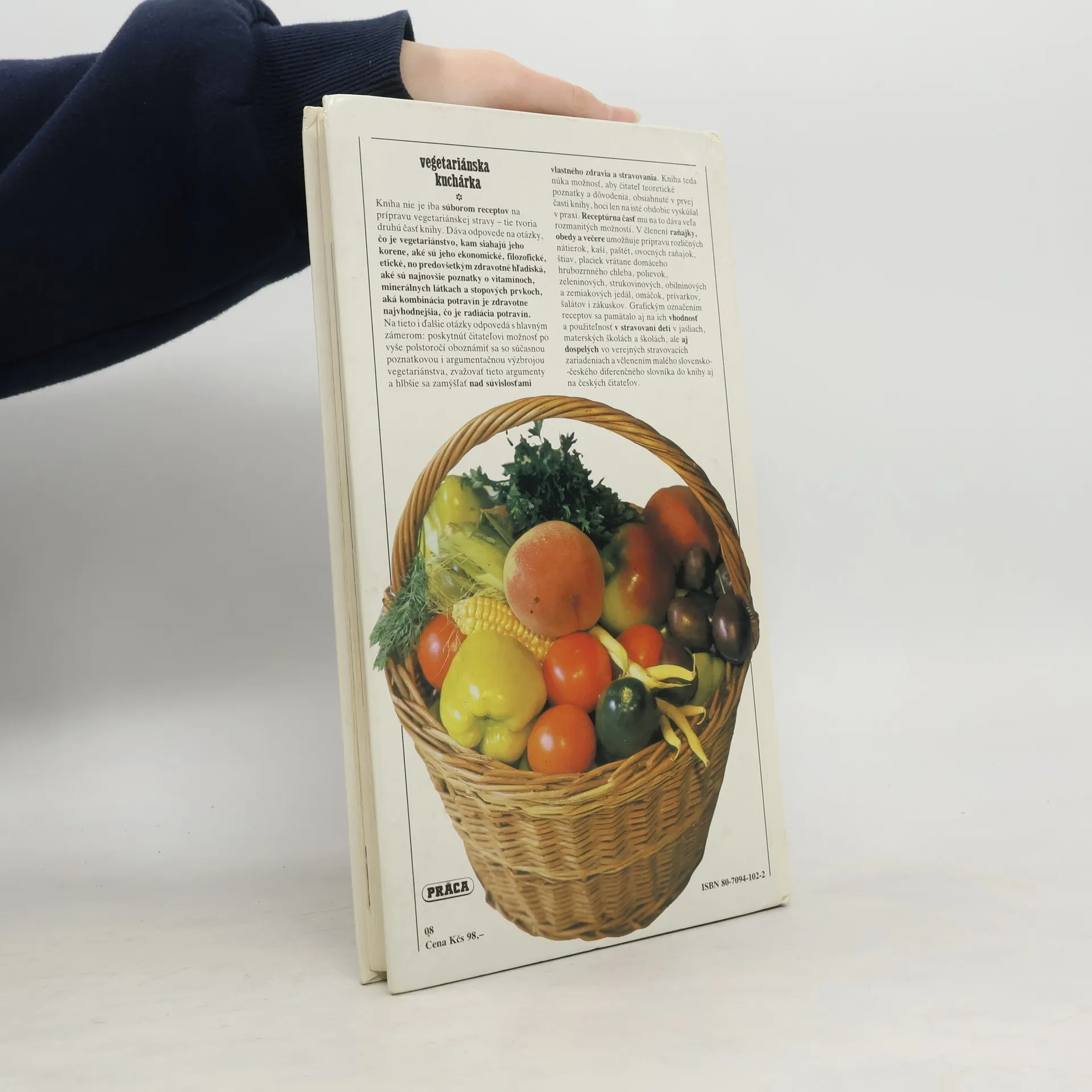 300 receptů, vegetariánství v teorii a v praxi. Kniha není jen souborem receptů na přípravu vegetariánské stravy - ty tvoří druhou část knihy. Dává také odpovědi na otázky co je vegetariánství, kam sahají jeho kořeny, jaká jsou jeho ekonomická, filozofická, etická, ale především zdravotní hlediska, jaké jsou nejnovější poznatky o vitamínech, minerálních látkách a stopových prvcích, jaká kombinace potravin je zdravotně nejvhodnější, co je radiace potravin. Na tyto a další otázky odpovídá s hlavním záměrem: poskytnout čtenáři možnost seznámit se po víc než půlstoletí se současnou poznatkovou a argumentační výzbrojí vegetariánství, zvažovat tyto argumenty a hlouběji se zamýšlet nad souvislostmi mezi vlastním zdravím a stravováním. Kniha tedy nabízí čtenáři možnost vyzkoušet v praxi, třeba jen na určité období, teoretické poznatky a odůvodnění, jež jsou první části knihy. Recepturní část mu k tomu poskytuje mnoho rozmanitých možností. Členění na snídaně, obědy a večeře umožňuje uvést recepty na přípravu různých pomazánek, kaší, paštik, ovocných snídaní, šťáv, placek, také domácího celozrnného chleba, polévek, zeleninových, luštěninových, obilovinových a bramborových jídel, omáček, zadělávaných pokrmů, salátů a zákusků. Grafickým označením receptů se pamatovalo i na vyjádření jejich vhodnosti a použitelnosti v stravování dětí v jeslích, mateřských školách, ale i dospělých ve veřejných stravovacích zařízeních.