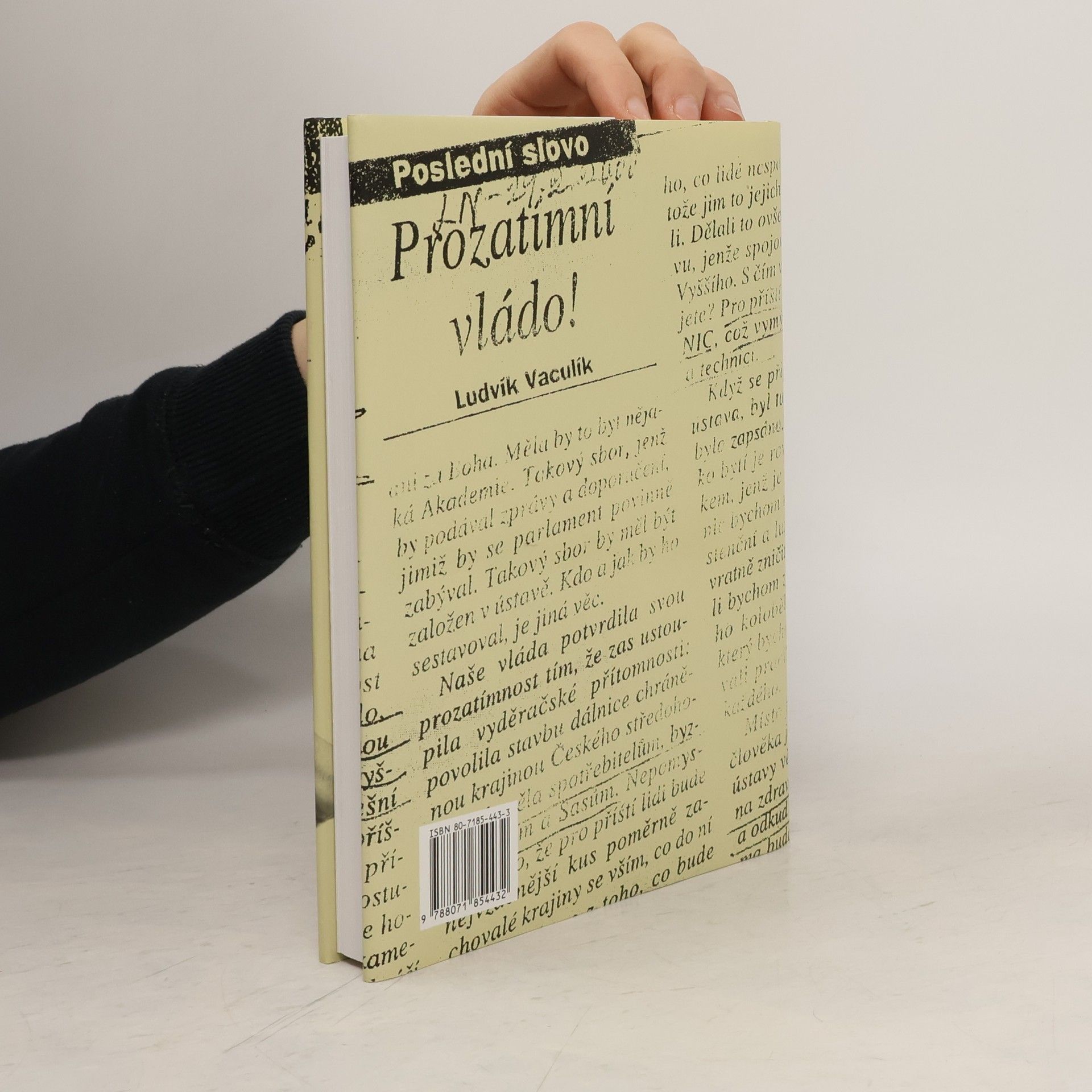 Výbor z fejetonů Výběr z fejetonů, které vycházejí pod názvem Poslední slovo v Lidových novinách. Aktuální události či momentální problémy společnosti sloužívají autorovi k zamyšlení nad obecnějšími jevy společenského dění doma i ve světě. Čteme-li tyto fejetony zpětně v celku, zjistíme, že jsou nejen stále živé, třebaže se týkají věcí již minulých, ale zřetelněji také pocítíme - při rozmanitosti, prolínání a opakování témat -, především onu už pro Vaculíka příslovečnou nekonvenčnost, originalitu myšlení.