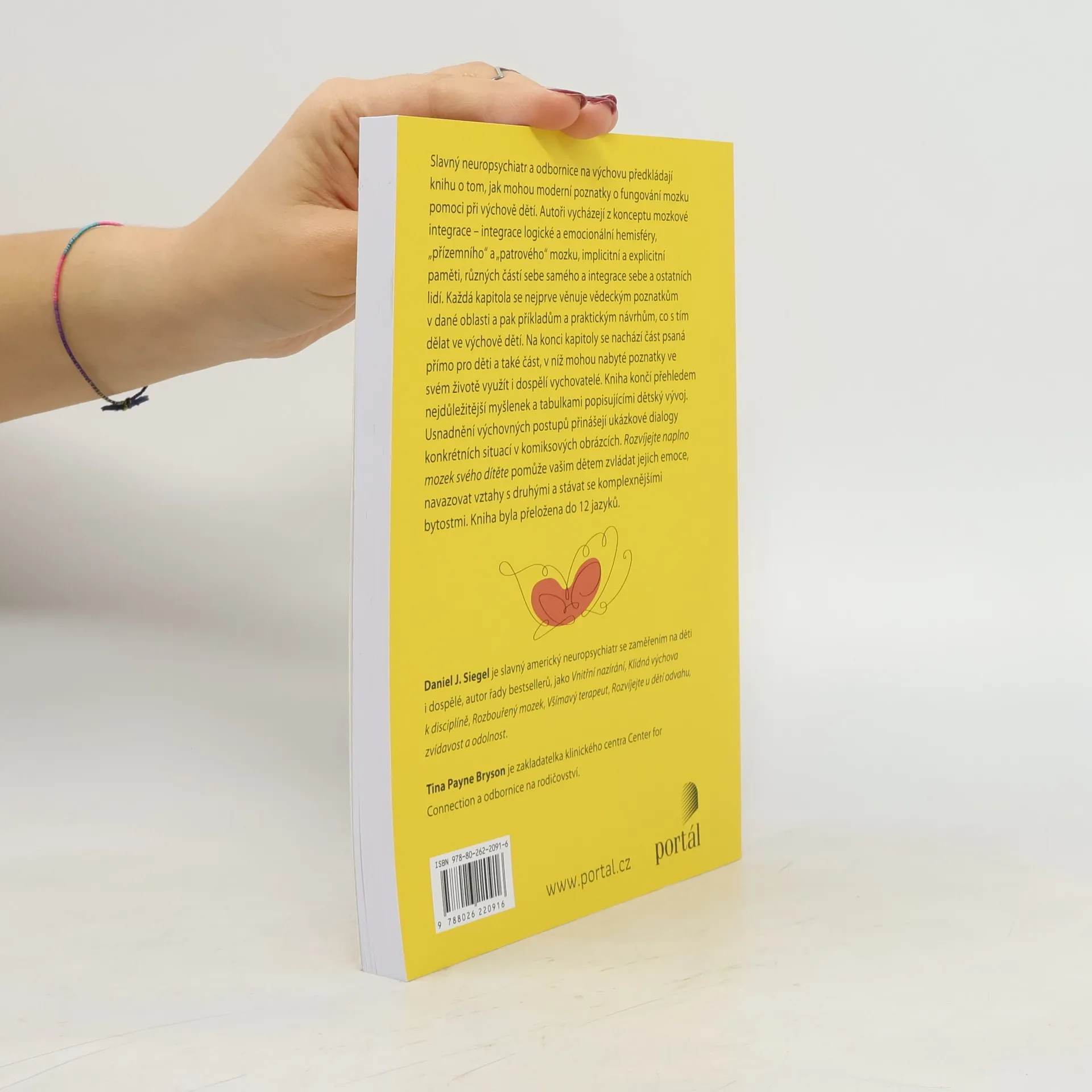 Slavný neuropsychiatr a odbornice na výchovu předkládají knihu o tom, jak mohou moderní poznatky o fungování mozku pomoci při výchově dětí. Autoři vycházejí z konceptu mozkové integrace – integrace logické a emoční hemisféry, „přízemního“ a „patrového“ mozku, vzpomínek, různých části sebe samého, sebepojetí s vnímáním druhých lidí. Každá kapitola se nejprve věnuje vědeckým poznatkům v dané oblasti a pak příkladům a praktickým návrhům, co s tím dělat ve výchově dětí. Na konci kapitoly se nachází část psaná přímo pro děti a také část, v níž mohou nabyté poznatky ve svém životě využít i dospělí vychovatelé. Kniha končí přehledem nejdůležitější myšlenek a tabulkami popisujícími přehledně dětský vývoj. Usnadnění výchovných postupů přinášejí ukázkové dialogy konkrétních situací v komiksových obrázcích. Rozvíjejte naplno mozek svého dítěte vašim dětem pomůže zvládat jejich emoce, navazovat vztahy s druhými a stávat se komplexnějšími bytostmi. Kniha byla přeložena do 12 jazyků. Daniel J. Siegel je slavný americký neuropsychiatr se zaměřením na děti i dospělé, autor řady bestsellerů, jako Vnitřní nazírání, Klidná výchova k disciplíně, Rozbouřený mozek, Všímavý terapeut, Rozvíjejte u dětí odvahu, zvídavost a odolnost. Tina Payne Bryson je zakladatelka klinického centra Center for Connection a odbornice na rodičovství.