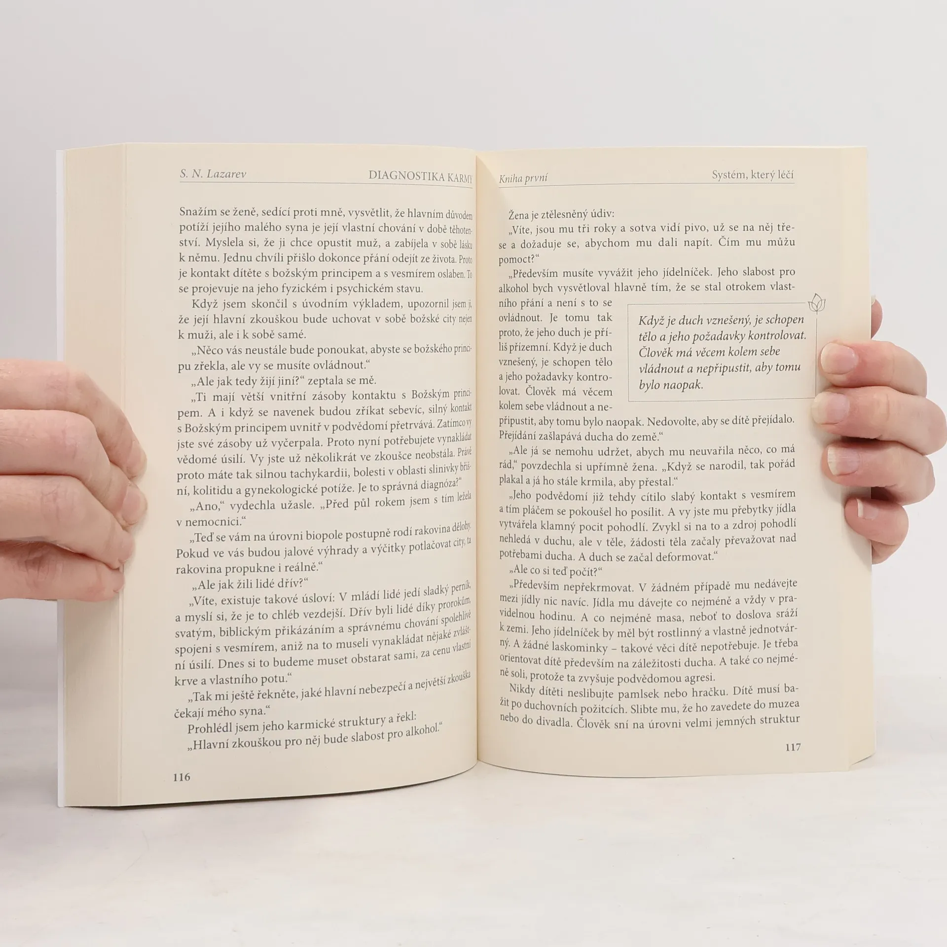 Odhalení příčin nemocí Výsledky výzkumů Sergeje Lazareva v bioenergetice jsou dány dvaceti lety práce v této oblasti, filosofickým pochopením světa a také přesvědčivým praktickým ověřením všech základních filosofických a teoretických předpokladů. Autor se pokusil odhalit příčiny neutěšeného fyzického stavu lidí, ukázat možnosti a způsoby jeho změny prostřednictvím korekcí jemných struktur pole, formulovat, co je to gramotný vztah k bioenergetice a k rozvoji schopností a možností člověka. Základem proměny našeho ducha, naší duše se musí stát pochopení světa, který nás obklopuje, a tvrdá sebekázeň - to je dnes bezpodmínečný předpoklad přežití člověka jako druhu. V knize jsou poskytnuty informace nezbytné k tomu, abychom si uvědomili složitost problémů, které dnes vyvstaly před každým člověkem. Protože v posledních letech se značně vyostřily všechny energetické procesy na Zemi a to, čemu říkáme v bioenergetice karma, tedy zákon odplaty, funguje nesrovnatelně rychleji než dřív. Mnozí čtenáři se v knize setkají s velmi nečekanými a pro ně zcela novými informacemi, které budou připomínat scény ze světa sci-fi. Sergej Lazarev je však badatel, a i kdyby se vám zdály uvedené závěry a fakta co nejfantastičtější, je to naše dnešní skutečnost, mnohokrát prověřená a potvrzená výsledky jeho práce.