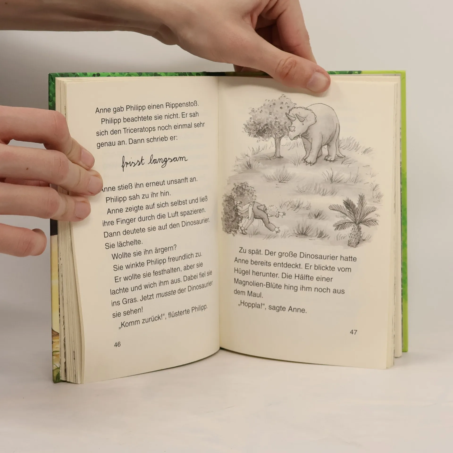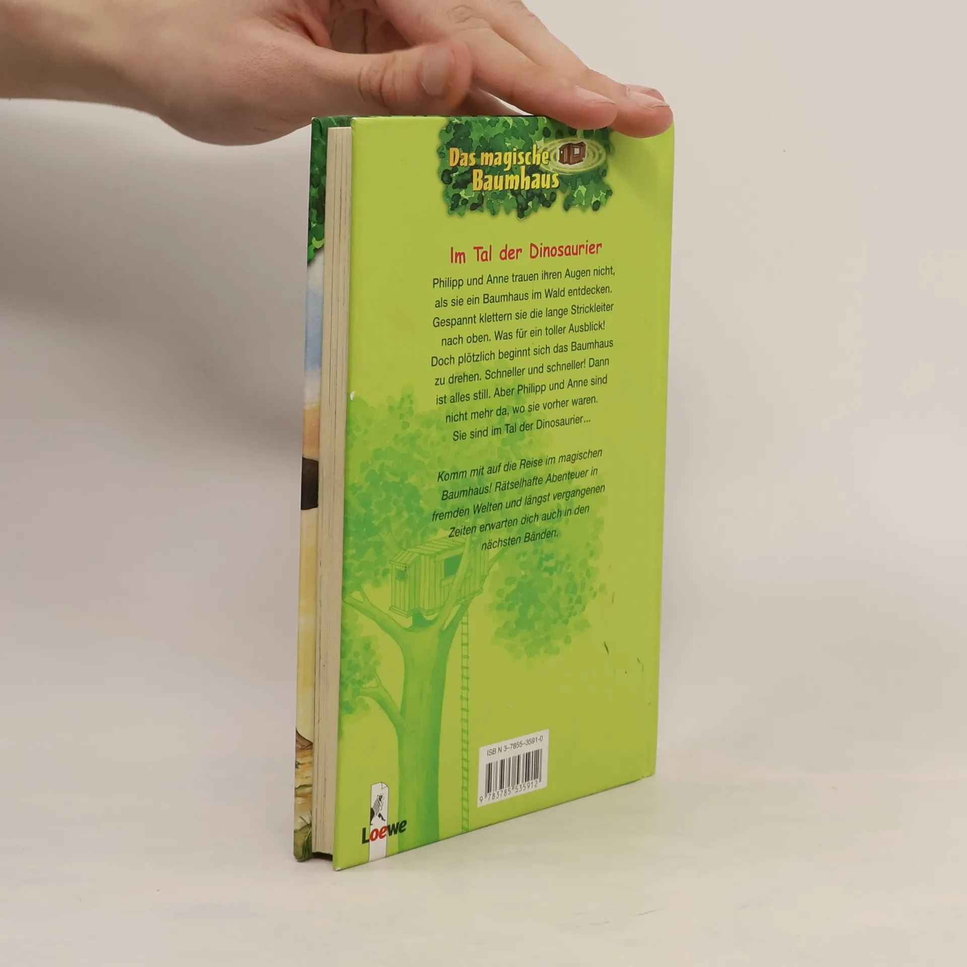 Philipp und Anne trauen ihren Augen nicht, als sie im Wald ein verborgenes Baumhaus entdecken. Gespannt klettern sie die lange Strickleiter nach oben. Was für ein toller Ausblick! Doch plötzlich beginnt sich das Baumhaus zu drehen. Schneller und schneller! Dann ist alles still. Aber Philipp und Anne sind nicht mehr da, wo sie vorher waren. Sie sind im Tal der Dinosaurier ...