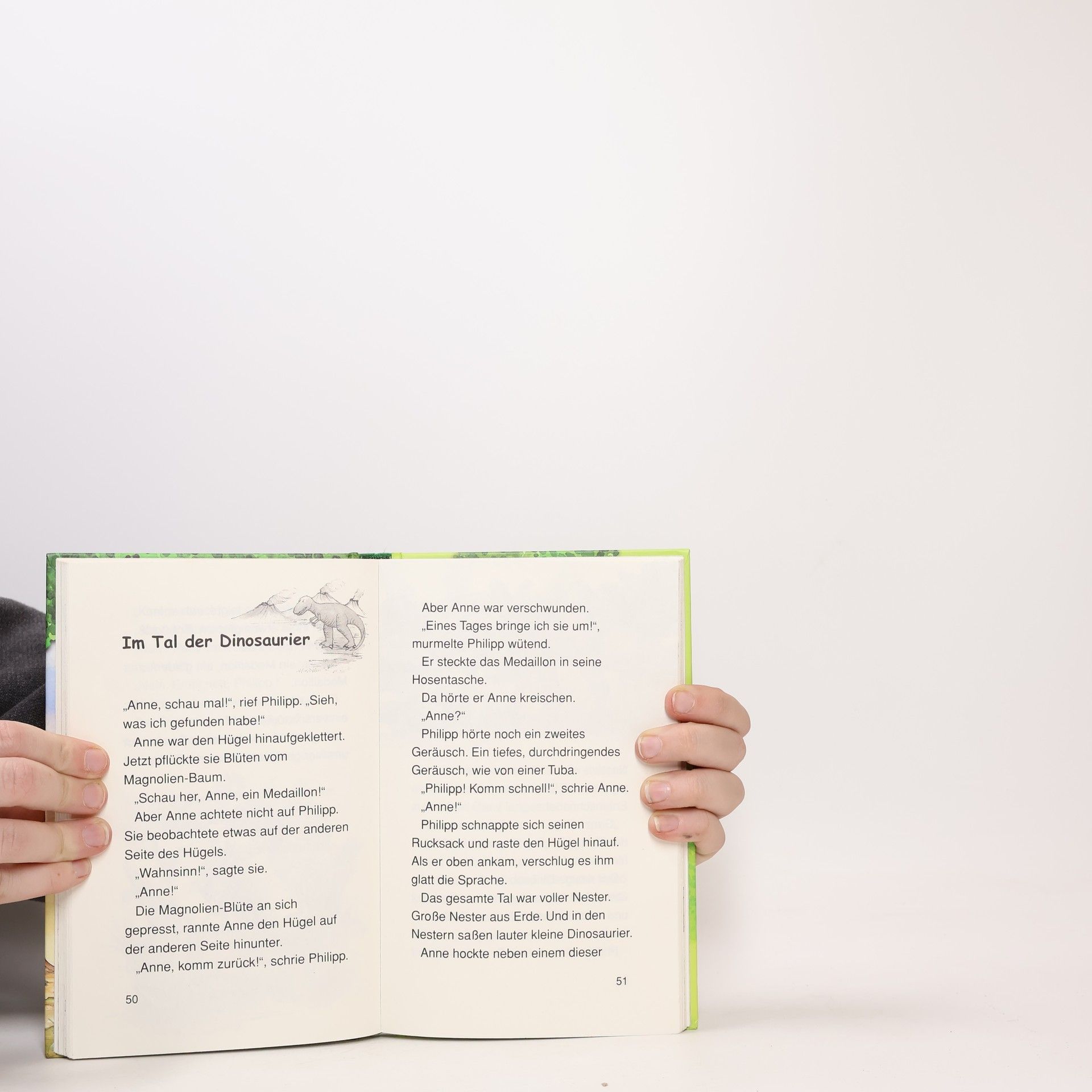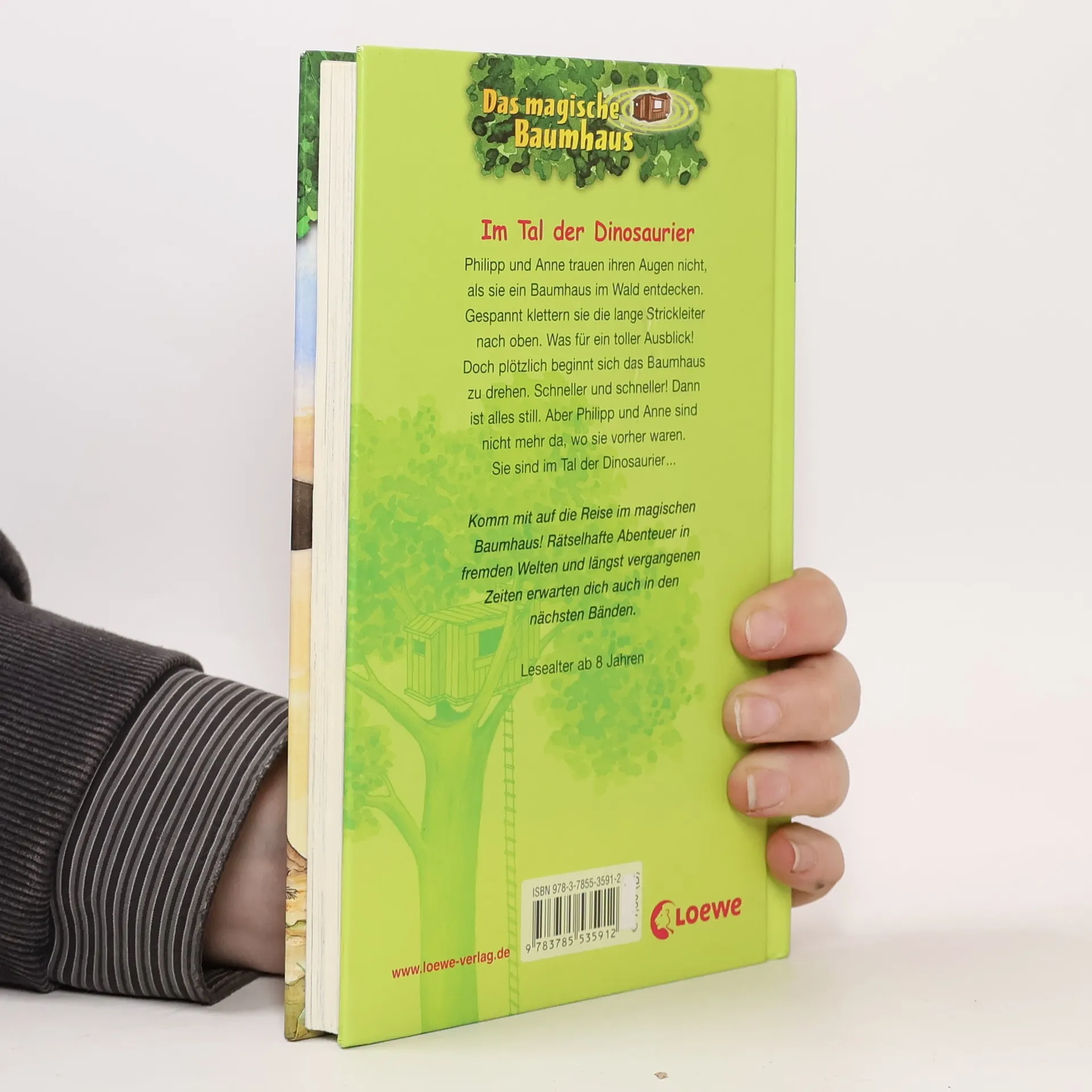 Philipp und Anne trauen ihren Augen nicht, als sie im Wald ein verborgenes Baumhaus entdecken. Gespannt klettern sie die lange Strickleiter nach oben. Was für ein toller Ausblick! Doch plötzlich beginnt sich das Baumhaus zu drehen. Schneller und schneller! Dann ist alles still. Aber Philipp und Anne sind nicht mehr da, wo sie vorher waren. Sie sind im Tal der Dinosaurier ...