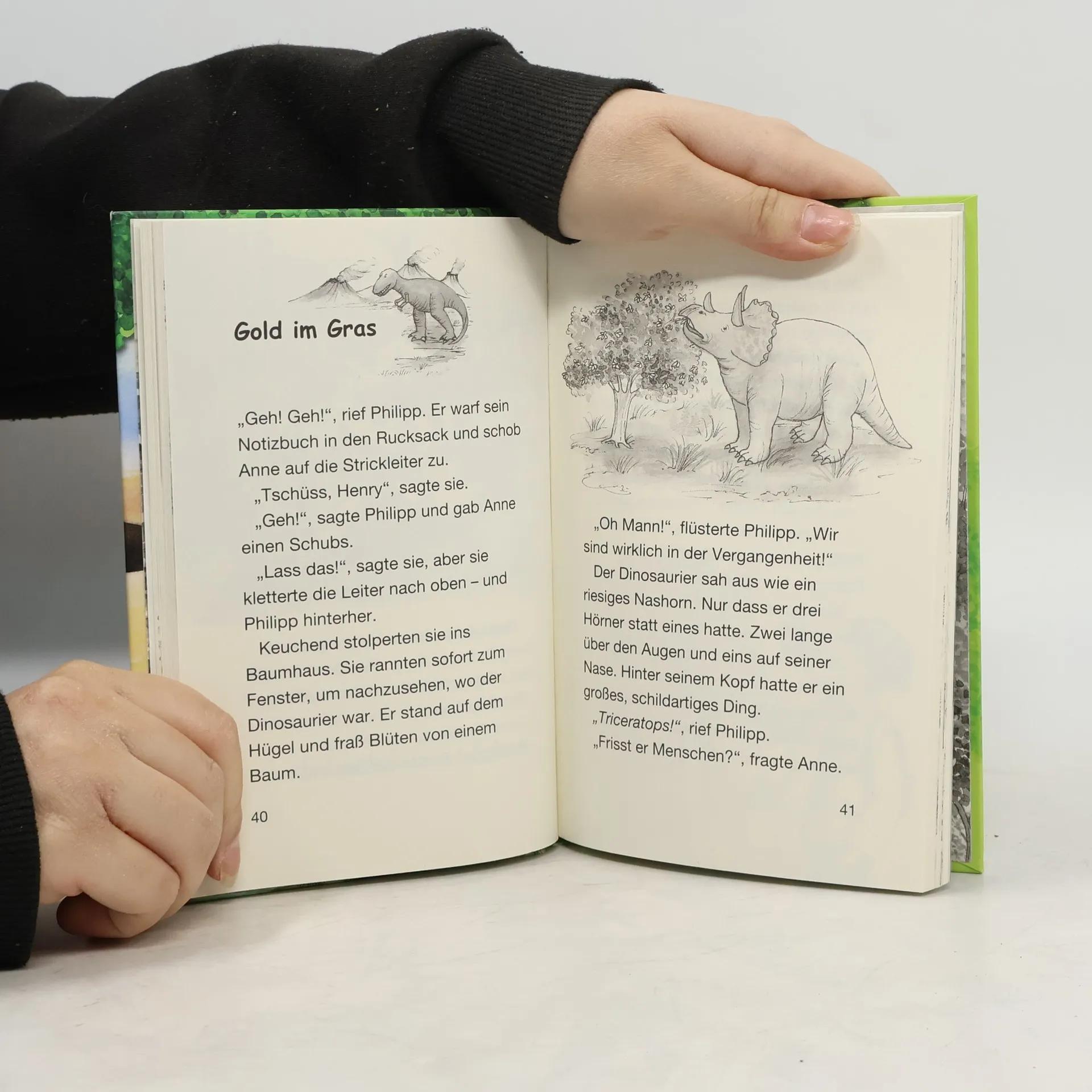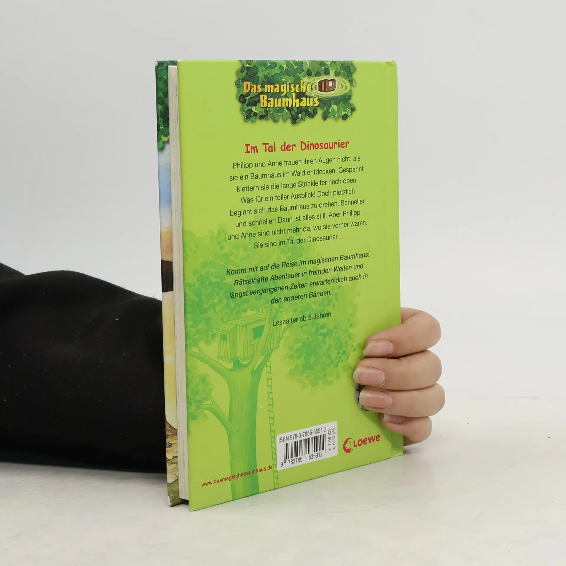 Philipp und Anne trauen ihren Augen nicht, als sie im Wald ein verborgenes Baumhaus entdecken. Gespannt klettern sie die lange Strickleiter nach oben. Was für ein toller Ausblick! Doch plötzlich beginnt sich das Baumhaus zu drehen. Schneller und schneller! Dann ist alles still. Aber Philipp und Anne sind nicht mehr da, wo sie vorher waren. Sie sind im Tal der Dinosaurier ...