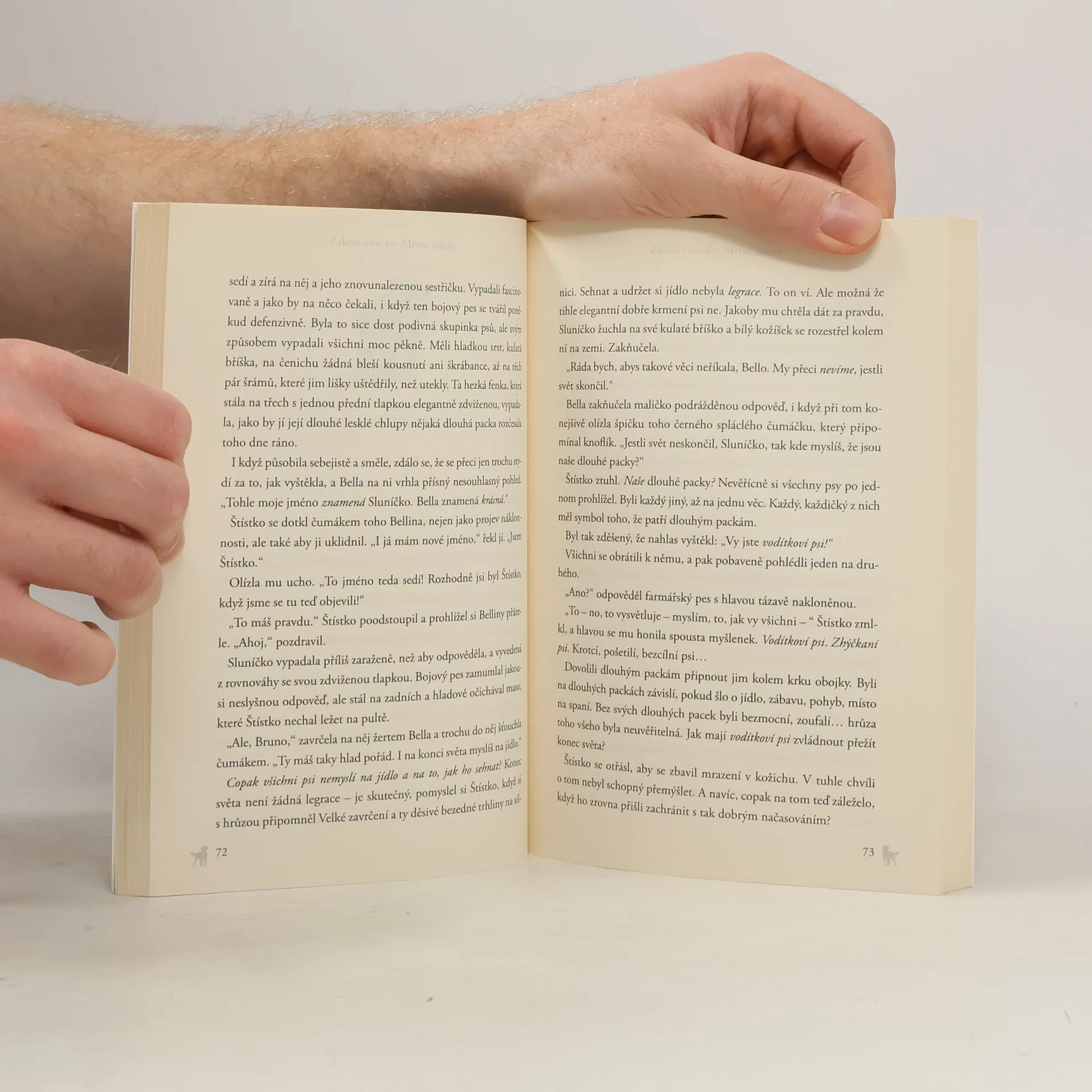 Zvířecí sága o statečné a nezdolné smečce psů, z nichž každý pes je jiné rasy, jiné povahy, přesto jsou svázáni společným poutem přátelství. Všechno, co znali, se ocitlo v troskách po zemětřesení – Velkém Zavrčení. Ujme se jich retrívr Štístko, tulák a samotář, který utekl z rozvalin psího útulku – z Domu pasti. I když nerad, stane se jejich vůdcem. Jak však naučí domácí mazlíčky a vodítkové psy lovit a přežít v divočině? První vydání. -- zdroj: www.legie.info --