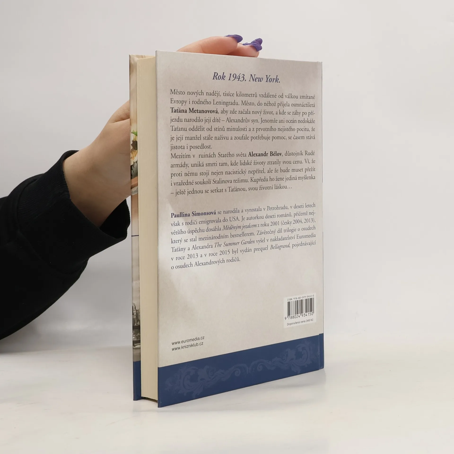 Rok 1943. New York. Město nových nadějí, tisíce kilometrů vzdálené od válkou zmítané Evropy i rodného Leningradu. Město, do něhož Taťána přijela začít nový život a kde se narodilo její dítě – Alexandrův syn. Jenomže ani oceán nedokáže Taťanu oddělit od stínů minulosti a z nejistého pocitu, že je její manžel stále naživu, se stává jistota i posedlost. Mezitím se v ruinách Starého světa Alexandr ze všech sil snaží uniknout všudypřítomné smrti. Ví, že proti němu stojí nejen nacistický nepřítel, ale i vražedné soukolí Stalinova režimu. Kupředu ho žene jediná myšlenka – ještě jednou se setkat s Taťánou… Druhý díl legendární romantické ságy Paulliny Simonsové. 2. vyd.