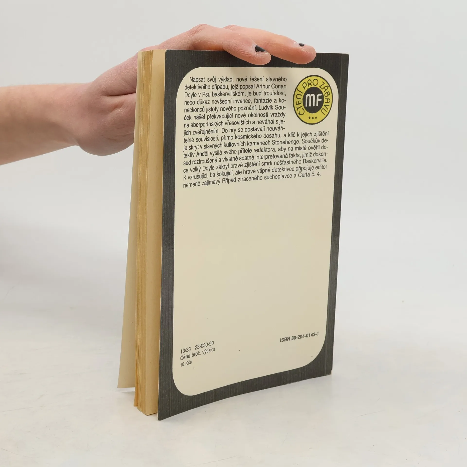 Napsat svůj výklad, nové řešení slavného detektivního případu, jejž popsal Arthur Conan Doyle v Psu baskervillském, je buď troufalost, nebo důkaz nevšední invence, fantazie a koneckonců jistoty nového poznání. Ludvík Souček našel překvapující nové okolnosti vraždy na aberporthských vřesovištích a neváhal s jejich zveřejněním. Do hry se dostávají neuvěřitelné souvislosti, přímo kosmického dosahu a klíč v jejich zjištění je skryt v slavných kultovních kamenech Stonehenge. Součkův detektiv Anděl vysílá svého přítele redaktora, aby na místě ověřil dosud roztroušená a vlastně špatně interpretovaná fakta, jimiž dokonce velký Doyle zakryl pravé zjištění smrti nešťastného Baskervilla. K vzrušující, ba šokující, ale hravě vtipné detektivce připojuje editor neméně zajímavý Případ ztraceného suchoplavce a Čerta č.4.