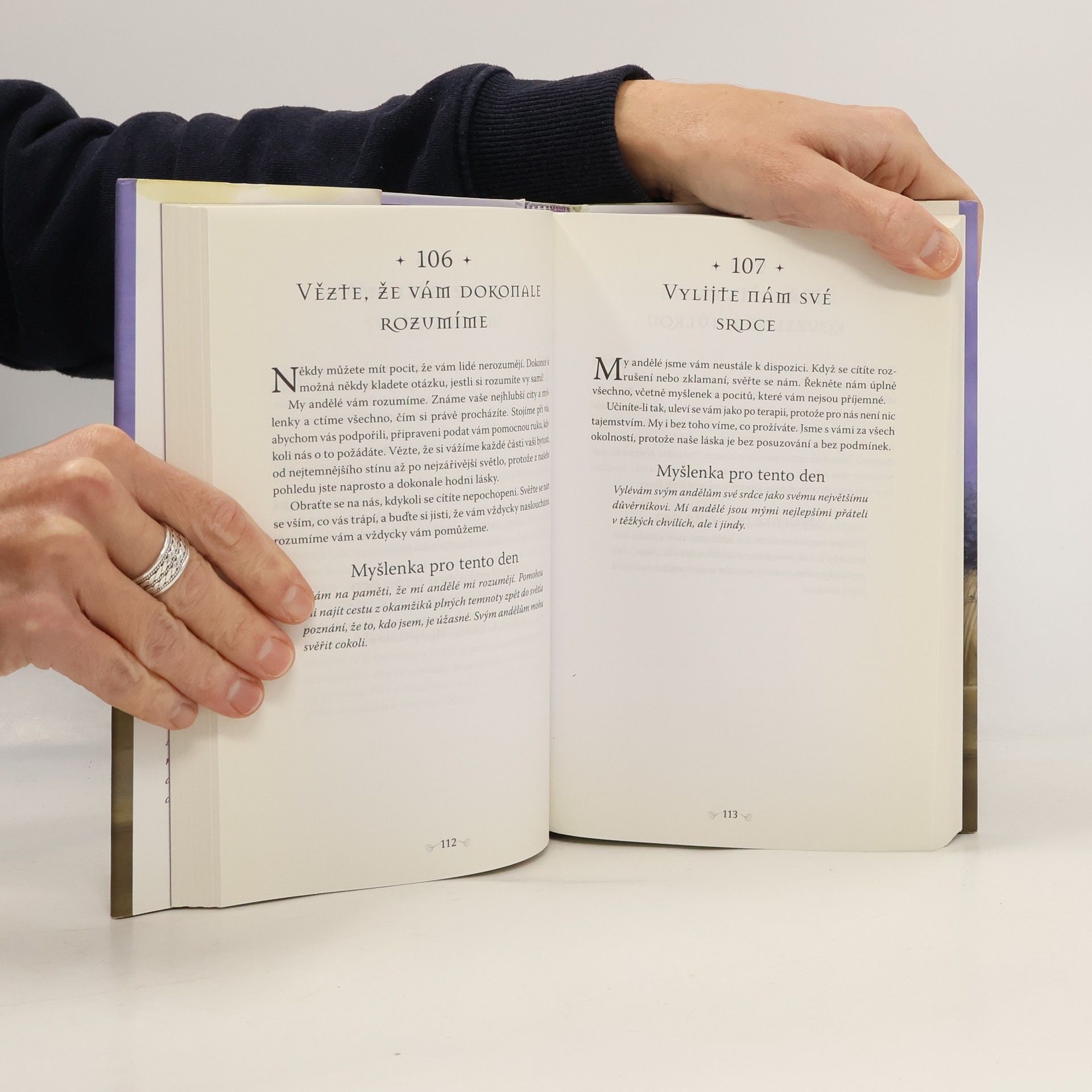 S podtitulem: 365 Andělských poselství, která uklidní, uzdraví a otevřou vaše srdce. Tato kniha vznikla proto, aby vám pomohla zůstat během dne ve stavu vnitřního míru a klidu. A také proto, abyste nezapomínali, že vaši andělé jsou vám neustále po boku, kdykoli ochotni vám pomoci, s čímkoli bude třeba. Začněte každé své ráno tím, že se spojíte s láskyplnou energií vašich andělů strážných pomocí jedné z meditací, které mi pro tuto knihu nadiktovali. Každá stránka této knihy vám přináší vzkaz, který vám bude útěchou i povzbuzením, a pomůže vám den začít s pozitivní energií. Tuto jedinečnou knihu můžete také používat jako věštecký nástroj. Položte jednoduše svou otázku a knihu namátkou otevřete. Strana, na které jste knihu otevřeli, vám přinese odpověď.